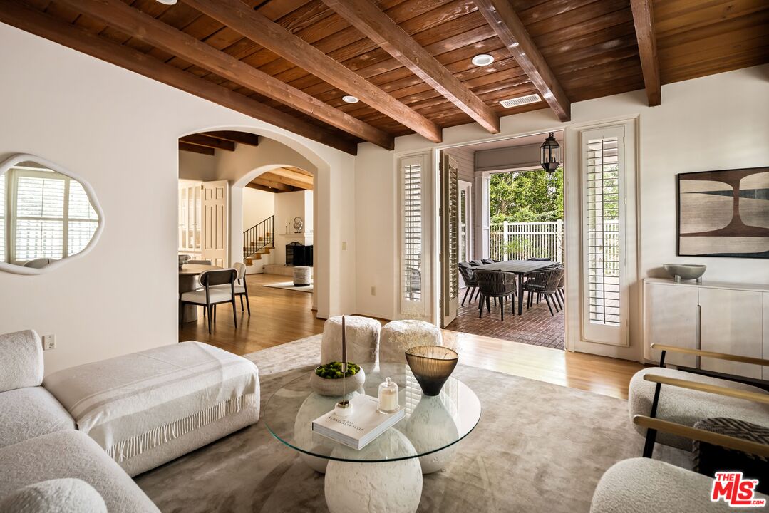 EXCEPTIONAL VALUE IN PRIME CHEVIOT HILLS. This spacious traditional home is filled with natural light and set on a large lot with mature landscaping, offering privacy, great scale, and flexible living spaces. The home features 7 bedrooms and 7 bathrooms with an excellent layout, including three bedrooms on the main level and four bedrooms upstairs. A welcoming entry showcases a beautiful custom mosaic detail in the flooring. The well-appointed kitchen includes granite countertops, double ovens, ample cabinetry, a large center island with seating, a breakfast nook, and a high ceiling with a skylight that fills the space with natural light. The living, family, and dining rooms all feature beamed ceilings, with a fireplace in the living room, creating warm and inviting spaces ideal for both everyday living and entertaining. Upstairs, the primary suite offers dual walk-in closets and a spa-like bathroom with double vanities, abundant natural light, a soaking tub, and a steam shower. Three additional ensuite bedrooms and a large bonus area complete the second level. The private backyard features a covered patio ideal for outdoor dining and entertaining, along with generous yard space. Additional highlights include a 2-car garage and abundant storage throughout. A well-scaled home with excellent natural light, privacy, and versatility, offering one of the best values in Cheviot Hills.