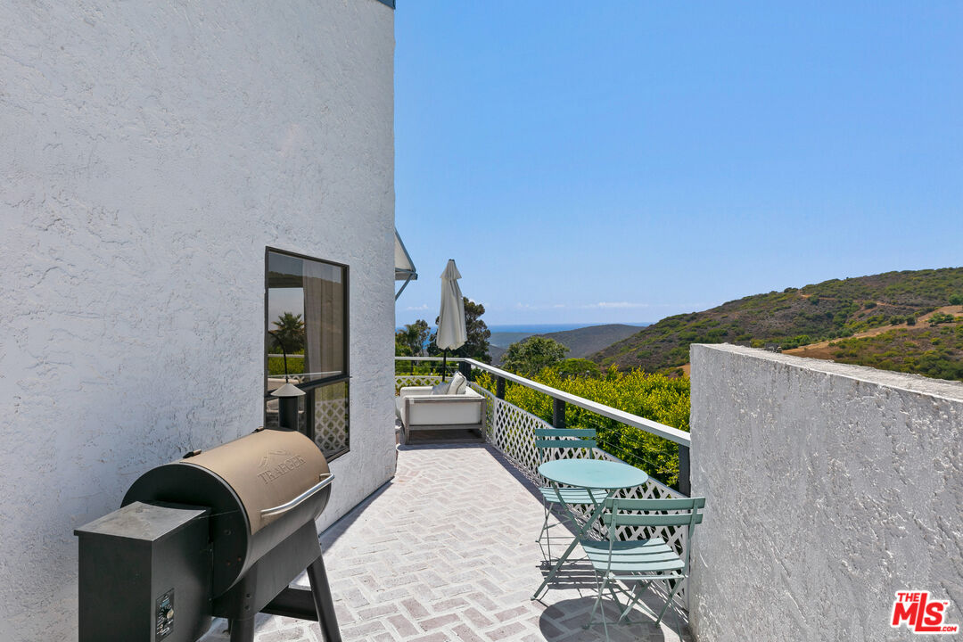 Incredible private Malibu retreat nestled in the hills of El Nido, just minutes from the beach.. This stylish home blends modern architecture with warmth and natural light. Vaulted ceilings, exposed beams, and expansive windows frame breathtaking ocean and mountain views throughout. The open living area flows effortlessly from the cozy fireplace to a sunlit patio, ideal for everyday living and entertaining. The chef's kitchen features new appliances, a center island, and skylights that flood the space with natural light, bringing the outdoors in. The serene primary suite offers dual closets and a beautifully renovated en-suite bath. Two additional bedrooms provide flexibility for guests, a home office, or a nursery. A separate bonus room creates the perfect private office or creative space, and a detached studio serves as an ideal guest suite, gym, or income-producing opportunity. Outside, enjoy peaceful garden spaces, a hammock strung between palms, and a private spa with hillside views. Located just minutes to Malibu's best beaches, hiking and dining. Offered for purchase or lease.