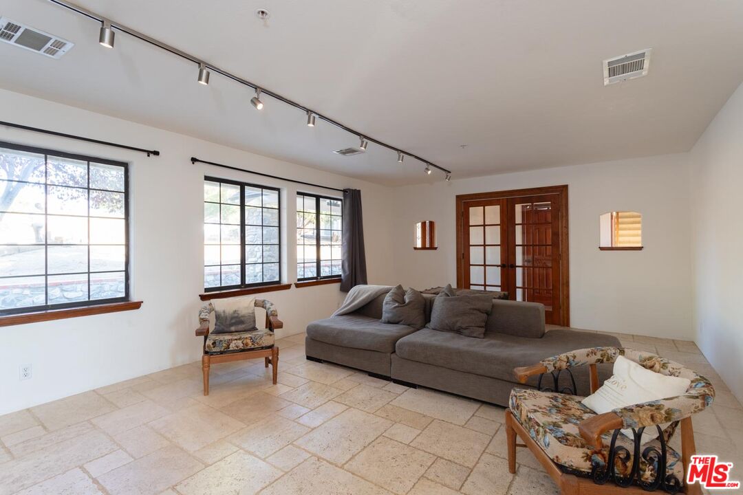 Nestled amidst the captivating High Desert Hills, just adjacent to the Angeles National Forest and a renowned national park, lies this approximately 2.5-acre equestrian property at 29243 Piani Road in Pearblossom. This modern ranch home offers over 2,000 square feet of living space, designed to capture breathtaking sunsets from the elevated position of the back of the house that faces west, showcasing a serene retreat in a stunning setting. The home encompasses three bedrooms, a versatile office/flex room, and two bathrooms, each with double sinks and bathtubs. Designed for comfort and practicality, it features vaulted ceilings and an array of custom finishes, including brick and wood floors in the kitchen and dining room, complemented by Turkish Travertine in the Venetian Pattern in other living areas. Large windows fill the space with natural light and showcase the picturesque views. A separate outside entrance to the primary bedroom and the dining room, as well as a utility room entrance, underscores the thoughtful design of this home. The 2-car attached garage provides ample storage space, with additional storage available in the attic and a large utility room pantry. Say goodbye to high electricity and water bills, as this home is powered by a high-quality paid-off solar system with 26 panels installed by Solar Optimum in 2022, and water sourced from its own well and propane for gas. In addition to central heating, this home is equipped with a whole-house evaporative cooler, a highly energy-efficient alternative to traditional air conditioning. The dining room also features a wood-burning stove for cozy winter evenings. The private, fully fenced lot, with its 330-foot frontage on Piani Road, is complemented by a wooden ranch gate, creating an impressive entrance to this serene retreat. With RV hookups and ample outdoor storage, this property accommodates a variety of needs, whether for ranch living or leisure. Equestrian facilities abound, with a 120' x 96' arena, a 50' round-pen, and a spacious hay barn capable of accommodating a full semi-truck load. The property supports multiple horse stalls with water and electricity, ensuring your equine companions enjoy optimal care. There is also a Nelson Automatic waterer in the pasture area. Beyond its equestrian amenities, the property is steeped in nature, providing direct access to miles of trails and seasonal creeks. It is conveniently located approximately five miles from local amenities, including the USPS, LA County Fire Department, and Pearblossom Park. Embrace the opportunity to own this equestrian property, where natural beauty, modern comforts, and horse-friendly facilities converge. Whether you are an avid equestrian or seeking a tranquil retreat, this home offers a unique chance to live in a truly stunning setting.