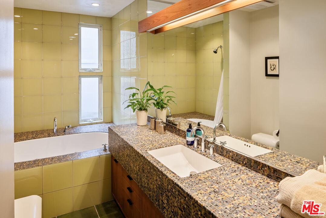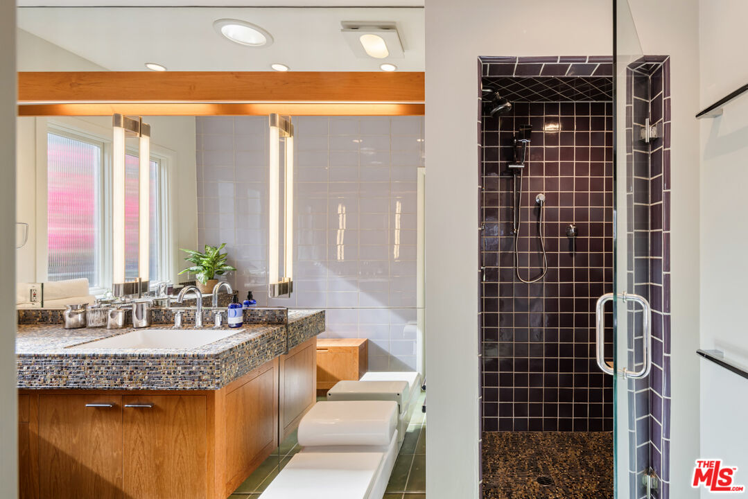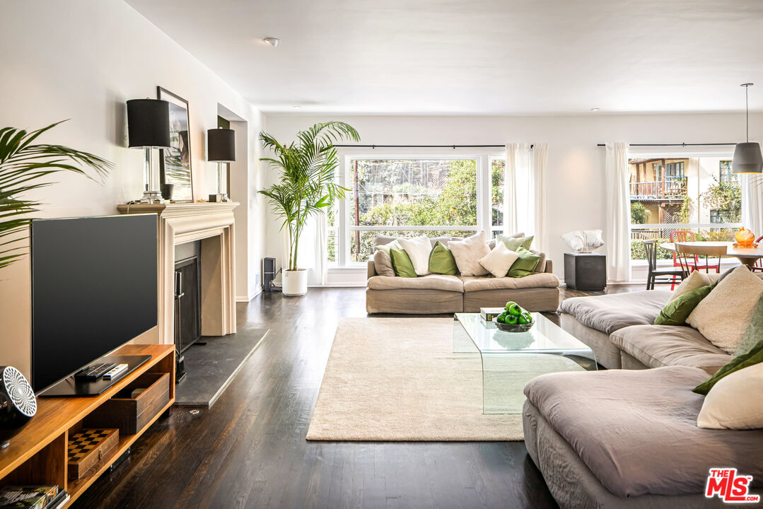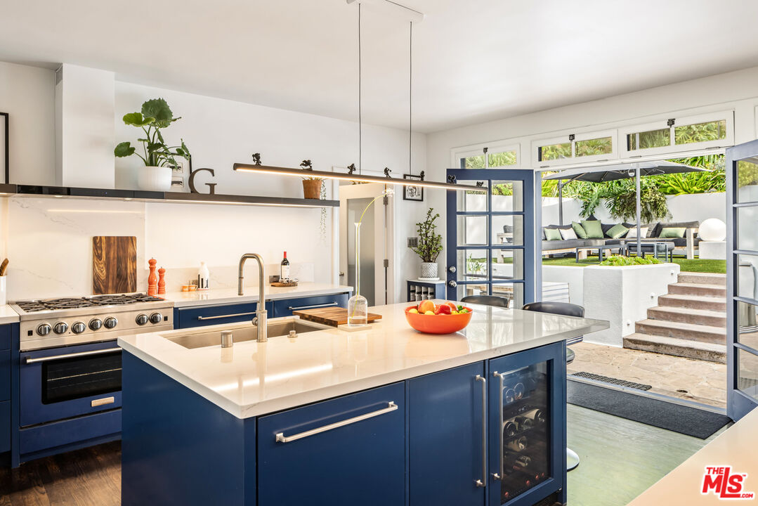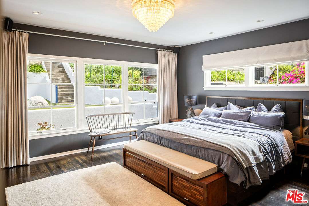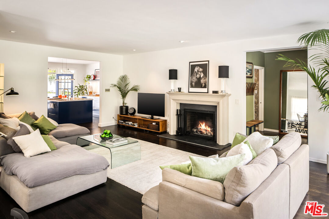 This gated Traditional home and PRIVATE GUEST SUITE have mid-century modern influences and sits on a large, wooded lot in upper Beachwood Canyon. Formerly celebrity-owned and tucked back from the street, this home's expansive rear yard is an outdoor sanctuary bringing the tranquility of nature to everyday living. Green canyon views can be seen from the oversized windows creating an airiness throughout the living space, anchored by a renovated kitchen which seamlessly joins both interior living and the outdoors. The kitchen is outfitted with built-in, luxury appliances, a large island, and plentiful countertop prep space. Whether you prefer entertaining or quiet fireside moments, this home offers the space for your household to sprawl on the 4 bedroom, 3 bath main level inclusive of an oversized, primary suite with custom Walnut built-in's and dedicated laundry/utility room. Rear French doors open to your own secluded park-like garden designed for entertaining. Winding paths of the curated grounds showcase its succulent gardens, professionally landscaped terraces, several lounging areas, banana and Meyer lemon trees, and private hilltop pergola illuminated by a masterfully designed light installation. Out of town guests can enjoy the privacy of a PRIVATE GUEST SUITE on the lower level with its own kitchenette, bathroom, bedroom/office and private garden. The two-car garage features built-in cabinets & utility sink. Close to hiking trails, Beachwood market, city night life, and major studios. Experience the magic of this private sanctuary in iconic Beachwood Canyon.