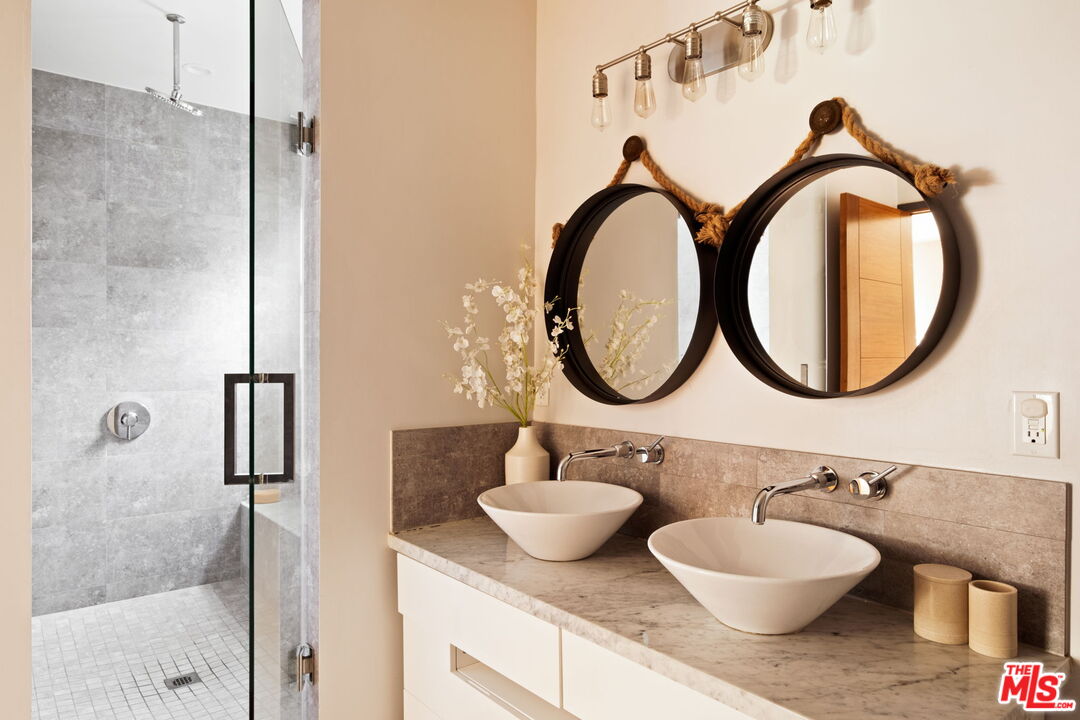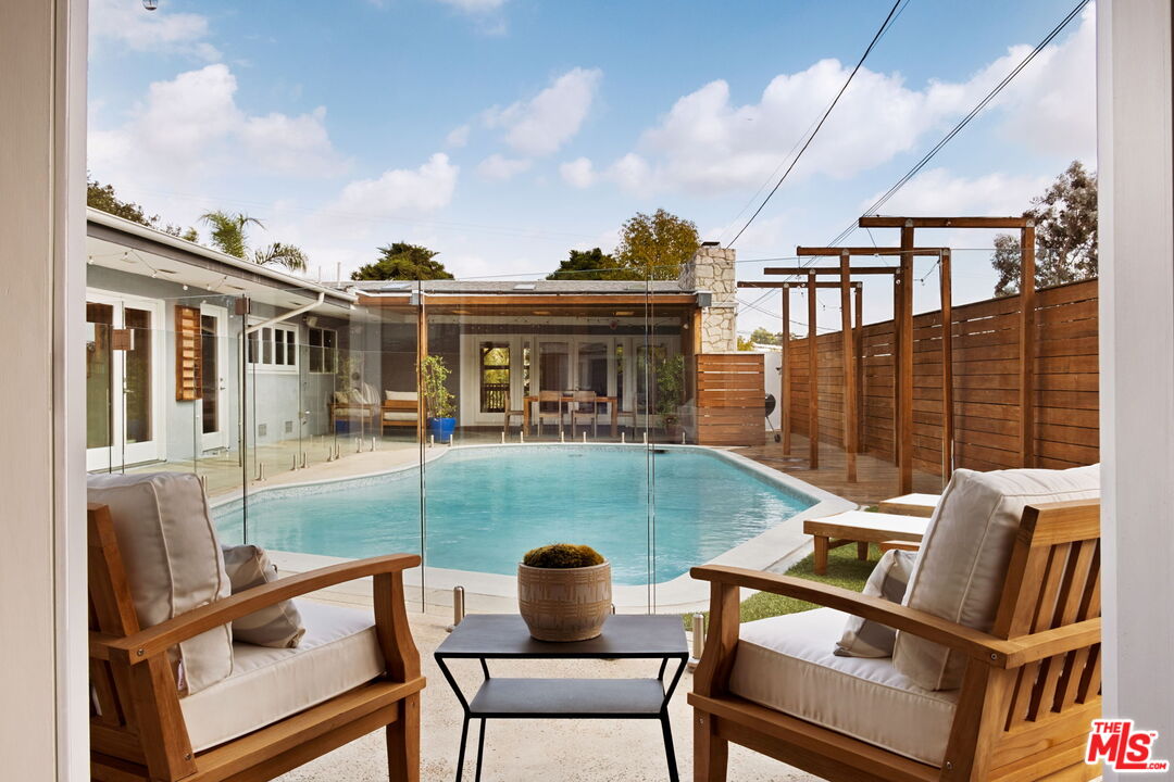 3019 Surry Street is a true contemporary charmer located in the coveted Ivanhoe School District. Set behind soaring trees that offer both beauty and privacy, this expansive 4-bedroom, 5.5-bath home boasts 3,457 square feet of thoughtfully designed living space. An inviting front porch leads into sunlit interiors, where dramatic skylights and warm wood floors define the open-concept layout. The spacious living room with a fireplace flows effortlessly into the formal dining area. At the heart of the home lies a chef's dream kitchen, featuring sleek modern cabinetry, high-end appliances, a wine cooler, a bread warmer, and an oversized eat-in island that comfortably seats five or more. A private, luxurious primary suite with direct access to the pool occupies one wing of the home and is situated near other well-appointed guest rooms, along with an additional primary suite option that also offers a spa-inspired designer bathroom. Additional highlights include a bonus den with casual dining space ideal for both entertaining and everyday living, a dedicated office, and a three-car garage. Indoor living transitions seamlessly to the outdoors through large glass doors, opening to a resort-like backyard with a covered patio, sparkling pool, open-air dining area, and lush lawn. Ideally located in the heart of Los Feliz - close to top restaurants, entertainment, and parks - 3019 Surry Street embodies the best of California living.