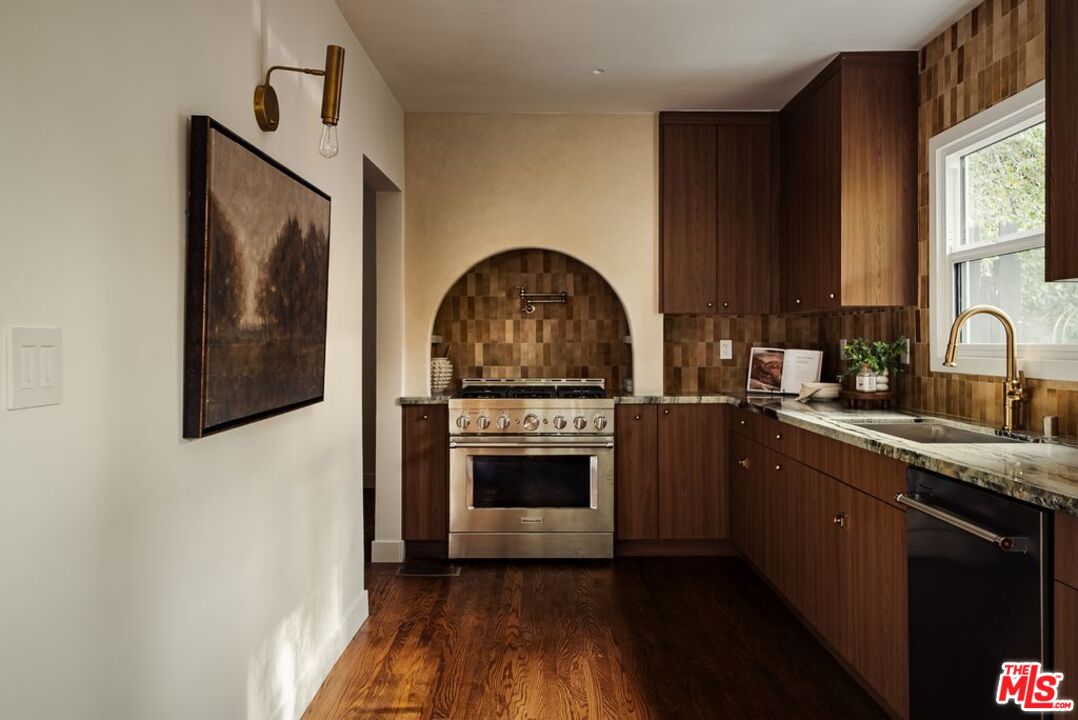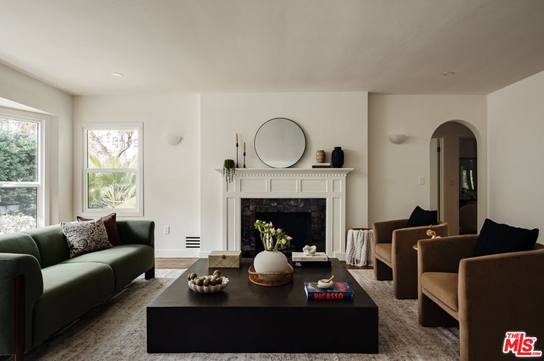 Nestled above a tree lined street in the heart of Beachwood Canyon, this reimagined retreat is a masterclass in "curated yet effortless" living, where historic soul meets bold, modern drama. The residence welcomes you through a vintage original door into a charming foyer grounded by rich, reclaimed hardwood flooring throughout. The heart of the home is a luminous chef's kitchen; a design centerpiece featuring striking marble slabs, bespoke cabinetry, and top-of-the-line appliances seamlessly integrated for a sleek aesthetic. A walk-in pantry and a stylish breakfast banquette add a layer of everyday convenience to this high-design space. The living areas offer a sophisticated rhythm, shifting from sun-drenched to intimate and moody, where a formal dining area flows into the living room anchored by a statement fireplace framed in hand-crafted Zellige tile. Adding to the home's versatility is a stunning covered sunroom an inspiring "flex" space flooded with natural light, perfect for a creative art studio, a quiet home office, or a vibrant playroom. The secluded primary suite serves as a personal sanctuary above the city, featuring a romantic fireplace, tailored custom closets, and a spa-inspired bathroom. Two additional generously sized bedrooms provide comfort and privacy with large custom closets, complemented by a full guest bath with separate shower, double vanity finished with designer tile and an elegant powder room, each with premium fixtures. Beyond the visible artistry, this turnkey masterpiece is meticulously future-proofed with high-end infrastructure, including a new 200-amp electrical panel, updated plumbing, a newer roof, and a comprehensive new HVAC system with an Ecobee smart thermostat. Modern intelligence is woven into the home's DNA via Wi-Fi-controlled recessed lighting on dimmers, integrated USB-C charging outlets, and new black-framed windows that frame the canyon views. The lifestyle extends outdoors to a tiered, private backyard designed for the quintessential California dream, featuring a wood-burning fire pit and an elevated yard with lush, mature landscaping and wise beautiful trees. Offering the rare canyon luxury of ample parking and a finished two-car garage complete with a 50-amp EV outlet. Located just blocks from the iconic Beachwood Cafe and Market, this home represents a rare opportunity to own a piece of Hollywood history reimagined with every conceivable modern luxury.