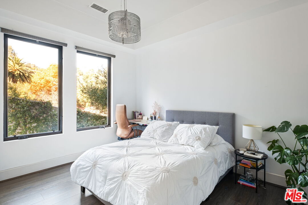 Step inside this stunning residence offering the ultimate in luxury living set amongst one of LA's most coveted neighborhoods. With 4 bedrooms and 3.5 baths, the home boasts an open-concept design accentuated by soaring 14-foot ceilings and wide-plank flooring. Sunlight streams through large windows, highlighting the sleek, contemporary style of the interiors. Perfect for entertaining, the living room features a cozy gas fireplace, while the family room includes a wet bar for crafting cocktails. The gourmet kitchen impresses with high-end appliances, sleek cabinetry, and a bright breakfast nook. Upstairs, the elegant bedrooms include spa-like bathrooms, walk in closet and private balconies showcasing breathtaking views of the Hollywood sign. Step outside to your private oasis, complete with a custom-built pool, spa, and a covered patio ideal for alfresco dining. Practicality meets luxury with an attached 3-car garage featuring an EV charging station, plus dual 5-ton AC units for year-round comfort. Located near Universal Studios, Runyon Canyon, and the Hollywood Bowl.