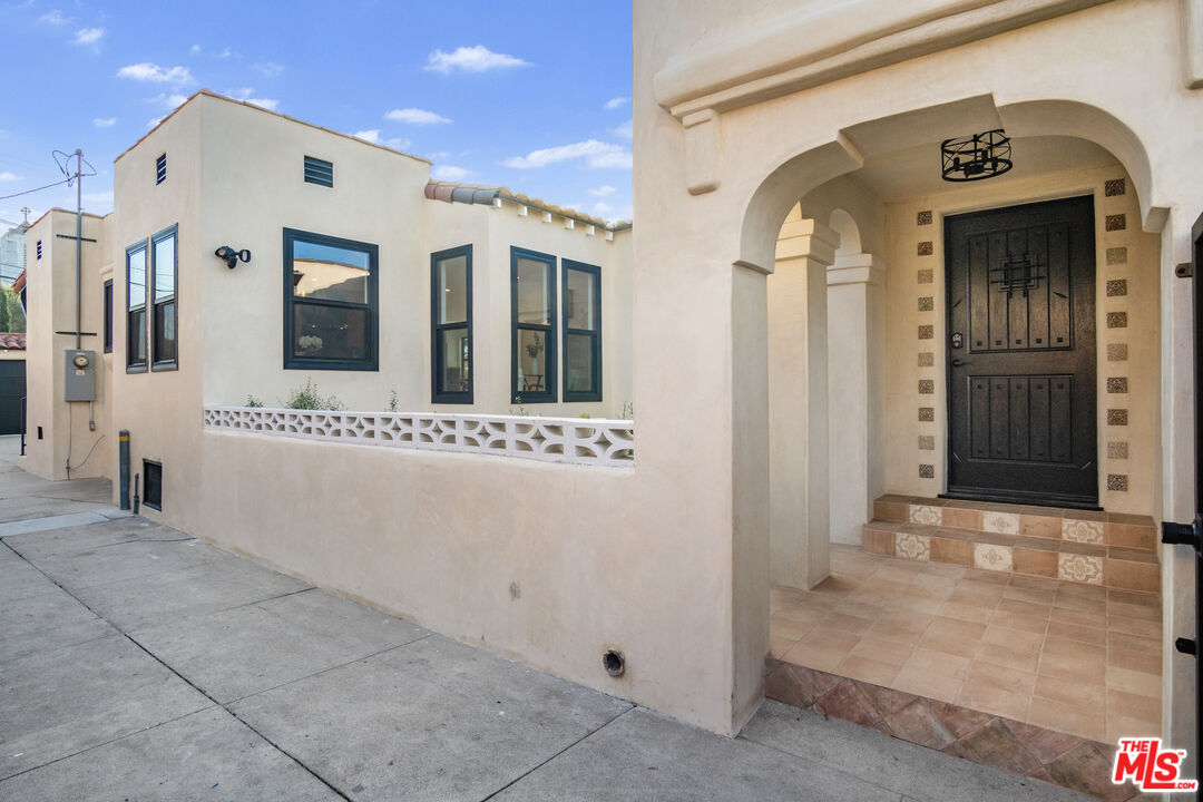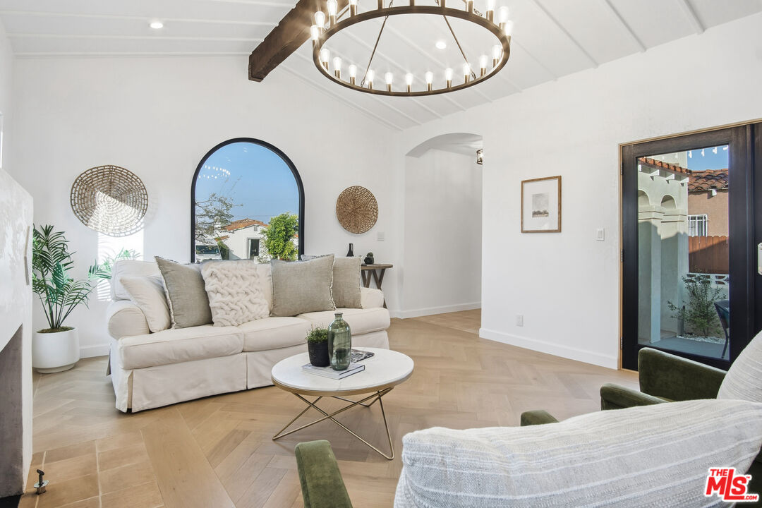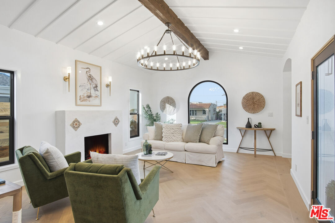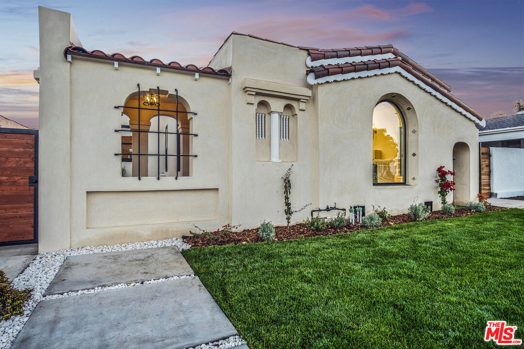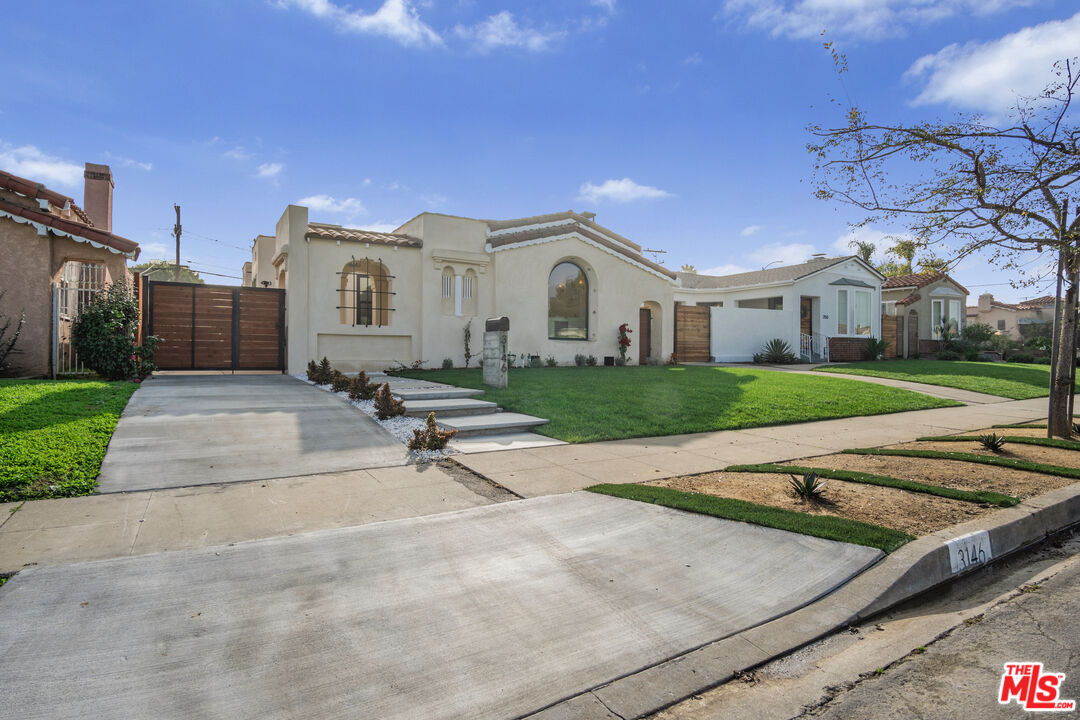 Spanish-Mediterranean Gem in Hyde Park with Designer Interiors and Lush Outdoor Living. Welcome to 3146 W. 78th Street, a newly reimagined single-story residence blending timeless Spanish-Mediterranean architecture with modern upgrades. From the moment you arrive, you're greeted by a striking arched entryway framed in hand-laid Spanish tiles, stucco walls, and a red tile roof that exudes curb appeal. A custom-designed chimney cap adds architectural distinction, while the manicured front lawn, gated side access, and blooming bougainvillea set the tone for refined California living. Inside, the home features a light-filled open floor plan with exposed wood beams, herringbone flooring, and designer lighting throughout. The living room showcases a cozy fireplace, elegant sconces, and a circular chandelier, while the adjacent dining area and kitchen offer seamless flow for entertaining. The chef's kitchen features a showstopping waterfall-edge island wrapped in quartz, creating a sleek, modern centerpiece that anchors the space. The island includes a farmhouse sink, brass fixtures, custom cabinetry, and generous seating, all complemented by a dramatic herringbone tile backsplash and built-in appliances. Bathrooms are thoughtfully designed with patterned tile floors, glass-enclosed showers, black fixtures, and coastal-inspired vanities. The shower niches and floors feature vibrant Spanish ceramic tiles, adding warmth and character to the clean white subway tile. A clawfoot tub with vintage hardware adds charm and luxury. Bedrooms are spacious and serene, with natural light pouring through windows and black-framed glass doors. Step outside to a private backyard oasis featuring a mix of natural grass and turf, decorative stone borders, flowering plants, and a shaded patio with seating. Whether hosting guests or enjoying quiet evenings, this outdoor space is perfect for relaxation and recreation. The pergola-covered patio is strung with lights and overlooks a lush lawn ideal for casual sunset gatherings. Additional features include dual-sink vanities in the master bathroom and custom mirrors, a modern laundry area with ample storage, central HVAC, a gated driveway, concrete mailbox and a converted garage living space with designer tile flooring and recessed lighting. Located in a quiet, well-kept neighborhood with cohesive architectural charm, this home offers proximity to shops, dining, and local amenities, making it ideal for comfortable living. The home's close proximity to SoFi Stadium makes the neighborhood highly desirable, offering just the right distance to enjoy the energy of the area while maintaining a comfortable residential feel.