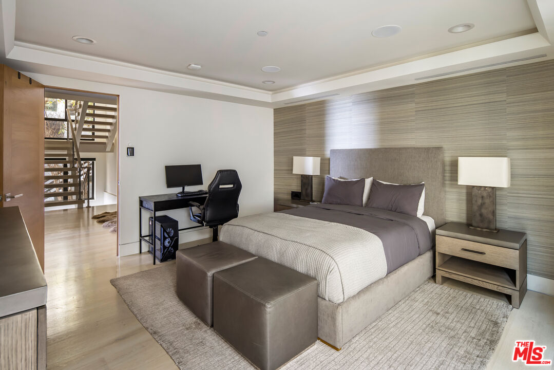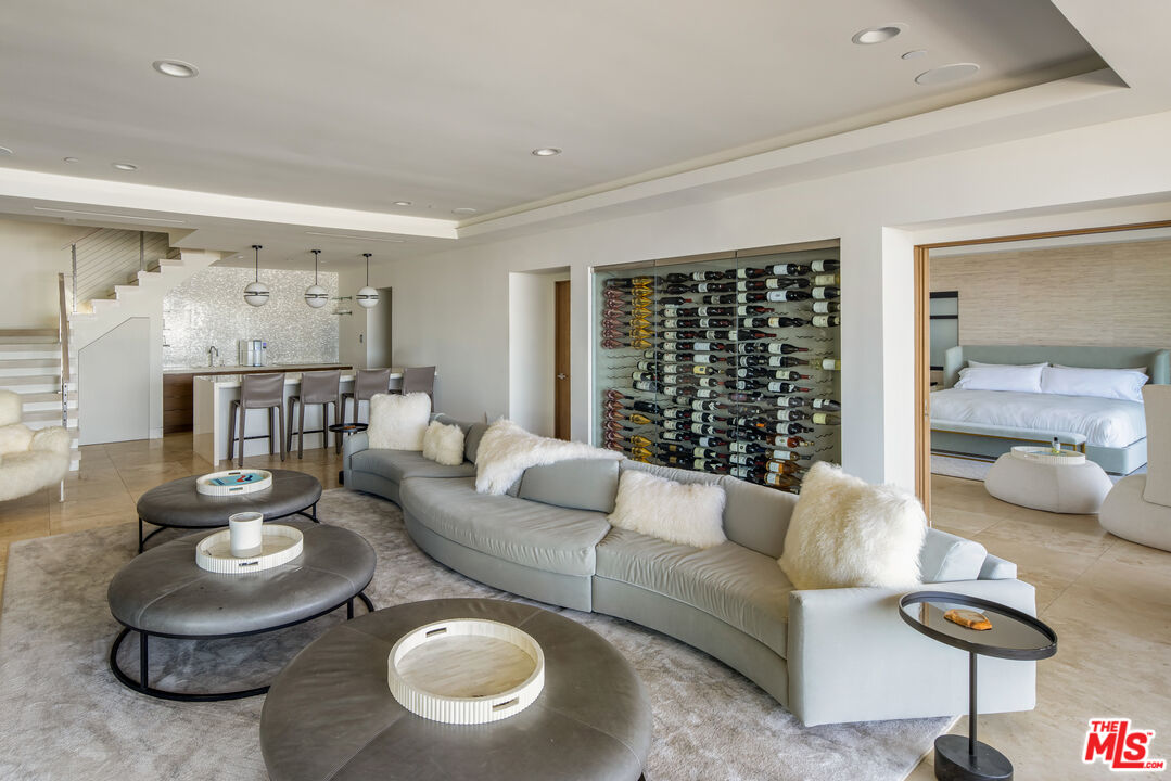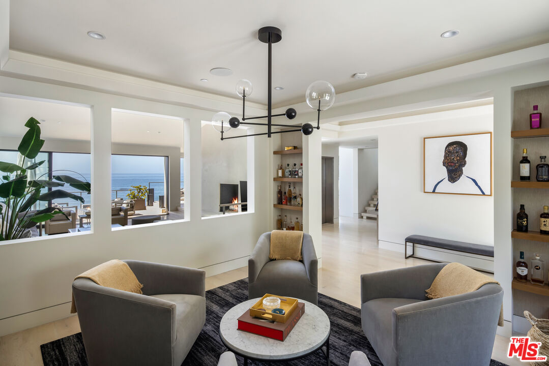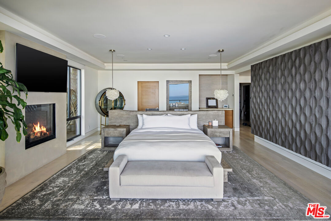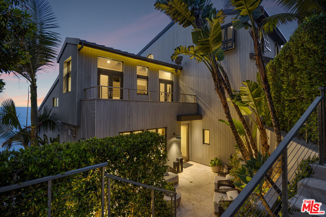 Set at the end of a private cul-de-sac on an ultra-exclusive gated street just off Broad Beach Road, this extraordinary Malibu residence offers a rare combination of seclusion, architecture, and panoramic oceanfront living. Set above the sand in one of Malibu's most coveted coves, the property unfolds in layers beginning with a tranquil entry garden and outdoor lounge that immediately sets a tone of intimacy and retreat. Behind the gate, the reimagined contemporary beach house spans four bedrooms and six thoughtfully designed bathrooms across multiple light-filled levels, all accessed by elevator and fully integrated into a state-of-the-art smart home system. From the moment of entry, the ocean view foyer hints at the scale and intention of the interiors: tray ceilings with soffit lighting, dramatic skylights, and sky-high volumes that usher in golden daylight. Expanses of French oak flooring guide the flow through a series of grand entertaining spaces including a dramatic formal living room with soaring double-height ceilings, an oceanfront dining area framed by disappearing walls of glass, and generous outdoor decks that capture unobstructed views of the coastline, Catalina, and every sunset in between. A separate ocean-facing family room doubles as a bar and lounge space, complete with fireplace, while the main living areas open to an expansive terrace equipped for full-day enjoyment a built-in outdoor kitchen, barbecue, fire pit, flatscreen television, and plenty of seating for open-air dining or movie nights by the sea. The chef's kitchen is enveloped in Calacatta marble and backdropped by endless blue sea, appointed with professional-grade stainless steel appliances. An additional entertaining level is dedicated to leisure, with a plush media room anchored by a wine showcase wall, a full bar, and lounge seating all flowing out to a lower terrace featuring a spa and sundeck. A private guest suite on this level offers a luxuriously appointed bath and sliding glass doors with direct access to the sandy beaches below. The primary suite is a study in beachfront serenity, elevated to maximize the view and designed to evoke a personal retreat. A wall of glass offers uninterrupted sight lines to the cove beyond, while the ensuite bath featuring dual vanities, walk-in closets, and a soaking tub positioned to overlook the shoreline brings spa-level luxury into everyday living. Additional amenities include a dedicated wellness loft with massage and exercise space, a library, and an upstairs office/bonus area framed by vaulted ceilings and skylights, offering an inspiring perch above the main living areas. Outdoor moments continue throughout the home, from private bedroom balconies to layered garden terraces and expansive decks that seamlessly extend each interior space into the sun and sea air. A 2-car garage with a car lift for additional vehicle storage completes this spectacular property. Meticulously reimagined and designed for both privacy and presence, this coastal sanctuary delivers the ultimate in contemporary Malibu living.
