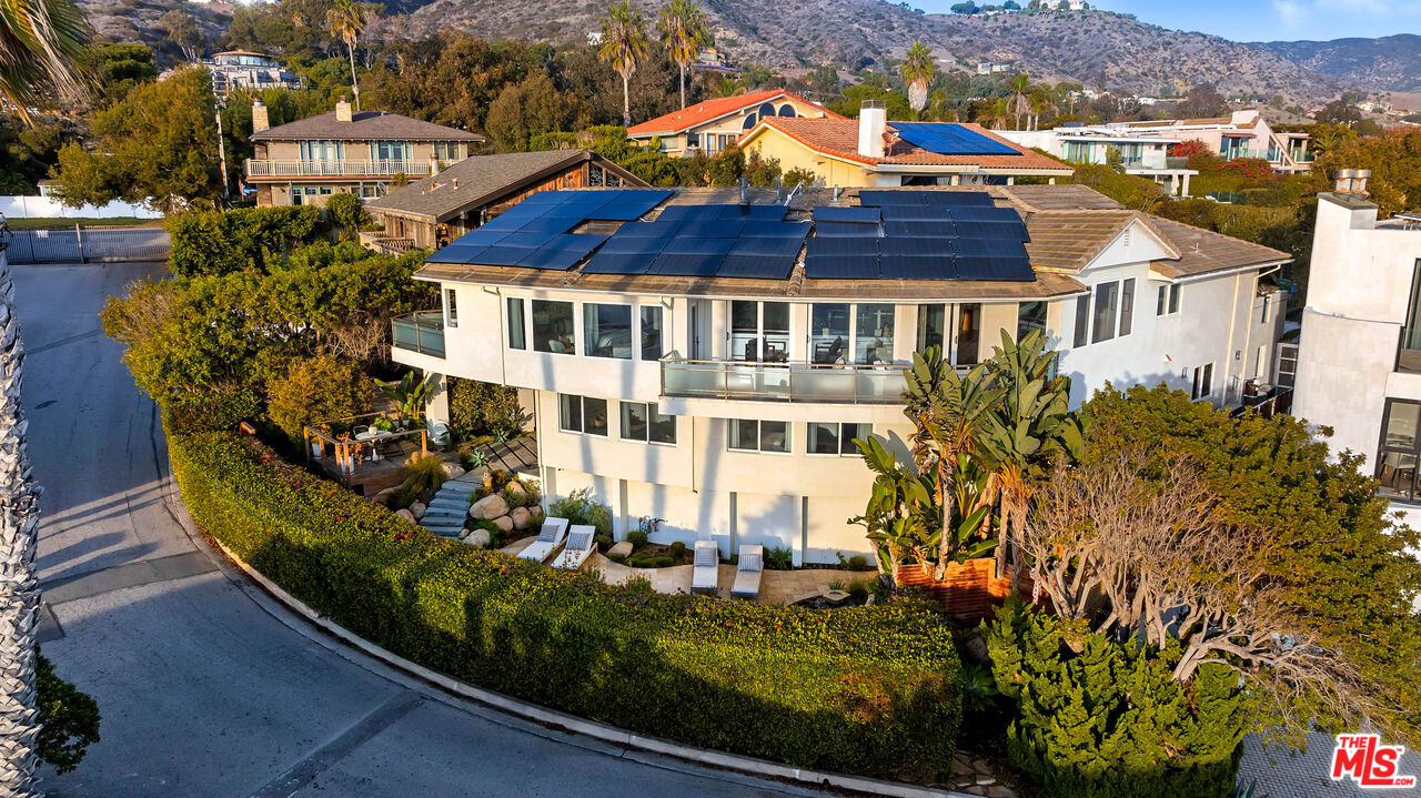 Located behind the gated entrance on Victoria Point Road in Broad Beach, Malibu, this 4-bedroom, 4.5-bath Malibu Home for Sale has been transformed by a recent $3M renovation, offering a refined coastal retreat with unobstructed ocean views throughout. The main level welcomes you with a bright, open living area featuring a custom tiled fireplace and expansive sliders that frame the Pacific. Just off the living room, a wide balcony creates a seamless indoor-outdoor flow. The redesigned kitchen is equipped with SubZero and Wolf appliances, a large walk-in pantry, and direct access to an ocean-view deck, ideal for everyday dining or entertaining. The primary suite is conveniently located on the main floor, complete with multiple private balconies and views stretching across the coastline. On the lower level, three well-sized bedrooms accompany a spacious family room and full laundry room, offering comfortable separation for guests or extended stays. Thoughtful upgrades appear throughout the home, including new bathrooms with Onyx countertops, Dornbracht fixtures, and limestone flooring. Multiple patios and balconies make it easy to enjoy the ocean air and classic Malibu beach home lifestyle. Modern systems enhance both sustainability and comfort, including solar panels, an Enphase backup battery, and a Zehnder air filtration system for consistent air quality. Seller states almost zero electricity bills due to solar and power wall. It was built to be completely eco friendly, and sustainable. All materials used were thoughtfully designed, even the tiles were made from sustainable materials. The garden is organic as well. Landscaped for privacy and set in one of the most desirable coastal enclaves in Malibu Real Estate, the home sits just minutes from local markets, dining, and live events at Trancas, with effortless access to the shoreline below. This Broad Beach Malibu residence offers a turnkey blend of quality, comfort, and coastal living.