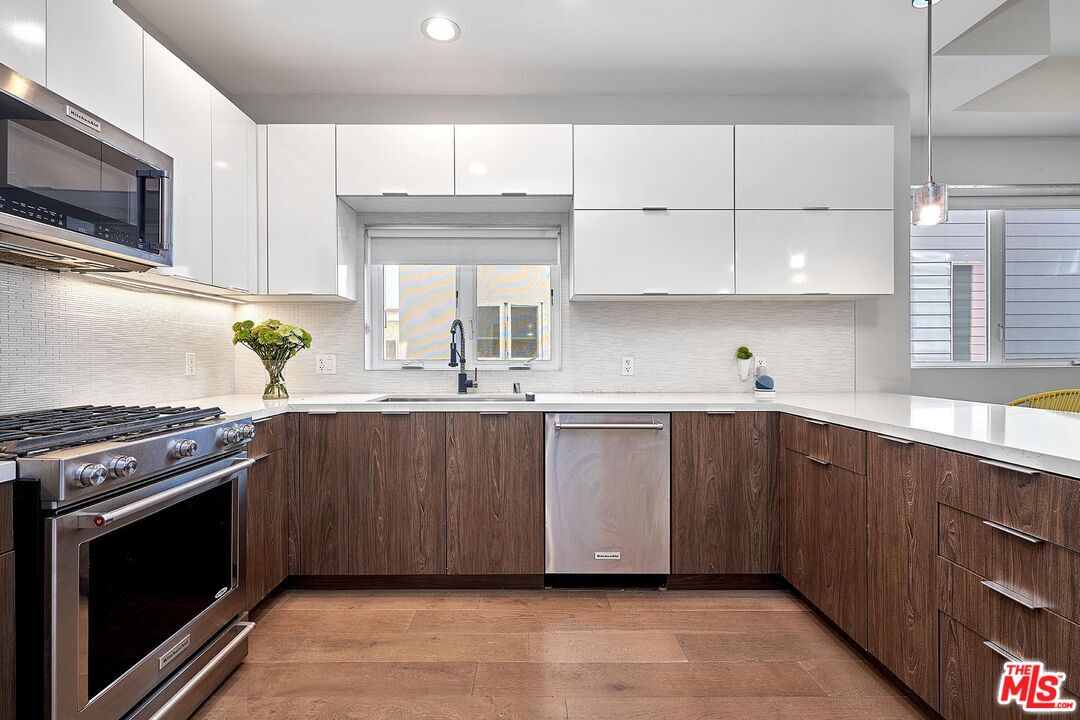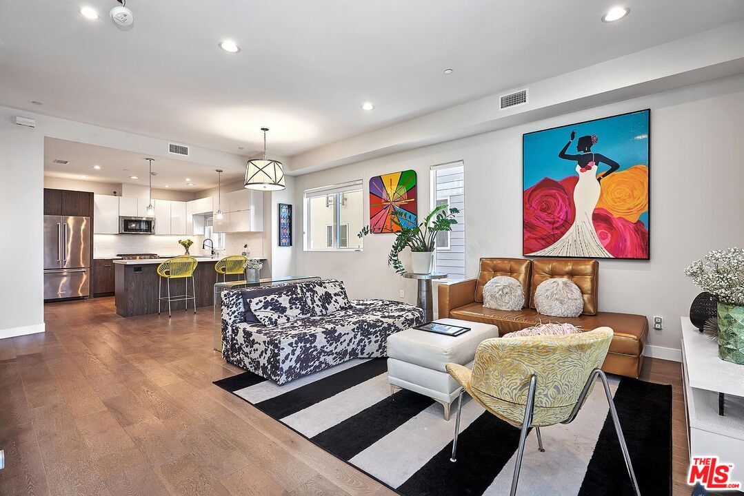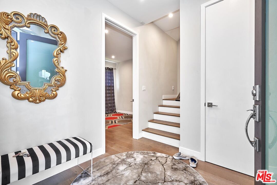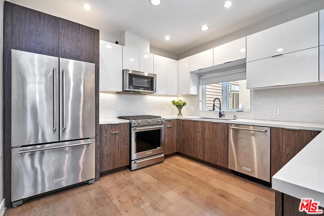 Welcome to The Serrano Six, a collection of six meticulously crafted single-family residences in a gated community, offering the perfect blend of urban living, modern design, and superior energy efficiency. This end-unit 3-bedroom home features an open floor plan with abundant natural light, European Oak hardwood floors throughout, and high-quality finishes that exude sophistication. Each bedroom is complemented by an en-suite bathroom, including a first-floor bedroom with a full bath, along with a convenient powder room. The chef-inspired kitchen showcases KitchenAid stainless steel appliances, Kohler basins with retractable faucets, a walk-in pantry, and quartz countertops, ideal for culinary creativity and entertaining. Bathrooms are elegantly finished with Kohler fixtures and floor-to-ceiling porcelain tile in showers and bathtub walls. High-end amenities include a Rinnai tankless water heater, Trane VRF air conditioning and heating system with individually zoned controls for each floor, and pre-wiring throughout the home for security, solar panels, TV, Ethernet, telephone, and Electric vehicle charging. The property includes two side-by-side covered parking spaces secured behind electronic gates. This thoughtfully designed community of six homes combines modern aesthetics with advanced technology, energy efficiency, and privacy, providing a unique urban lifestyle experience.