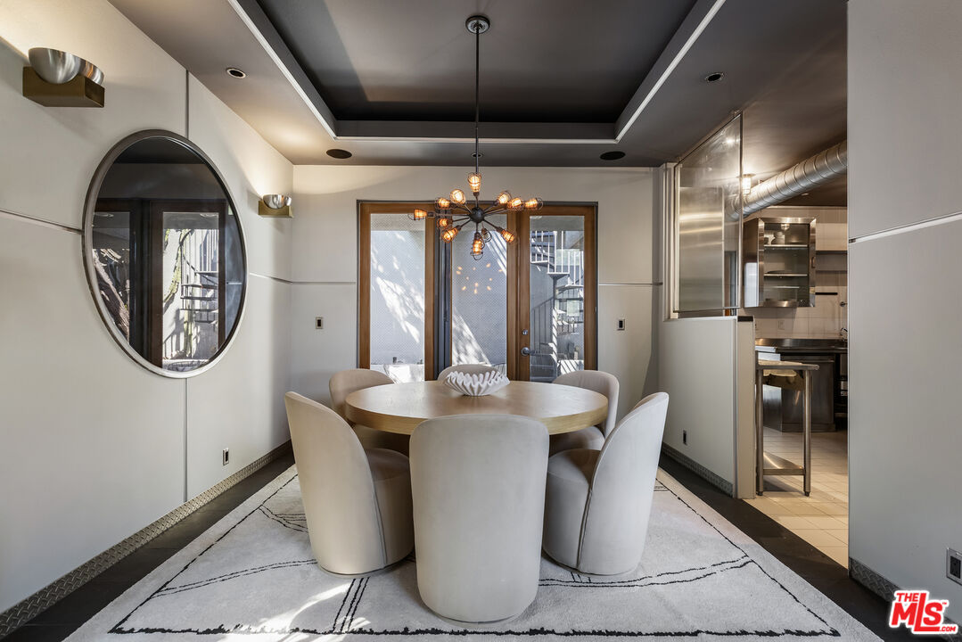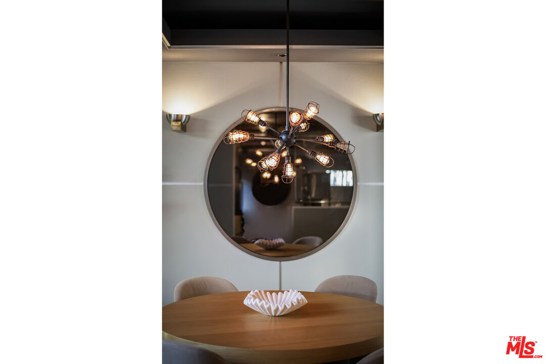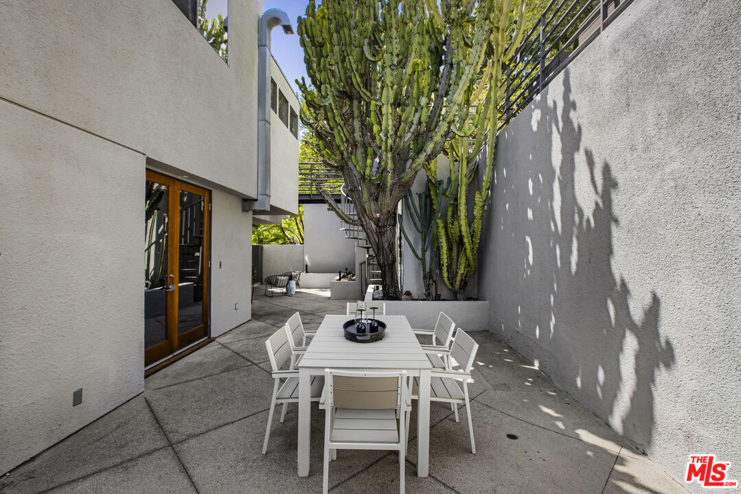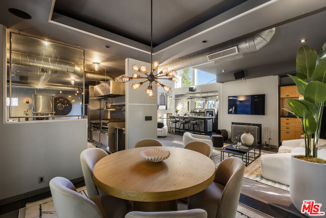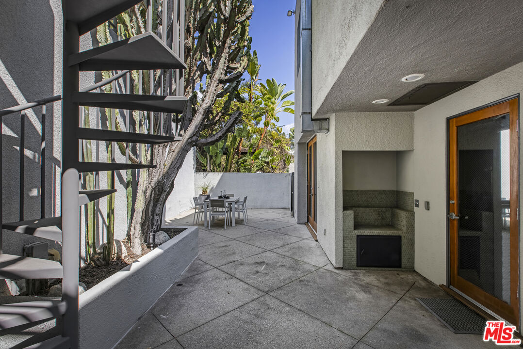 Originally designed and built in 1991 by A. Kiyohara, Moffitt & Shaver as an Architectural Showcase, this one-of-a-kind home combines striking industrial style with sustainable living. From its solid, mindful construction and low carbon footprint, to its drought-tolerant landscaping of cacti and native vegetation, the property reflects a commitment to both design and eco-consciousness. Inside, the open-concept living area features soaring ceilings, exposed ductwork, a custom fireplace, a built-in 5.1 surround sound system, and unique lighted ceiling fans. Entertain with ease thanks to GraficEye and Lutron lighting controls, a built-in bar, and a seamless flow into the dining space. The chef's kitchen is a true showpiece, boasting a Garland six-burner stove, a commercial-grade Traulsen refrigerator with a glass door, stainless steel and glass cabinetry, abundant storage, and a sleek breakfast nook. Beautiful wood-framed doors open to a large private patio, ideal for morning coffee or relaxed outdoor dining. Upstairs, the primary suite offers a spacious dressing room, a second fireplace, and a spa-like ensuite bathroom with LED lighting, a Kohler eight-jet soaking tub, a separate shower, and a double vanity. Sliding wood doors lead to an open-air bridge that connects to a private upper-level patio with sweeping views of DTLA-perfect for evening breezes and cocktails. A second bedroom with an adjacent guest bath provides comfort and flexibility. With its Murphy-style pull-down bed, it easily doubles as a home office. The home also includes a versatile flex space, ideal as an office, gym, or recording studio, along with direct access to the two-car garage, which offers additional storage and driveway parking. Located on a quiet cul-de-sac in the heart of Silver Lake, this unique industrial-inspired residence enjoys a high walk score and is just moments from scenic parks, the Silver Lake Reservoir, and an eclectic mix of local restaurants and shops.