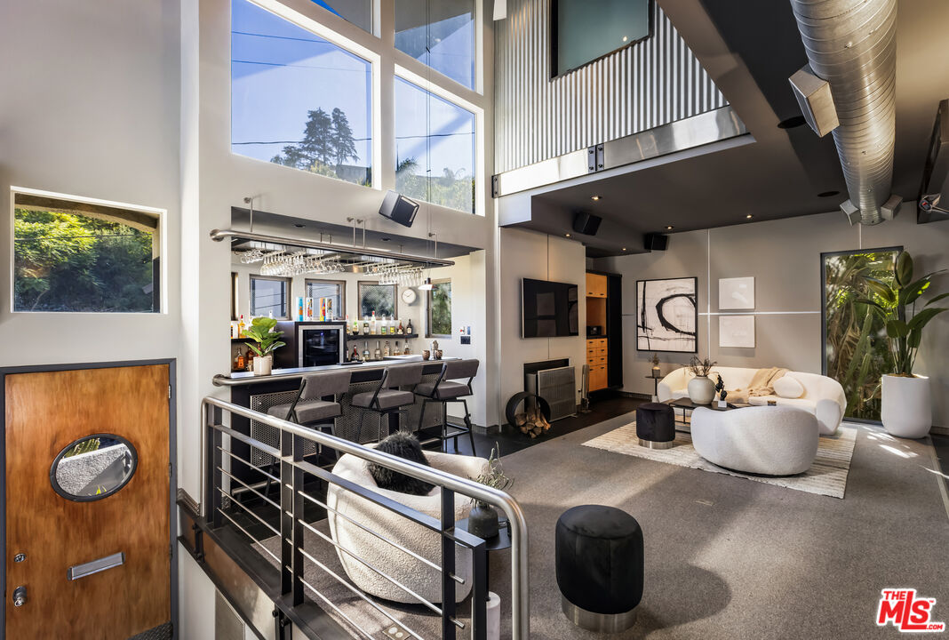 - Interior Features: Bar, High Ceilings (9 Feet+), Laundry - Closet Stacked, Living Room Balcony, Pre-wired for surround sound, Track Lighting, Wet Bar