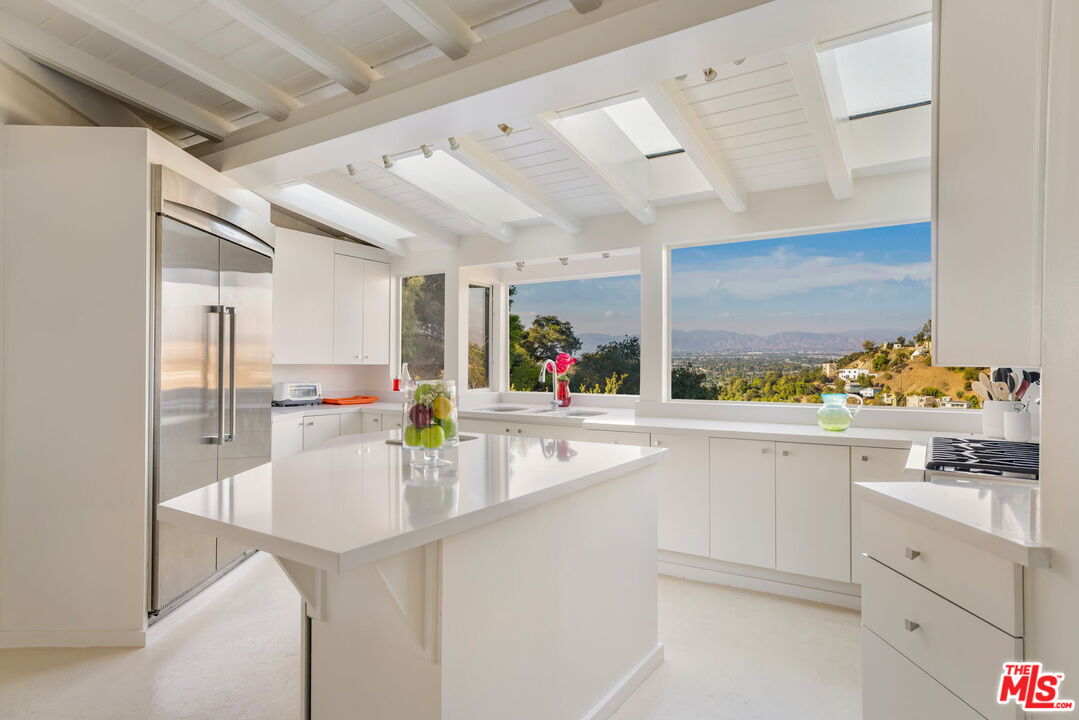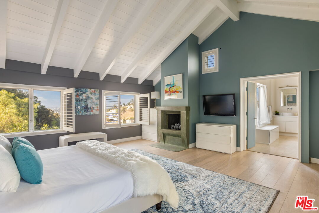 A secluded hillside compound with sweeping views, 3210 Coldwater Canyon Lane offers a rare blend of privacy and light-filled living. Spanning 27,000 square feet across two structures and three levels, the property balances airy interiors with lush outdoor spaces.The 4,400-sq-ft main residence opens to an expansive floor plan where walls of glass frame decks, gardens and a sparkling nine-foot pool with an oversized spa. Recently refreshed, the kitchen pairs new white-quartz counters and skylights with Thermador appliances, while soaring ceilings elevate the living and dining areas. Two lofted spaces invite creative use. Six ensuite bedrooms include a dramatic primary suite with fireplace, blackout shades and a spa bath featuring a sculptural round tub. Each secondary suite enjoys its own deck and captivating views.Across the pool deck, a 1,200-sq-ft guest house offers a full kitchen, living room, laundry and two additional ensuite bedrooms, ideal for visitors, work or retreat. Mature gardens wrap the pool terrace, where palms, rosemary and hundreds of exotic plantings create a private oasis.Positioned between Beverly Park and The Summit, this enclave has long attracted artists and icons seeking privacy near Beverly Hills and Studio City. With hiking trails close by and easy access to dining, shopping and studios, Coldwater Canyon Lane embodies the best of California living.