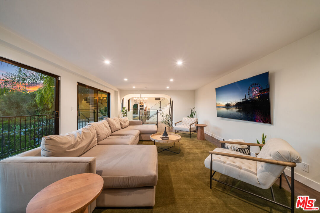 Welcome to your dream home in the prestigious Lake Hollywood Knolls. This exceptional residence has been recently renovated and offers breathtaking views from every room and an unparalleled location, just moments away from major freeways, shopping, dining, fitness centers, hiking trails, and entertainment hotspots, including Universal Studios. Step into the grand foyer and ascend to the stunning main level, where open-concept living awaits. The spacious family room, filled with natural light, flows seamlessly onto a private balcony perfect for soaking in those iconic California sunsets. Adjacent is the elegant dining area and a chef's gourmet kitchen, complete with a large island, high-end appliances, and plenty of space for entertaining. French doors open to the private backyard oasis, featuring a built-in BBQ, cozy fire pit, and lush landscaping that ensures privacy and shade. Upstairs, the expansive primary suite offers the ultimate in luxury, with its own fireplace, a secluded deck, and a spa-like ensuite with dual vanities, double closets, and a separate tub and shower. Two additional generously sized bedrooms and a guest bathroom with direct access to the backyard deck complete the upper level, ideal for hosting gatherings or simply enjoying serene outdoor living. Conveniently located near the bedrooms is a laundry area. The lower level presents a unique opportunity with a converted basement that serves as an in-law suite or potential ADU. Equipped with a private entrance, kitchenette, full bathroom, closet, and washer/dryer, it offers flexible space for guests, extended family, or income generation. With nearly 4,000 square feet of living space and a coveted location just steps from Universal Studios, this Hollywood Hills masterpiece is a rare find. Don't miss your chance to experience the perfect blend of luxury, privacy, and convenience.