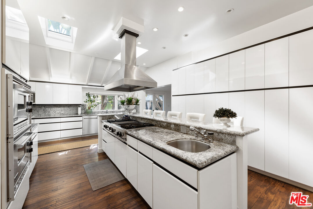 Stunning Architectural Home on a rare street-to-street double lot located on a quiet cul-de-sac in prime Cheviot Hills. This expansive gated compound sits on a huge 12,700 SF lot offering complete privacy and seclusion. Enter through a private front garden courtyard to access a beautiful home featuring 7 bedrooms, 8 baths and nearly 6,700 SF of living space. The large gourmet kitchen showcases an oversized center island with seating, stainless steel appliances, incredible amounts of storage and counter space, high ceilings and great natural light from multiple skylights. On either side of the kitchen is a separate large dining room and separate breakfast room. The living room features high vaulted ceilings, exposed wood beams, skylights, a large stone fireplace, built-in wet bar and glass sliding doors for great indoor/outdoor flow. Outdoors is an amazing private oasis with large pool, spa, BBQ and incredible room for outdoor dining and entertaining all while surrounded by tropical mature landscaping. Other features include a separate large entertainment room with movie projector, home gym with floor to ceiling mirrors and surround sound, loft space, home office, sun deck with beautiful views. A one of a kind Cheviot Hills property that feels like an estate on an oversized double lot stretching from Provon Ln to Shelby Drive.