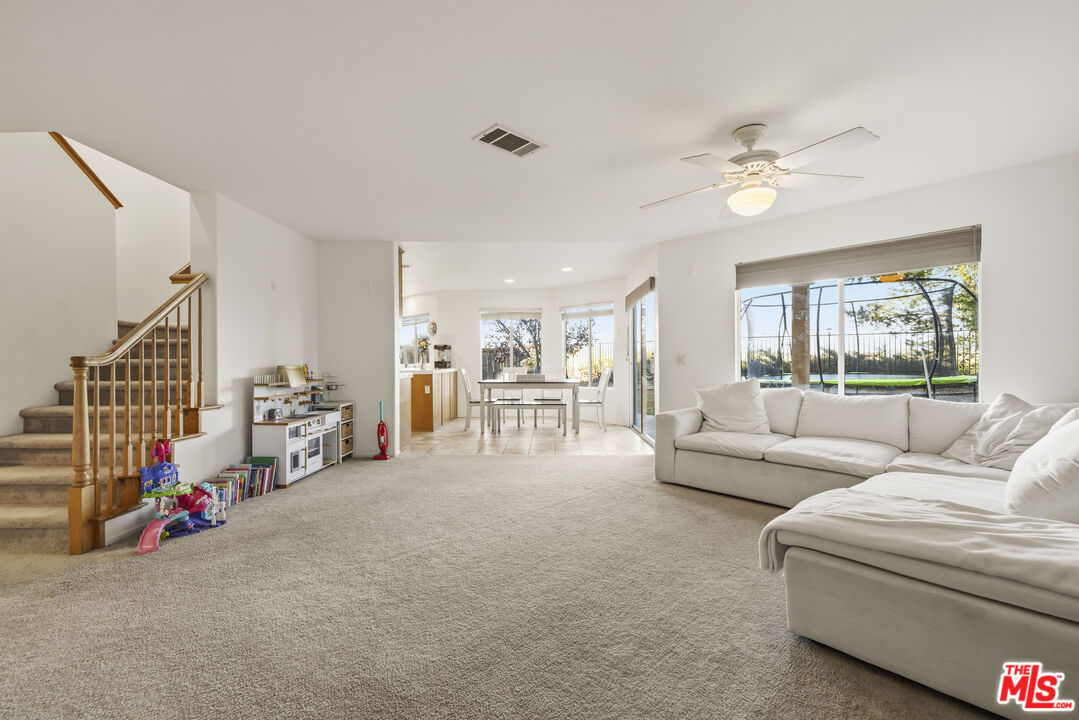 Beautiful and spacious home nestled on a quiet dead-end cul-de-sac with breathtaking views of the Santa Clarita Valley. Enjoy the added privacy and low traffic while benefiting from no HOA and no Mello-Roos. This expansive floor plan offers 5 bedrooms and 3 bathrooms, including a convenient downstairs bedroom and full bath, perfect for guests or multi-generational living. The home features a generous family room and an upstairs loft, providing flexible space that can easily serve as a media room, home office, or be converted into an additional bedroom. The large kitchen is designed for both function and gathering, featuring abundant cabinetry, a center island, and a spacious walk-in pantry, along with ample storage throughout the home. Upstairs you'll find four bedrooms with walk-in closets, giving everyone plenty of room. The primary suite is a private retreat with direct access to a balcony, allowing you to fully enjoy the magnificent city views. With no neighbors across the street, the home offers additional privacy along with extra parking availability. The spacious layout and scenic setting make this an ideal home for entertaining, relaxing, or accommodating a growing family.