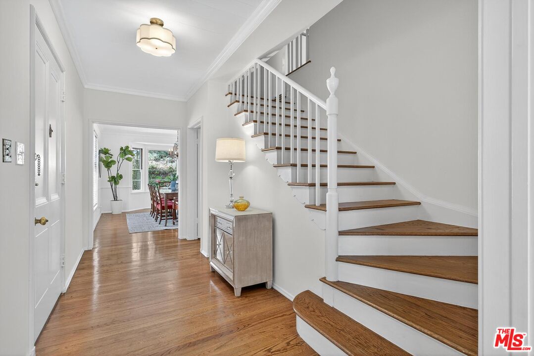 This stately 4-bedroom Colonial sits on a generous 12,208 sq ft corner lot in the highly desirable neighborhood of Lake Hollywood. Drive up Benda Street and you can't miss this beautiful home sitting at the top of the hill. Estimated 113 feet of street frontage, surrounded by lush landscaping and mature trees, the property offers lovely hillside views from its light-filled rooms. All the wires are underground in the Hollywood knolls - making the tree filled neighborhood even lovelier. The traditional layout features all four bedrooms upstairs each with its own walk-in closet. The spacious living room is anchored by a cozy fireplace, and hardwood floors run throughout the home. The inviting family room boasts a wall of windows overlooking the greenery and opens to a charming brick patio - perfect for lounging or hosting garden parties. There's also a formal dining room with a bay window and a bright, airy kitchen. A detached two-car garage includes a 125 sq ft permitted room - ideal as a home office or additional storage space. The upper portion of the large lot provides extra parking, a place to grow your own vegetables, and can also serve as a play area. Updates include a new roof in 2019, new plumbing in 2023, new furnace in 2023, painted in 2025. In 1965 the home was enlarged, with permits, to include a 4th bedroom, enlarge the den, laundry room and hall. Whether you're drawn to its vintage charm, spacious layout, large lot, or prime location, this home offers the perfect blend of elegance, convenience, and classic Hollywood Hills living - just minutes from world-famous Studios, the Hollywood Bowl, Runyon Canyon, Lake Hollywood, and the nearby communities of, Toluca Lake, Burbank and Studio City. This gem is on the market for the first time in 66 years. Don't miss this rare opportunity to own this warm and inviting home.