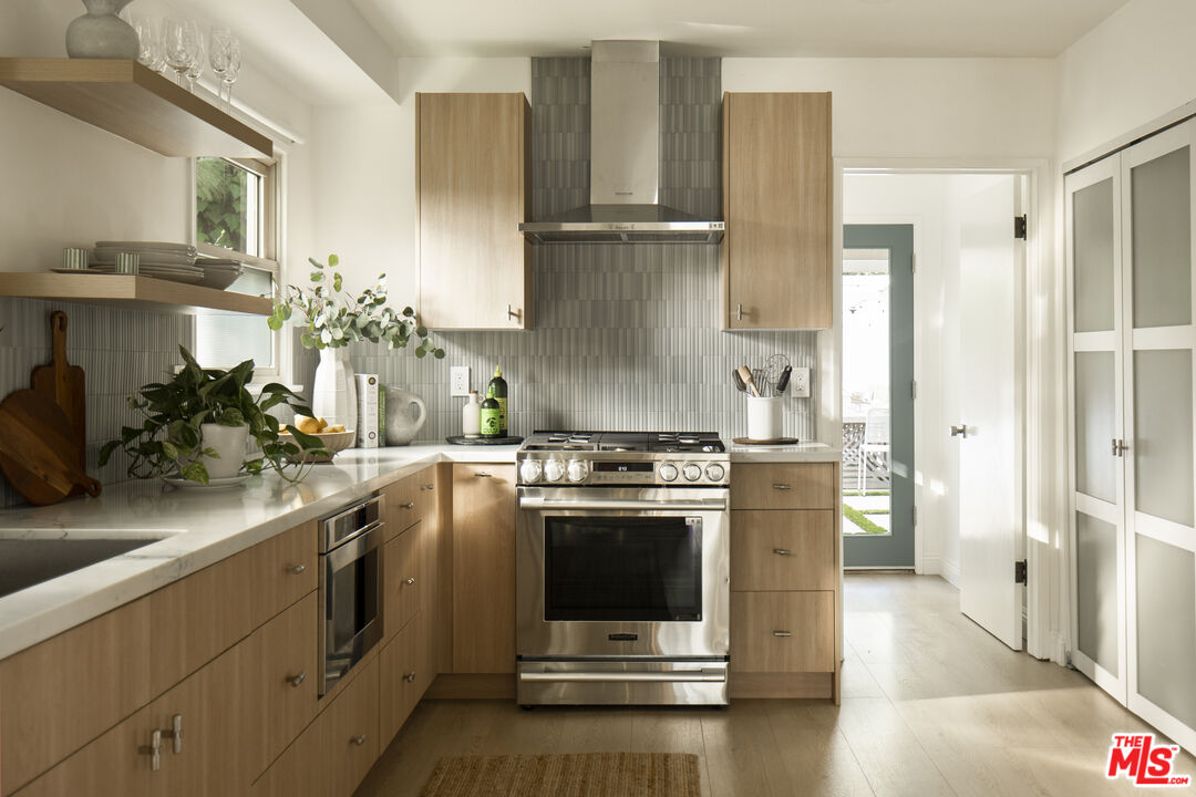 Welcome home to this Mar Vista Estate. Set high above the street on an unusually generous 9,286-square-foot lot, this fully renovated Mid-Century residence offers a rare trifecta of architectural character, modern luxury, and endless future possibilities. Every detail has been thoughtfully curated to honor the home's iconic roots while embracing a sophisticated, contemporary lifestyle.The interior unfolds into a bright, open floor plan where clean lines and classic details take center stage. A signature sunken living area draws the eye toward a dramatic picture window, creating a seamless connection between the chic indoors and the sweeping city and mountain outlooks. The social heart of the home flows into a gourmet kitchen and dining space, outfitted with high-end appliances, quartz countertops, custom modern cabinetry, a dedicated pantry, and designer tile accents that add a touch of warmth and texture.Three well-appointed bedrooms provide flexible comfort for any lifestyle. The primary suite is a serene sanctuary, offering expansive views and direct access to a refreshed, contemporary bathroom. The third bedroom, a standout space featuring soaring wood-beamed ceilings and sliding glass doors, opens directly to the gardens, making it the perfect home office, creative studio, or nursery.The massive backyard truly sets this property apart from anything else on the Westside. Featuring an oversized backyard, lush open lawn, and a private hillside backdrop, it serves as the ultimate setting for alfresco dinner parties or quiet relaxation. This expansive lot offers unrivaled privacy and the potential to add a substantial ADU or expand the existing footprint, all while maintaining your own private outdoor park.Situated in the hills near the highly regarded Mar Vista Elementary School, you are just moments away from local markets, parks, and the vibrant Westside culture. This is a rare opportunity to own a compelling blend of style, significant land, and prestige on one of Mar Vista's most sought-after streets.