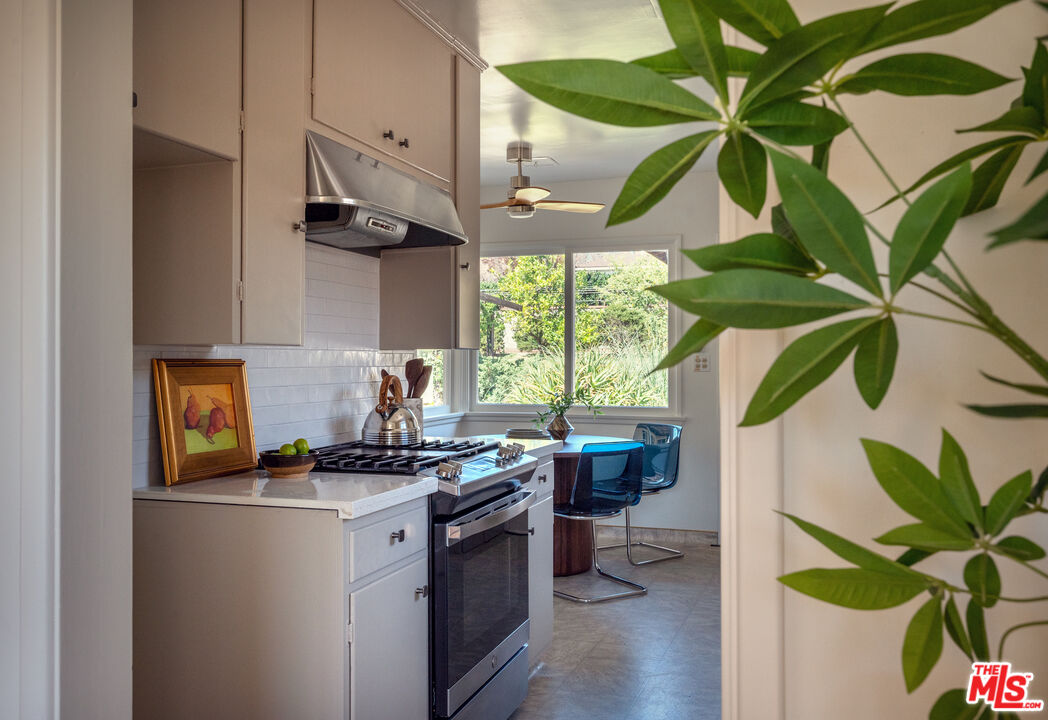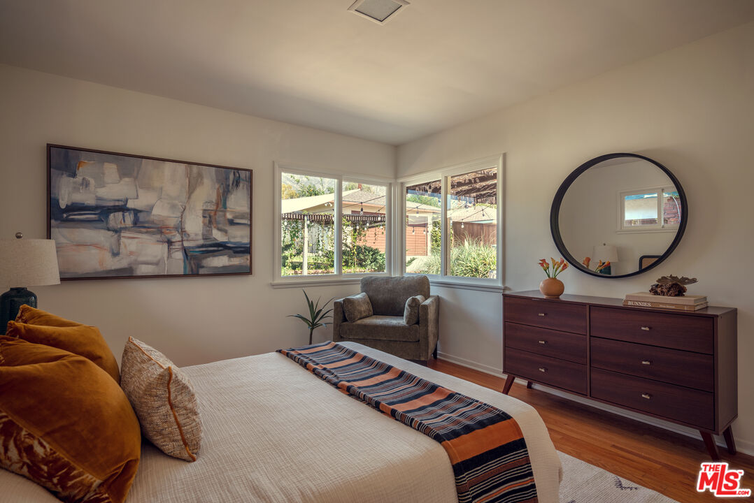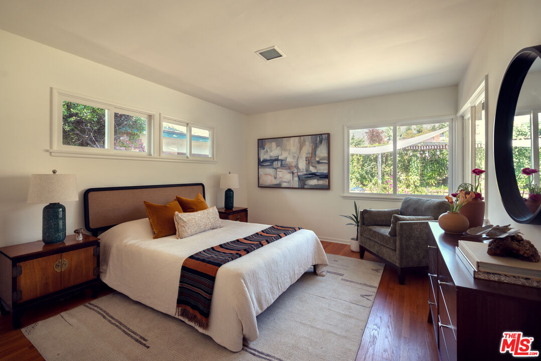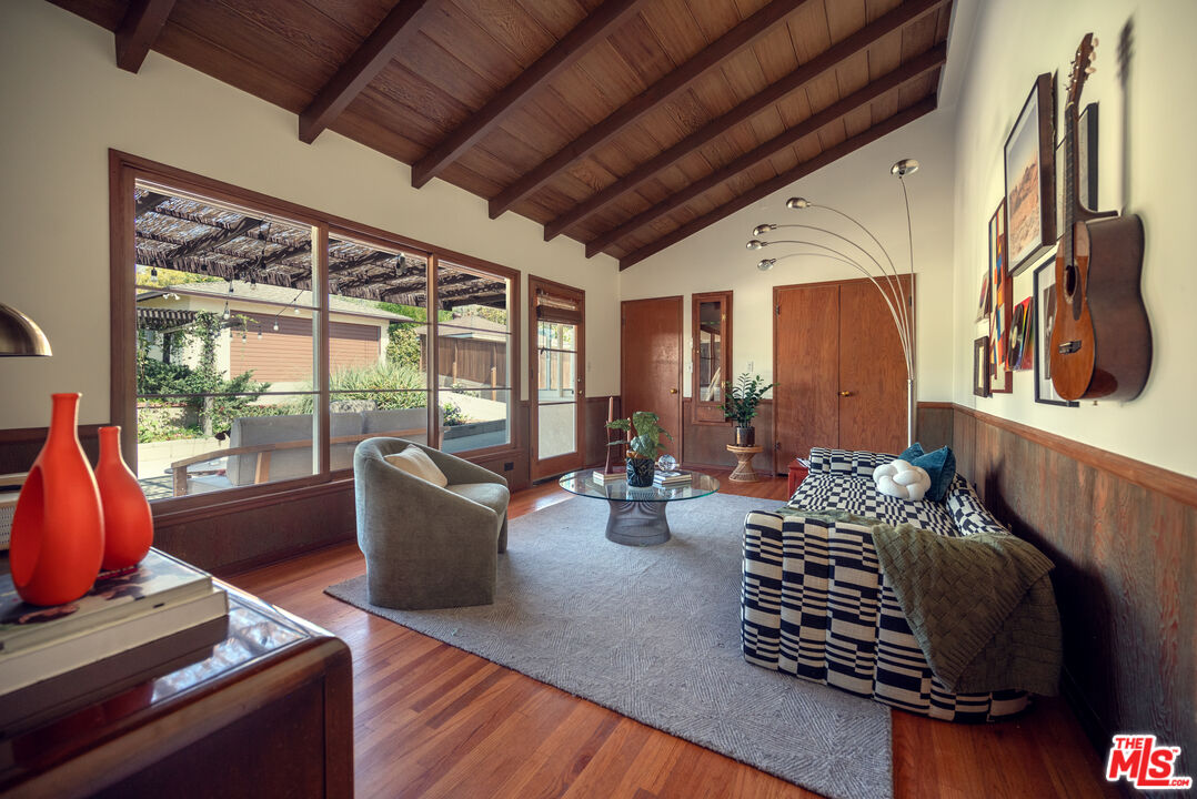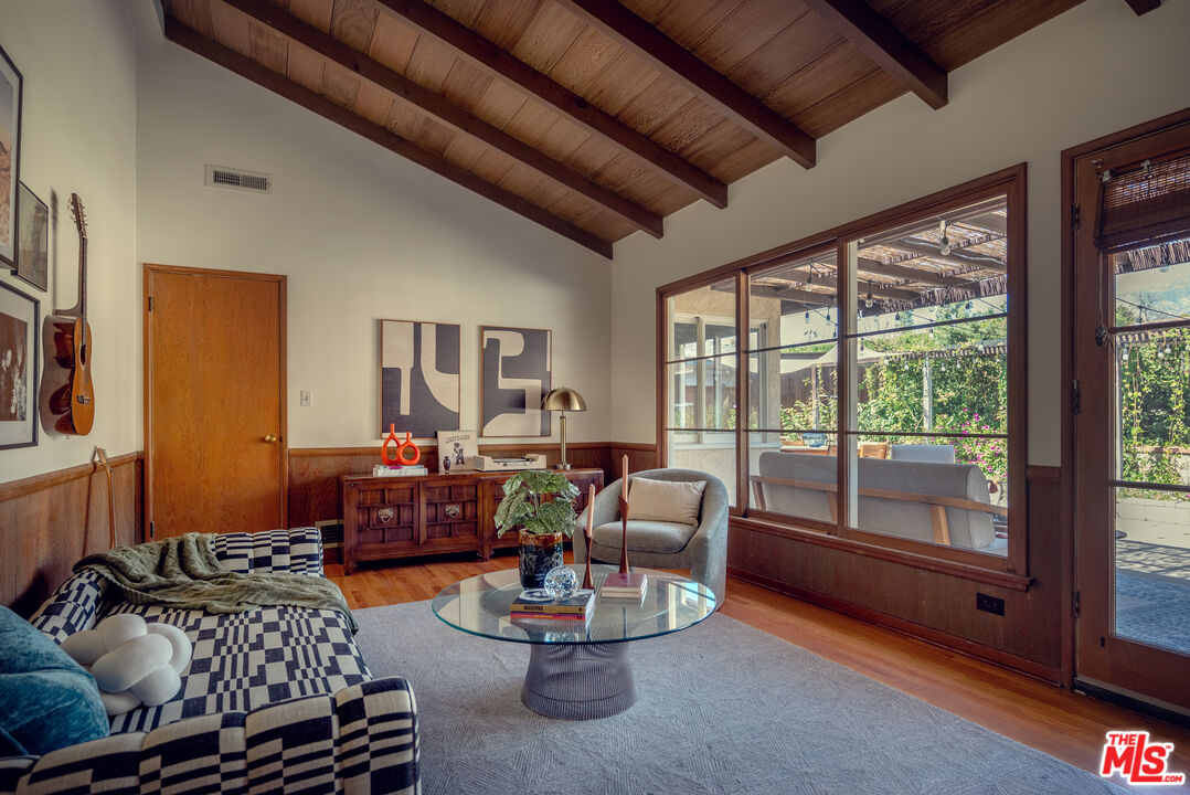 Nestled on a quiet, tree-lined street in the highly desirable city of Pasadena, bordering the Hastings Ranch neighborhood, this charming cottage home offers picturesque views of the San Gabriel Mountains and sits on an expansive 8,700+ sq ft lot. Filled with an abundance of natural light, the home blends timeless character with subtle mid-century influences. The inviting living room showcases beautiful wood built-ins that frame the fireplace, creating a warm and welcoming focal point. The dining room, wrapped in windows, offers a bright and airy setting and flows seamlessly from the eat-in kitchen perfect for entertaining. The spacious family room features dramatic high-pitched beam ceilings and opens to an enchanting patio retreat, with sitting and dining areas surrounded by lush flowers and climbing vines an ideal setting for relaxing evenings or weekend entertaining.The generously sized primary bedroom captures serene mountain and backyard views, while the second bedroom offers ample space and comfort. The bathroom maintains its vintage charm with original blue tile, a separate shower, and a tub. Adding versatility, the den includes a closet and could easily be used as a third bedroom, home office, or guest room. The ageless character is further complimented by contemporary enhancements including updated electrical panel, smart thermostat, sprinkler system, and EV charging. The garage is the perfect home gym or office space, and could easily be converted into an ADU if permitted by the city. Buyer to do their own investigations. Enjoy the many recreation options within walking distance, including Victory Park, Alice's Dog Park, Hastings Branch library, a golf course, and the Pasadena Farmers Market on Saturdays. Convenient nearby shopping and dining options include Whole Foods Market and Trader Joe's, as well as the popular walkable downtown of Sierra Madre, with its bookstore, trendy cafes, bars, restaurants, and events. With easy access to the 210 Freeway, this home offers both tranquility and connectivity in one exceptional location.