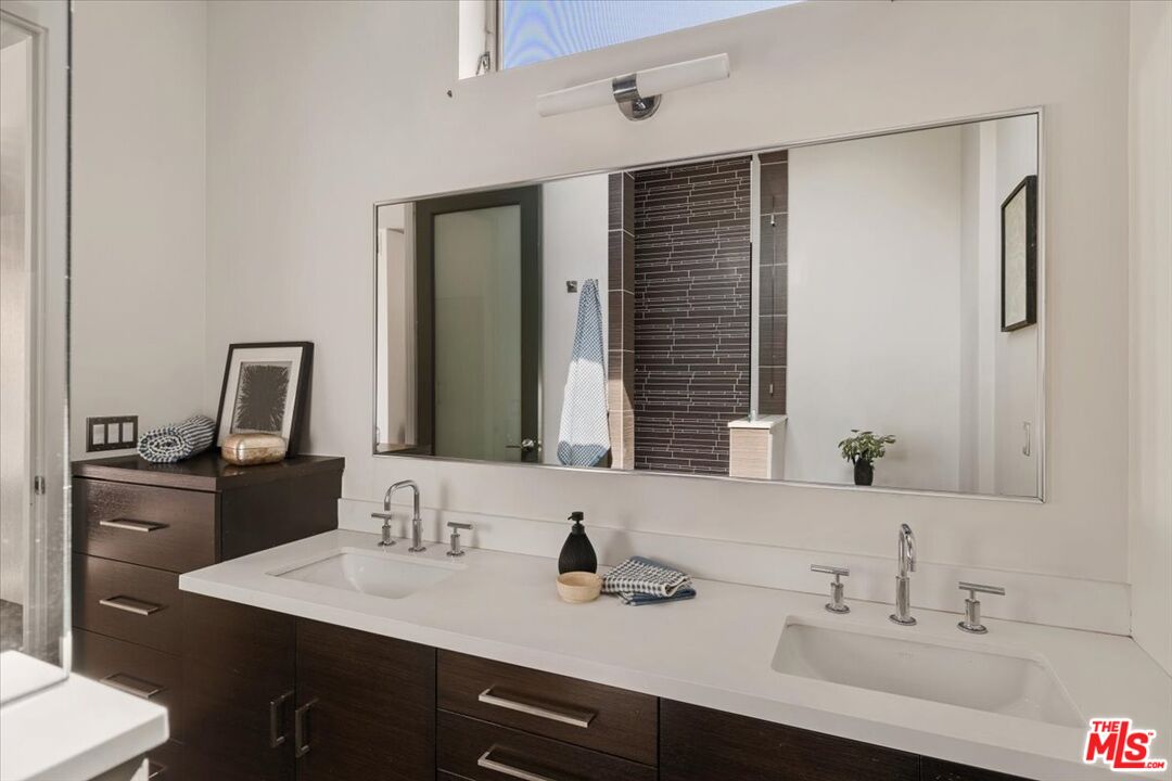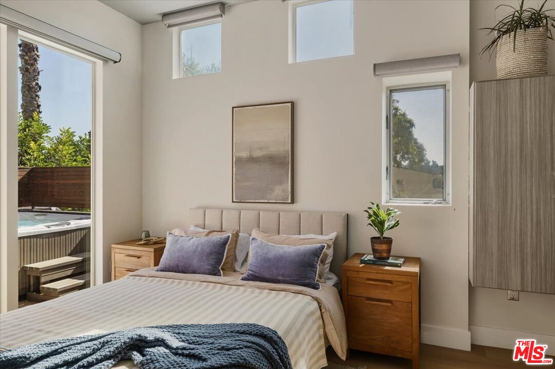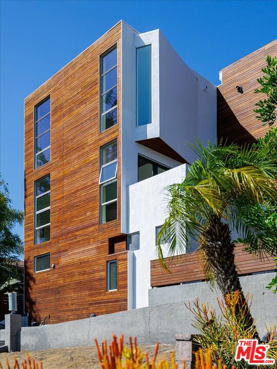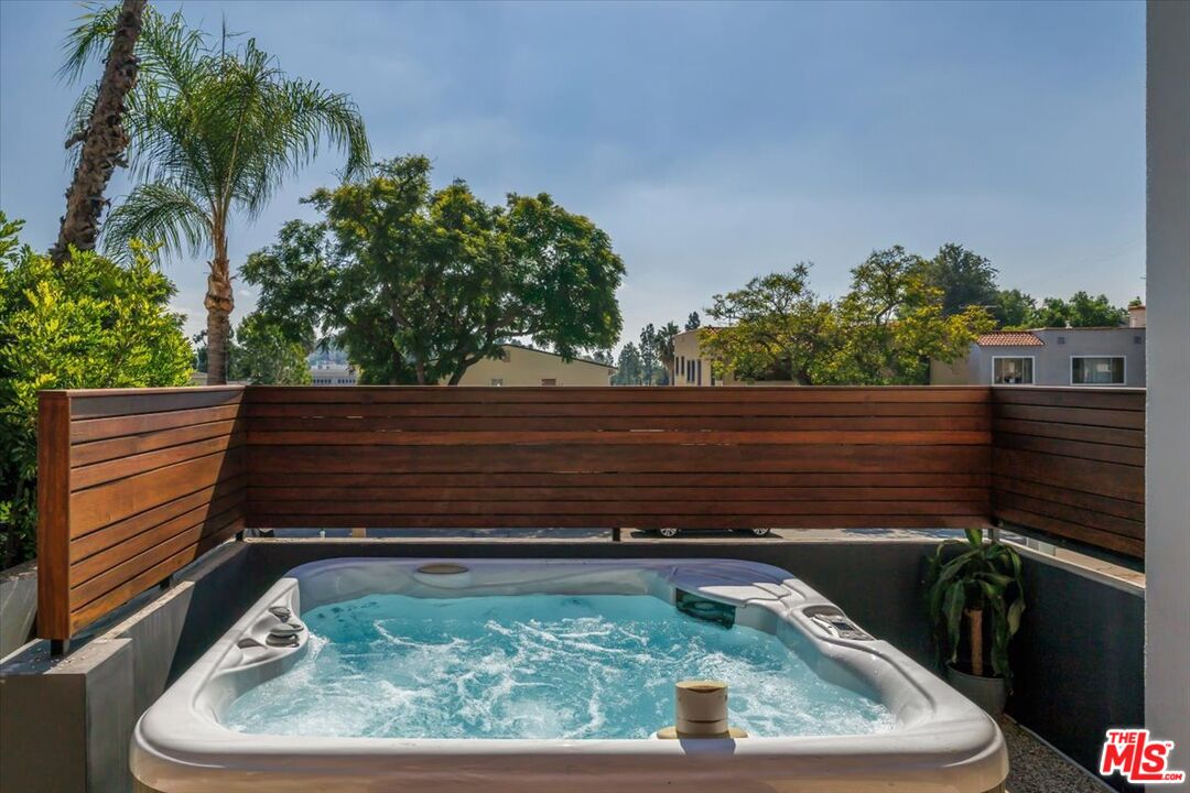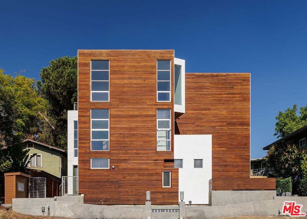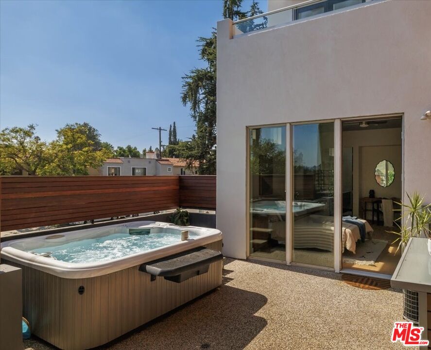 Discover this stunning 2-bedroom, 2.5-bath modern loft-style home, offering sweeping views and sophisticated design in the heart of Los Feliz. The entry level features an en suite bedroom ideal as a guest suite or home office with direct access to a private patio bathed in natural light. Relax in the sparkling hot tub or unwind in the peaceful outdoor space. Up one level, the open-plan kitchen and living area are framed by double-height ceilings and walls of glass, filling the space with light and capturing panoramic south and east-facing views. The balcony invites outdoor dining and entertaining, while the kitchen boasts quartz countertops, Bosch appliances, and convenient access to laundry, storage, and a half bath. The spacious primary suite spans the entire top level, showcasing breathtaking views, built-in storage, a walk-in closet, and a spa-inspired bath with double vanity, soaking tub, and a separate stone-wrapped shower. A private two-car garage with EV charging and direct home access completes the property. Recent updates include new flooring, refreshed stucco and teak exterior finishes, resurfaced balconies, and a new elastomeric roof coating. Work is also underway on a new landscaping project scheduled for completion this fall. Enjoy modern living just moments from Griffith Park and the best dining, shopping, and entertainment in Los Feliz, Silver Lake, and Atwater Village.