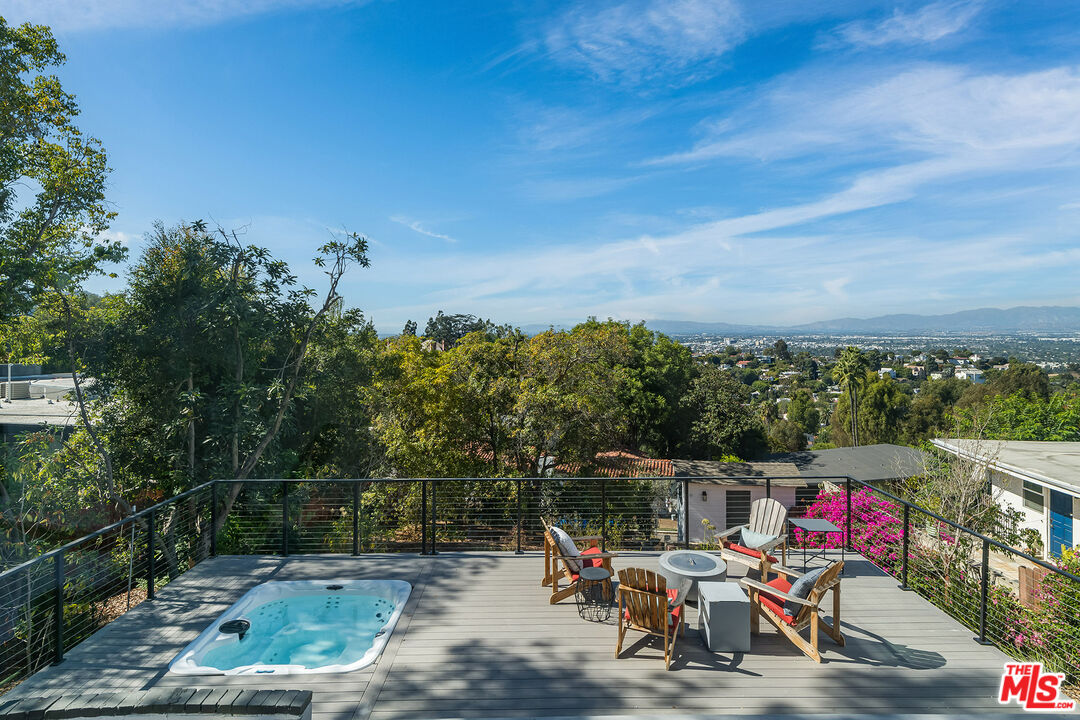 An Unparalleled Hollywood Hills Retreat. Experience the rare opportunity to own a private compound on a 12,000+ sq ft street-to-street lot in Lake Hollywood. This reimagined 1930s Art Deco Modern estate blends timeless architecture with contemporary comfort. Beyond the grand entrance, a spiral staircase introduces a home framed by captivating views. The chef's kitchen is a showpiece with brand-new Thor appliances including a wine fridge, a custom microwave drawer, bespoke cabinetry, and ample prep space. The primary suite is a private sanctuary, with a coffee bar, patio for sunrise coffees or sunset toasts, sleek fireplace, spa-inspired bath with dual vanities, oversized shower, custom closet, and beauty station. An upstairs guest suite offers a spa bath with soaking tub, while a main-level bedroom completes the layout. Throughout the home, thoughtful details shinefrom the original fireplace with reading nook to discreet under-stair storage. Expansive dining, living, and family rooms flow seamlessly outdoors, embracing California living. The resort-style backyard is landscaped with drought-tolerant greenery, spa patio, and spacious entertaining areas. With room to garden, add a pool, or build an ADU or guest house, the property offers flexibility without compromise. Recent upgrades include new electrical, plumbing, dual HVAC, roof, and windows, plus in-unit laundry on the bedroom level. Perfectly located near premier dining, shopping, entertainment, and freeway access, this estate offers both privacy and proximity. Welcome to a lifestyle defined by elegance and distinction.