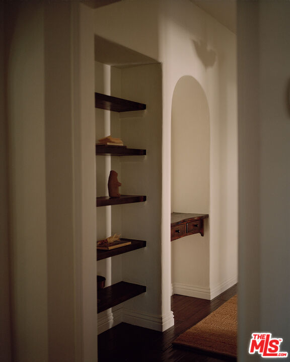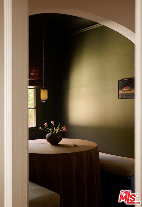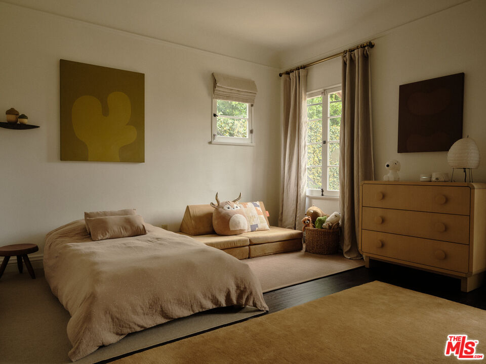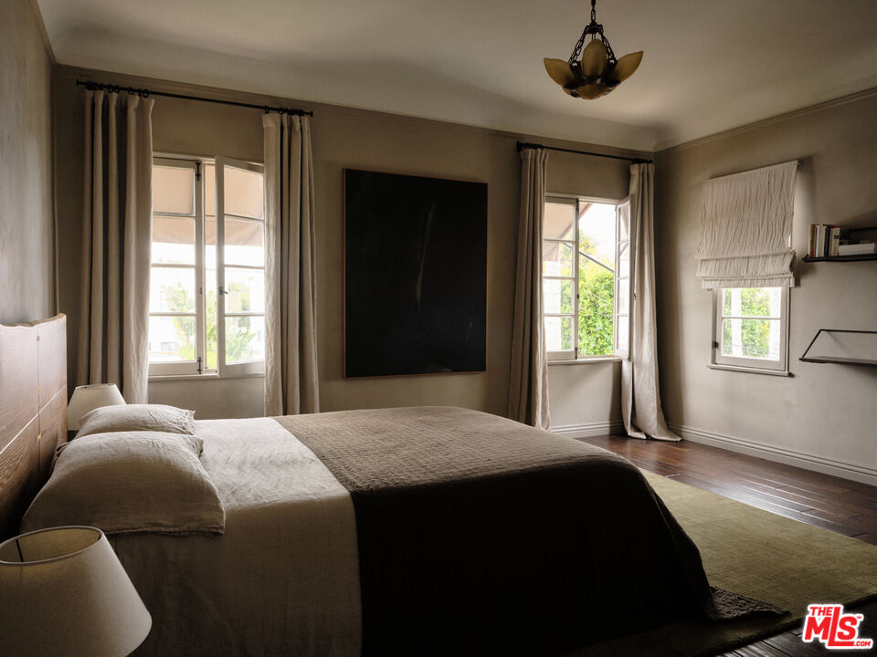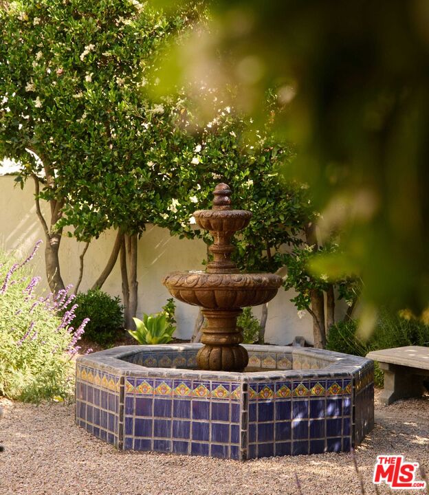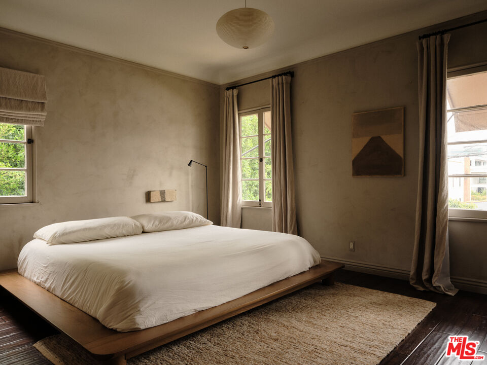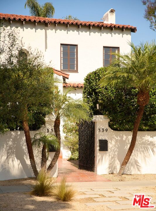Discreetly tucked away in the heart of West Hollywood, this exquisitely appointed 1929 Spanish upstairs/downstairs duplex whispers of old-world romance and artistic possibility. Beyond its gated entrance, a lush, secluded courtyard invites you to wander beneath the dappled light, an intimate prelude to the magic that awaits within. Inside, a dramatic foyer with original tiled stairs and a glowing stained glass window you'll find separate, private entries to each residence. Both upstairs and downstairs spaces offer a 2-bedroom, 2-bathroom floorplan plus a bonus room, each brimming with soulful character, beamed ceilings, arched doorways, updated kitchens and baths, a grand fireplace, and hand-carved wood doors that speak to the craftsmanship of another era. The gardens, reimagined by ORCA with native specimens, unfold like a love letter to LA's natural beauty. A large detached garage has been converted into a studio or flex space, perfect for creative pursuits. A long, gated driveway completes the picture, offering privacy and ease. With a prime location that offers easy proximity to Melrose Place and all that WeHo offers, this rare sanctuary is more than a home, it's a feeling.