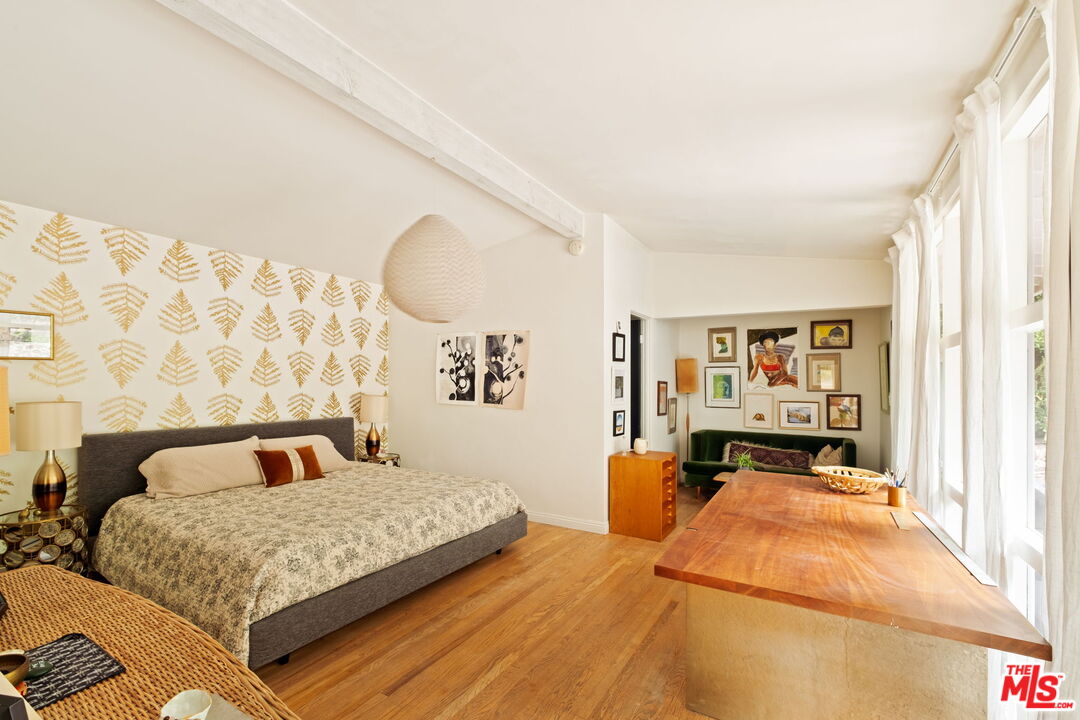 Set in one of Brentwood's most tranquil canyons, this home feels both architecturally significant and deeply serene - a true retreat just moments from the city. Tucked into peaceful Upper Mandeville Canyon, this is a mid-century modern gem set in a very private and protected property. The 3 bedroom, 2 bath home reflects the timeless essence of architectural Cali living with clean lines, natural light, and an easy connection between indoors and out. Designed as a Mid-Century modern by renowned LA architect Allen Siple, the open layout unites the living, dining, and kitchen areas, where walls of glass fill the space with sunlight and frame views of private, lush greenery. The kitchen was recently reimagined with warm oak cabinetry, Zellige tile, brass fixtures, and sleek quartz counters that blend modern design with mid-century character. Open shelving displays curated ceramics, and a large window looks out over the courtyard. The primary suite opens to a private backyard sanctuary with a pool, fountain, and plenty of lounge space for relaxing or entertaining. A bonus and detached 800-square-foot garage and creative studio offer endless possibilities for work or play.