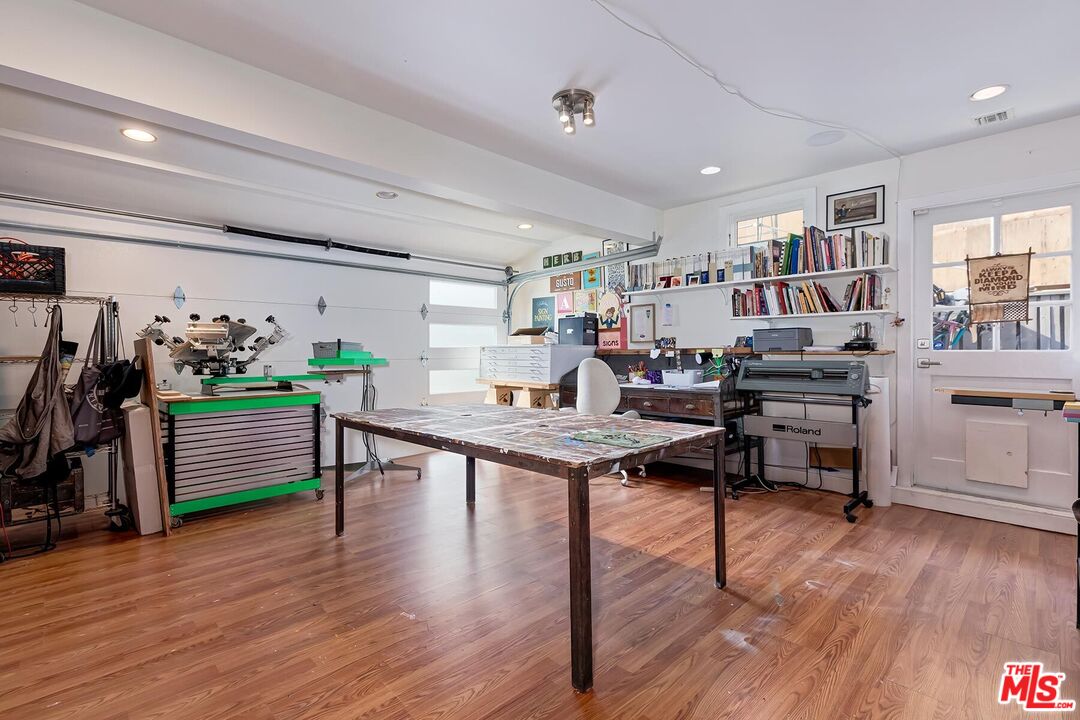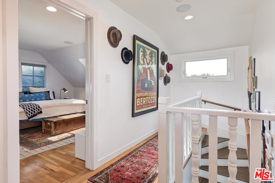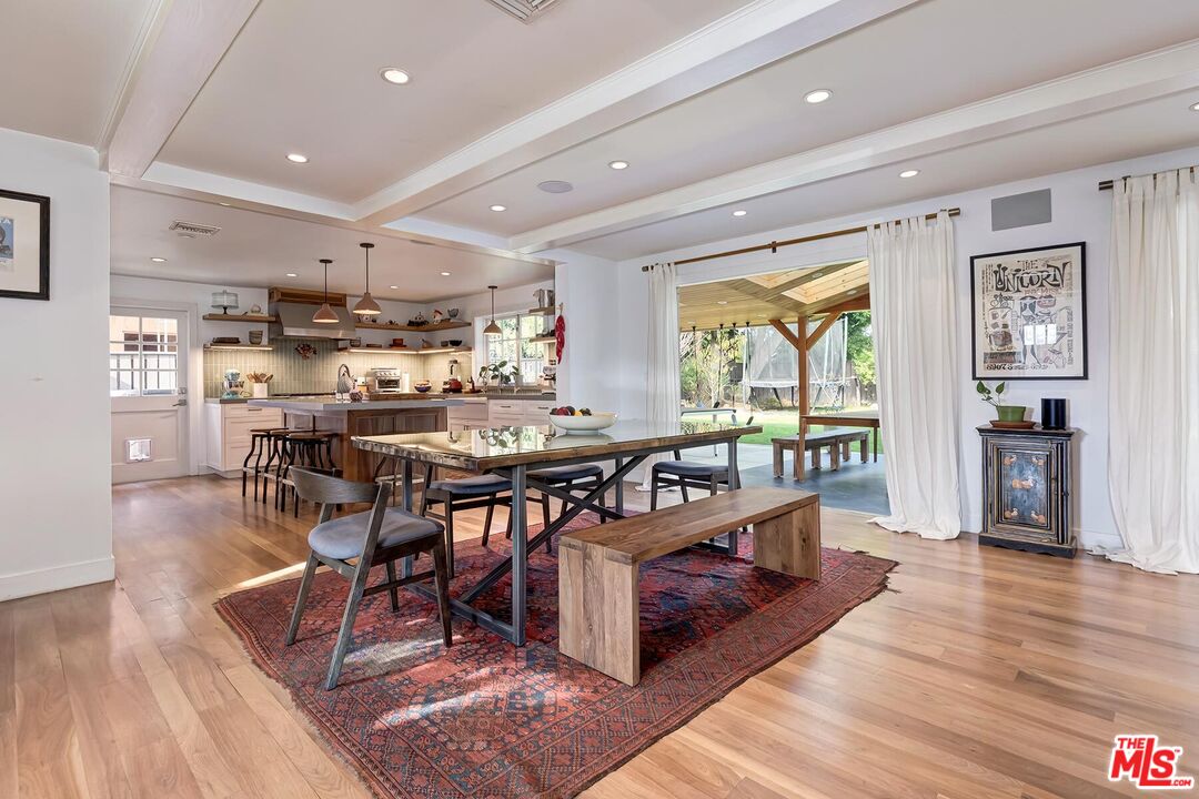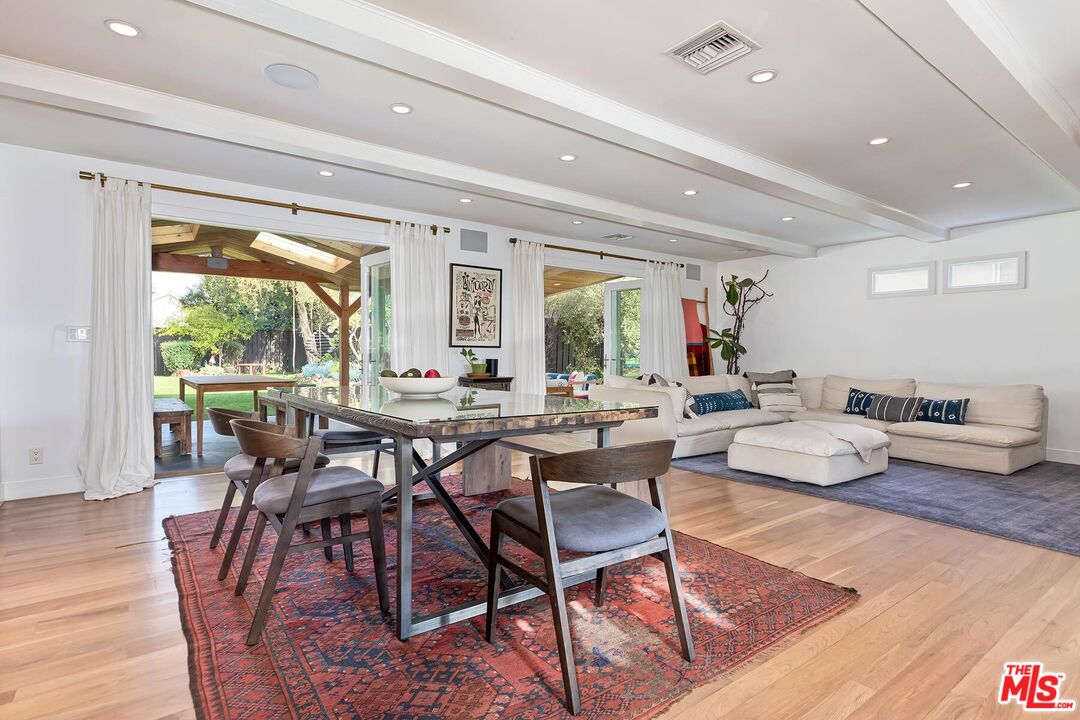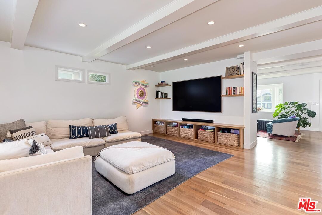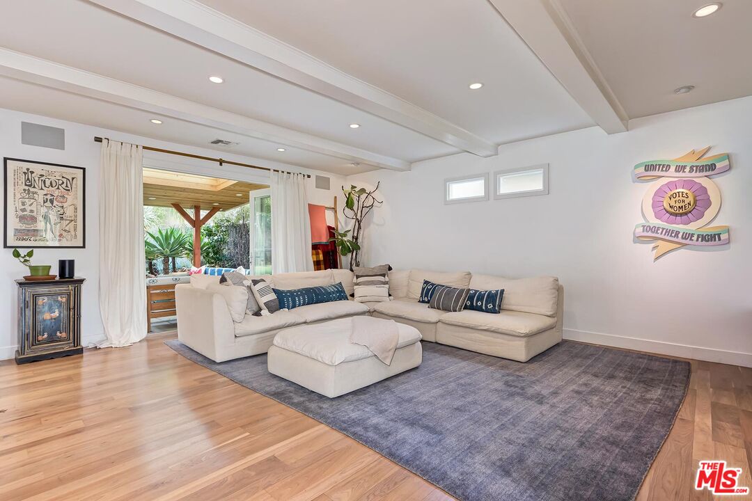 Tucked within the cradle of a tree-lined cul-de-sac on a quiet street in Cheviot Hills, this 4-bedroom/2.5-bath, 2,338 sq ft home is a designer's dream. The property features an awe-inspiring outdoor living extension, including an additional 600 sq ft covered patio with skylights, Basalt flooring, and a fire pit ideal to enjoy as is or easily enclosed to create an additional room for seamless indoor-outdoor living. A fully remodeled farmhouse with an open floor plan, the home offers warmth and elegance at every turn. Original walnut hardwood floors, a romantic bay window, a wood-burning fireplace, custom white oak shelving, and exposed beams create timeless character. The picturesque chef's kitchen features oak open shelving, a fire clay tile backsplash, stainless Thermador oven and range, refrigerator/freezer, wine fridge, and is anchored by a stylish eat-in island built from walnut with Caesarstone countertops. The private backyard is massive in scope, offering a vast expanse of grass, a hot tub, and a dizzying array of fruit-producing citrus trees including lime and Meyer lemon. Upstairs are the home's sleeping quarters, each bedroom generous in size with lovely natural light. The primary bedroom features a vaulted ceiling, an enormous walk-in closet, a large and beautiful bathroom, and a pretty view. Additional amenities include a new laundry area with stone counters, a new garage door (the converted garage has WiFi, heat/AC and is currently used as an artist's studio but can easily be returned to housing cars), new exterior paint, new windows, and a stone's throw to the Griffin Club, Expo Line, shops, and restaurants of Culver City and Cheviot Hills. An absolute jewel of a home on an especially family-friendly street, this one will not be on the market for long.