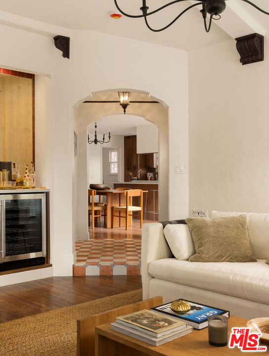 Tucked on a peaceful corner lot in iconic Leimert Park, this beautifully restored Spanish Revival home greets you with a romantic courtyard shaded by a graceful olive tree. Step inside to a sun-soaked living room featuring original hand-troweled plasterwork, soaring 9-foot beamed ceilings, a wet bar, classic moldings, a cozy fireplace, and a stunning picture window. Rich oak hardwood floors flow throughout, elevating every space with timeless warmth. The fully updated chef's kitchen blends modern convenience with undeniable charm, complete with a delightful breakfast nook and ceiling details worthy of an art gallery. The period character continues into the laundry room, where thoughtful vintage touches like a built-in drying rack, ironing board, and a nostalgic milk door make this home truly special.You'll find three generously sized bedrooms, including two en-suite retreats that open to the backyard deck. Out back, enjoy an outdoor kitchen and a private yard designed for relaxation and effortless entertaining. It truly feels like a personal getaway.A detached two-car garage offers even more flexibility. With thoughtful upgrades throughout including a new roof, HVAC, updated plumbing, new electrical wiring, and a 200-amp panel, this home is ready to welcome its next chapter. All of this is just minutes from Kenneth Hahn Park, the Culver City Stairs, and beloved LA gems like Post & Beam, Somerville and Jon & Vinny's. Your dream home is here, make it yours.