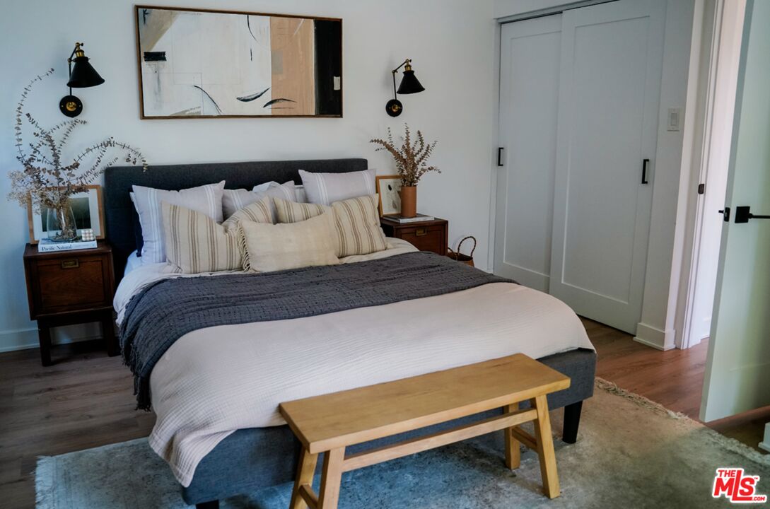 Stylish 2BR/2.5BA contemporary home in historic Cahuenga Pass with views of Universal Studios. This beautifully remodeled Hollywood Hills residence features an open floor plan with seamless indoor/outdoor flow, new windows, central HVAC, and pristine flooring. Both bedrooms open to a spacious deck and private, tree-lined backyard, perfect for relaxing or entertaining. Enjoy a designer kitchen with quartz countertops, glass tile, and black stainless steel appliances. All bathrooms are newly updated, and the primary suite includes a large walk-in closet ready for customization. Minutes from Runyon Canyon, Lake Hollywood, Universal Studios, and major entertainment hubs.