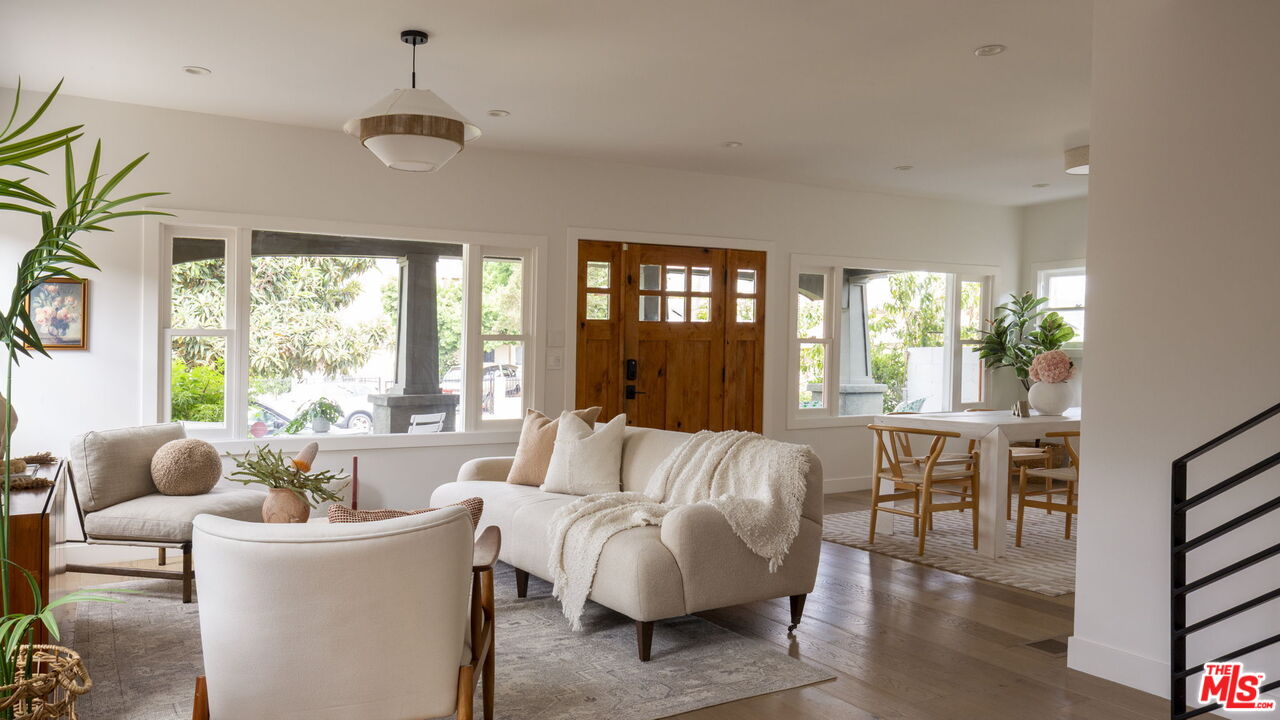 Exceptionally spacious and beautifully remodeled, this historic gem in the Jefferson Park HPOZ neighborhood blends timeless Craftsman charm with modern comfort. Offering 5 bedrooms and a thoughtful floor plan, the home provides abundant space for living, working, and entertaining without sacrificing warmth or character .The exterior showcases authentic Craftsman colors, a wide, welcoming porch, and drought-tolerant native landscaping. A long driveway offers convenient off-street parking. Inside, natural light floods the open, airy layout. The freshly remodeled interior features a neutral palette, perfect for personalizing. The main level boasts an open-concept dining area, family room, and stylish kitchen, plus four bedrooms and three updated bathrooms. Upstairs, you'll find another expansive bedroom, a large second family room, and two versatile landing areas ideal for a home office, reading nook, or creative studio. Step outside to your private backyard oasis with two spacious decks designed for entertaining and relaxing. Lush, thoughtful greenery enhances the sense of retreat. The detached garage, currently offering two additional parking spaces, holds exciting potential for an ADU conversion .Additional upgrades include paid-off solar panels, updated systems, foundation improvements, and more. Perfectly situated near the local library, parks, and neighborhood favorites like Caf/5, South LA Caf, Harold & Belle's, and Highly Likely with easy freeway and public transit access.