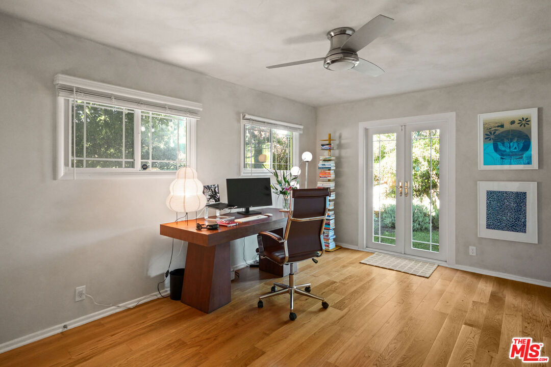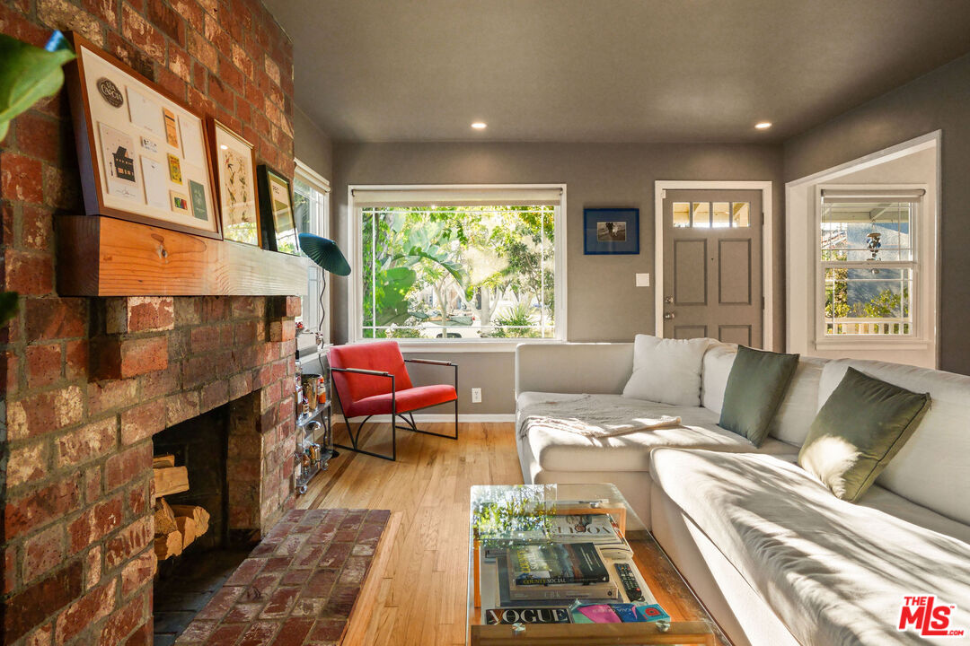 Tucked away on a peaceful street in the heart of Mar Vista, this enchanting home blends comfort and connection in every detail. Step inside and feel instantly welcomed as the soft glow of natural light dances across limewashed walls, while oak floors bring warmth and character to each space. The living room invites you to unwind beside a handsome brick fireplace framed with charm and personality. Gather with friends, curl up with a book, or simply watch the world slow down through the sunlit windows. The thoughtfully designed kitchen, fully remodeled with handcrafted Heath Ceramics tile and sleek Caesarstone countertops, makes cooking feel both joyful and effortless. Every detail, from custom cabinetry to top-of-the-line Samsung appliances, has been curated with love and purpose. The home's seamless flow extends outdoors, where a lush backyard becomes an extension of your living space. Beneath the canopy of mature trees, you'll find the perfect spot to share long dinners under the stars, morning coffee in the sun, or quiet moments by the outdoor fire pit. The primary bedrooms offer a peaceful retreat, opening to the garden through French doors that fill the rooms with fresh air and the scent of nature. While the other 2 well-sized bedrooms offer a range of possibilities for family use or hosting friends. Each space carries a sense of calm. Located just moments from Mar Vista's beloved local cafes, farmers market, and Venice Beach, Abbot Kinney, and Santa Monica's Main St., this home captures the essence of California living - relaxed, soulful, and full of heart.