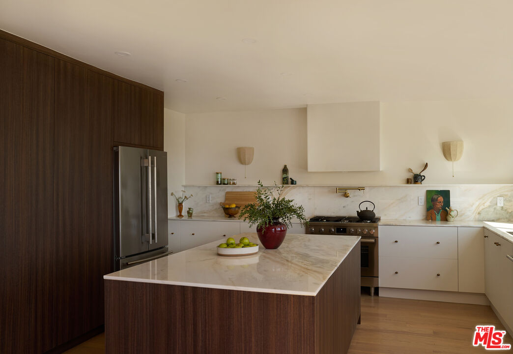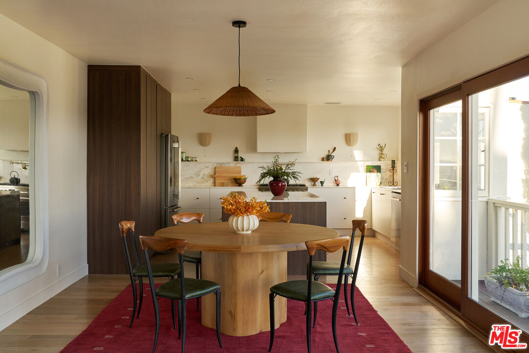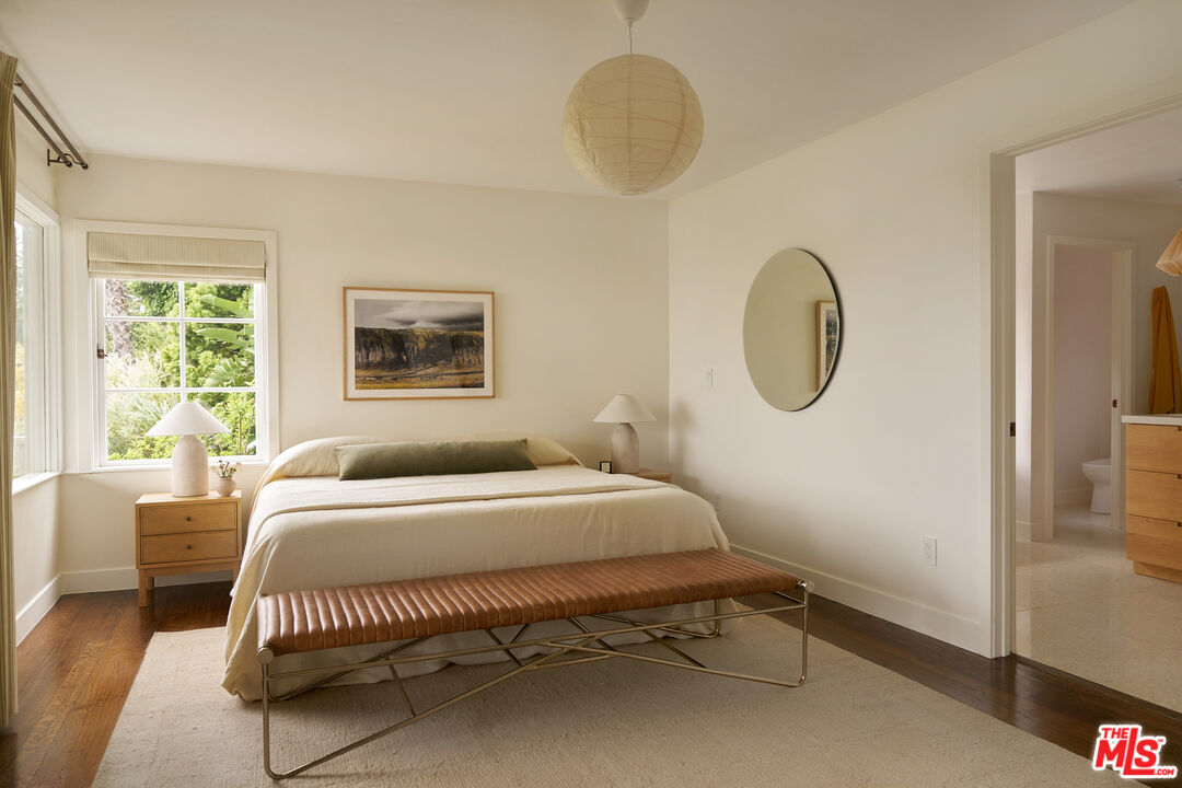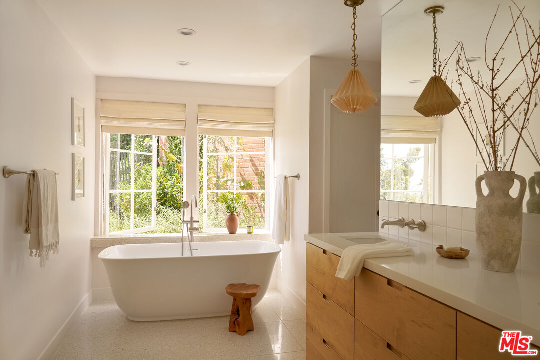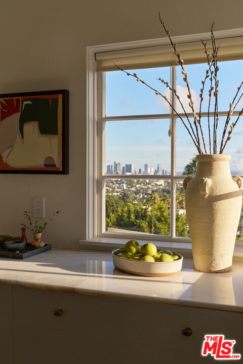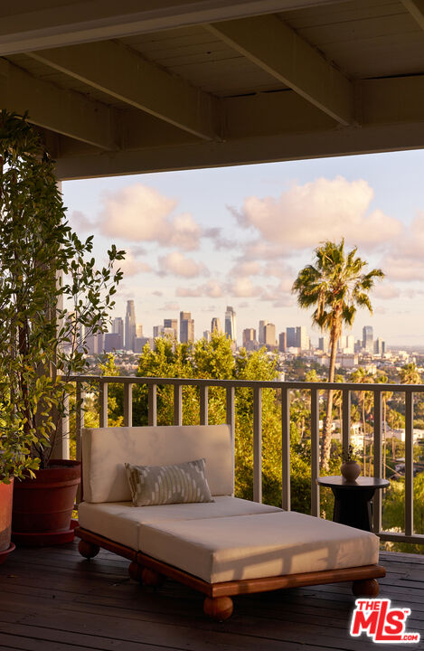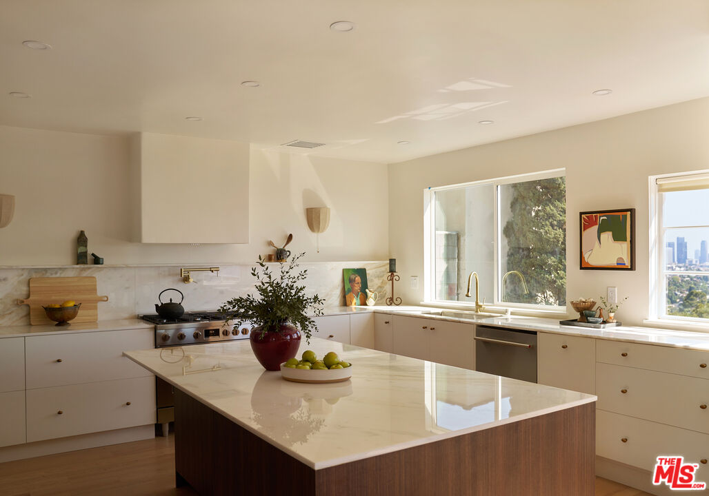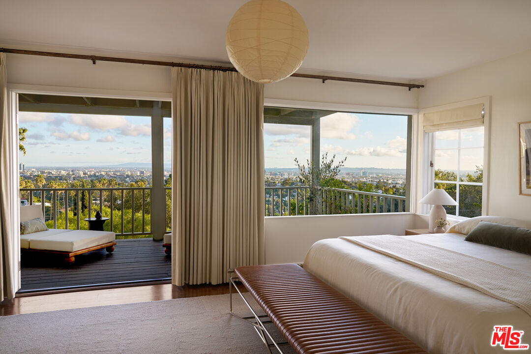 Set behind gates on a rare street-to-street lot spanning over 10,000 square feet, this extensively renovated private Silver Lake residence offers sweeping views from Downtown to the Pacific Ocean, visible from every room, along with a true indoor-outdoor California living experience just moments from all the neighborhood has to offer. Landscaped by acclaimed LA design firm Breland-Harper, the grounds unfold as a hidden oasis with winding paths, multiple terraces, mature fruit trees, and distinct outdoor spaces designed for both entertaining and everyday retreat. Blending character and comfort a dramatic living room welcomes you with coved ceilings, opening to a spacious view deck and flows seamlessly into the dining area and newly remodeled kitchen, appointed with custom cabinetry, premium appliances, dolomite countertops and backsplash. The primary suite is a private sanctuary with windows that frame the panoramic views, a renovated spa-like bathroom with freestanding tub, double vanity, a custom walk-in closet, and its own private deck. A generous secondary bedroom and adjacent bath complete the middle level. The lower level offers versatility as a guest suite, office, creative studio, or media lounge, with its own kitchen, sitting area, bedroom, and direct access to an additional outdoor dining and lounging terrace. Throughout the home, spaces open effortlessly to the outdoors. At the heart of the grounds, a rare flat entertaining area centered around an outdoor fireplace creates an ideal setting for sunset dinners, gatherings under the stars, or quiet evenings at home. Ten fruit-producing trees, including plum, citrus, pomegranate, and apple, add charm and abundance, while multiple decks and terraces invite year-round enjoyment. A pedestrian gate to Golden Gate Avenue provides direct access to Sunset Boulevard's shops, restaurants, and neighborhood favorites. A singular offering that combines privacy, scale, views, and lifestyle in one of Los Angeles' most sought-after neighborhoods.
