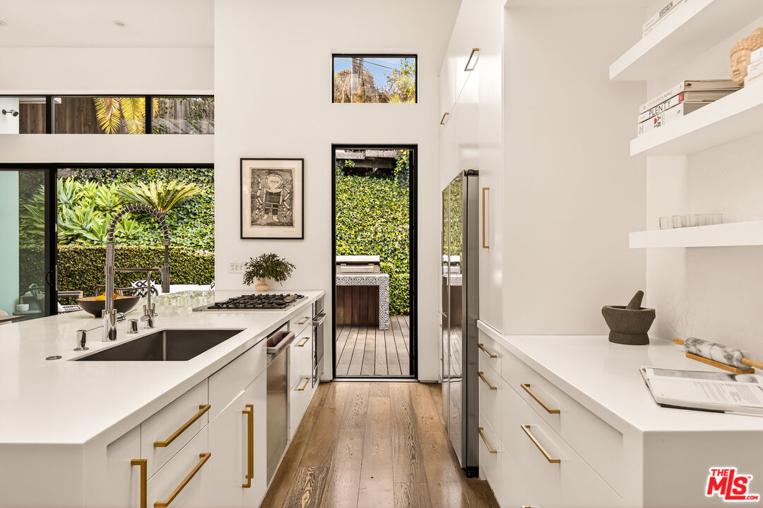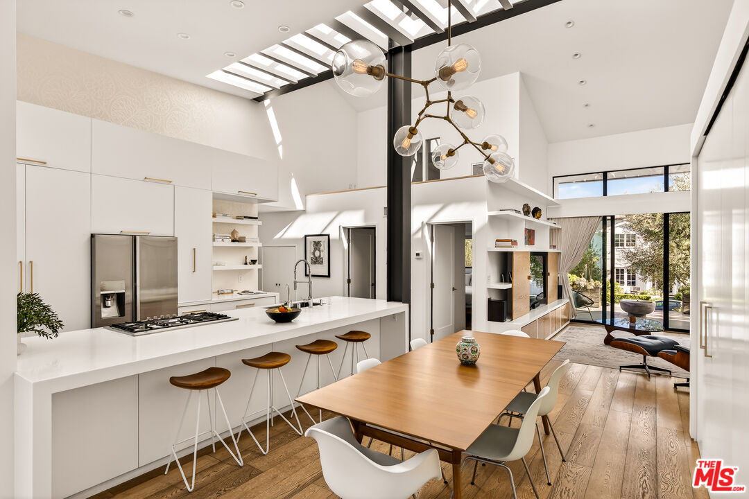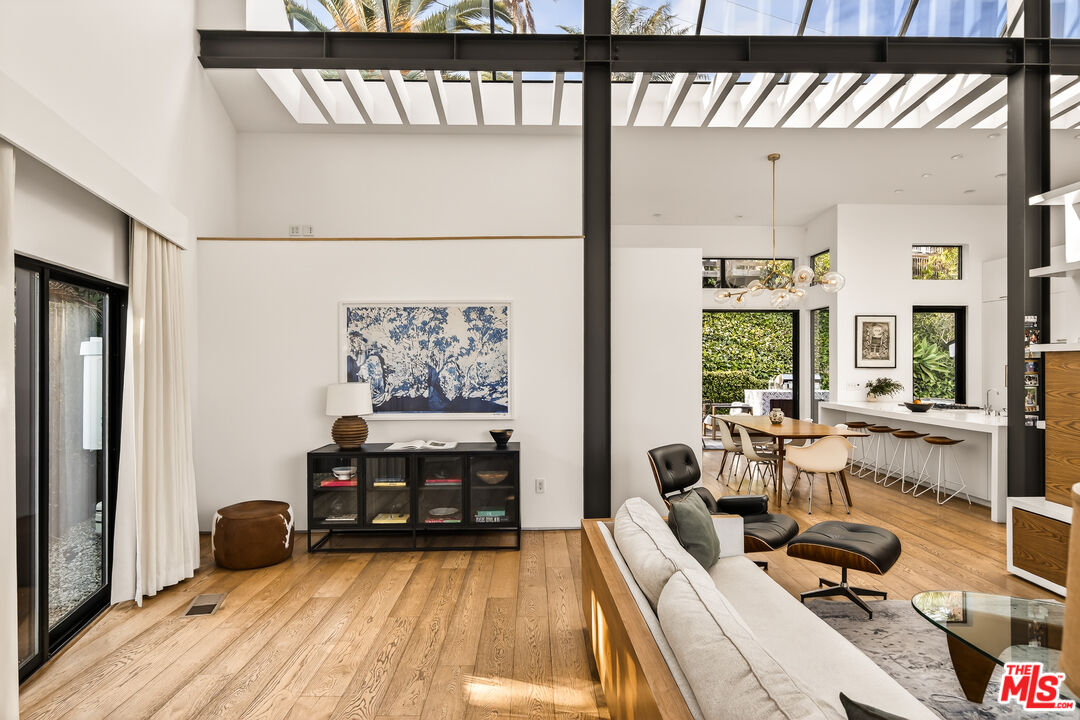 This bespoke architectural residence is defined by soaring 30-foot ceilings, expansive glass, and an extraordinary sense of light, volume, and warmth. Thoughtfully designed with a strong connection to the outdoors, the home pairs striking scale with detail driven craftsmanship and high-end finishes. At the heart of the home, a chef's kitchen anchors the open layout, while oversized skylights and expansive sliding doors create a seamless indoor-outdoor flow. The home's 5 bedroom, 3 bathroom layout is both functional and inspiring, with generous built-in storage perfectly integrated throughout. Outside, multiple inviting spaces include an outdoor lounge with a built-in fire pit, built-in barbecue, jacuzzi, and a hillside deck with sweeping views. Within the Mar Vista School District and set on one of Mar Vista's most sought after streets, this is more than just a beautifully built house - it is a home with heart, soul, and exceptional quality. *The only open houses will be on 4/25, 2/26 and 4/28*