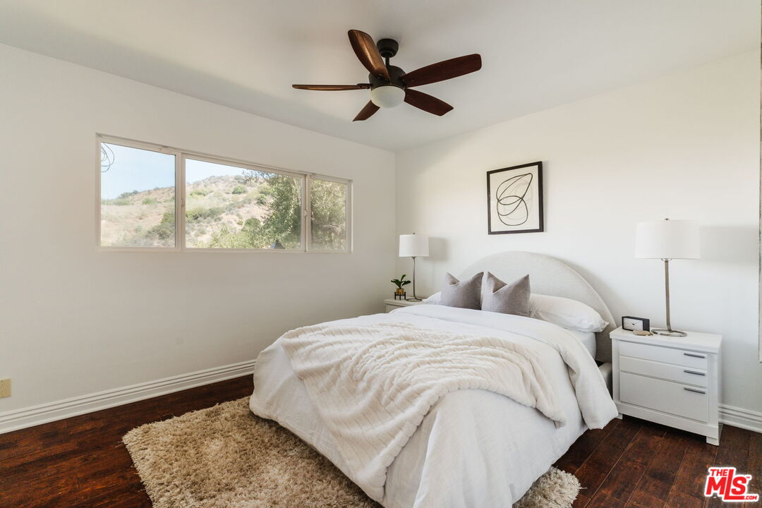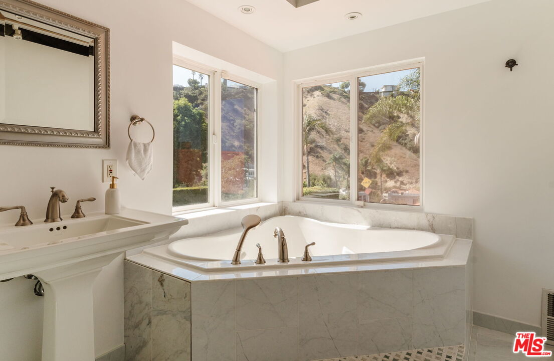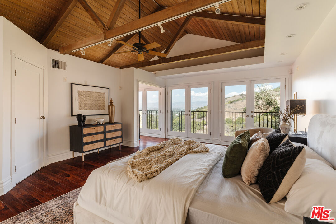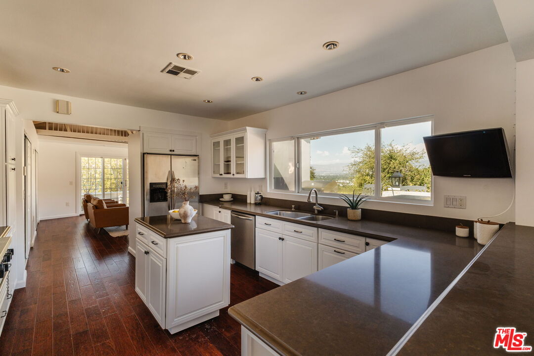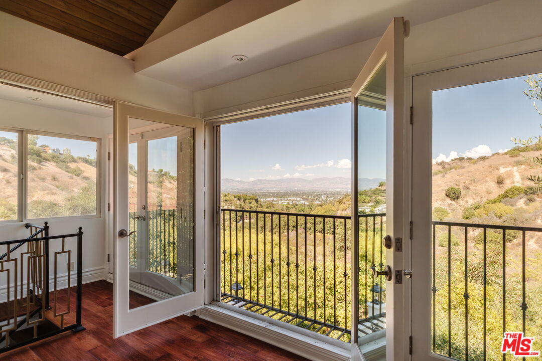 Tucked away at the end of a quiet cul-de-sac in the Sherman Oaks hills, 3530 Coy Drive is a serene retreat where timeless charm meets modern comfort, offering breathtaking panoramic valley and mountain views. This thoughtfully designed two-story home features three bedrooms, three bathrooms, and 2,507-square-feet of light-filled living space, creating an effortless balance of style and tranquility. Beyond the entry, the home offers a formal living room set around a cozy gas fireplace and a versatile family room beneath high vaulted ceilings. The chef-inspired kitchen is a true focal point, appointed with professional-grade Viking appliances including a double oven range, a wine fridge, and a spacious center island, all oriented towards awe-inspiring canyon views. Flowing seamlessly into the dining area, French doors open to a private outdoor oasis, where a built-in outdoor kitchen with BBQ, refrigeration, and a seated bar, along with a spa and dining patio set the stage for alfresco entertaining against a backdrop of picturesque vistas. The lower level hosts two generously sized bedrooms, including one with an en-suite bath, while the upper level is crowned by a serene primary suite. Framed by high, wood-beamed ceilings and far-reaching valley views, this private sanctuary features an expansive walk-in closet and a spa-inspired en-suite with dual sinks, a soaking tub, and a glass-enclosed shower with body jets. Other notable features include a side-by-side laundry area and carport parking for two vehicles in the driveway. Ideally positioned within the Roscomare Road Elementary School boundaries and just minutes from the Beverly Glen Center, Beverly Hills, the Westside, and Ventura Boulevard's top dining and shopping destinations, this exceptional residence delivers unparalleled privacy, sweeping views, and the very best of California living.