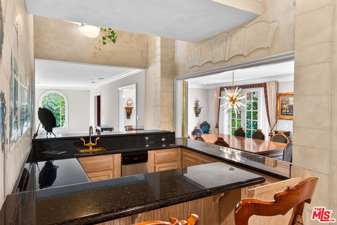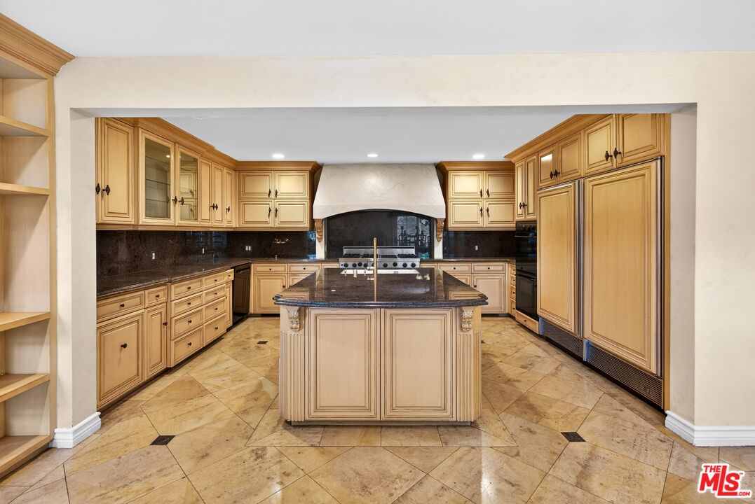 For the visionary buyer, whether developer, renovator, or design-driven end user, this represents a strategic acquisition with meaningful upside. A rare chance to modernize, refine, and create long-term value in one of Encino's most consistently desirable view neighborhoods.Situated on nearly half an acre in one of Encino's most regarded hillside enclaves, this expansive six-bedroom estate presents a rare opportunity to reimagine and elevate a property of exceptional scale, presence, and view orientation, surrounded by significantly elevated home values. With strong architectural presence, estate-sized proportions, and a unique dual-wing second-floor layout, the foundation to build upon is already in place. Generous entertaining spaces and a flexible floor plan provide the ideal canvas for a thoughtful modernization.The main level unfolds with a dramatic foyer, a sunlit living room with wet bar, formal dining room, and an executive den framing canyon and mountain views. The spacious chef's kitchen features dual workstations, multiple ovens, two dishwashers, and an expansive center island, designed to accommodate large-scale entertaining and refined everyday living alike. Upstairs, the dual-wing layout allows for creative reconfiguration, whether for an expansive primary suite, multigenerational living, or private guest quarters. The existing primary retreat, with vaulted ceilings, fireplace, balcony access, and spa-style bath, offers ideal dimensions for a sophisticated redesign. Additional amenities include en-suite bedrooms, a media room, and a gym with sauna.Outdoors, the grounds reinforce the estate setting: a resort-style pool and spa, sport court, multiple terraces, built-in barbecue, and mature landscaping create both privacy and presence. Beyond the sport court lies additional usable land, offering potential for expanded amenities, guest house possibilities, or further estate enhancements (buyer to verify).In a hillside neighborhood where newly modernized homes command premium pricing, properties of this size, lot depth, and view exposure are increasingly difficult to replicate.