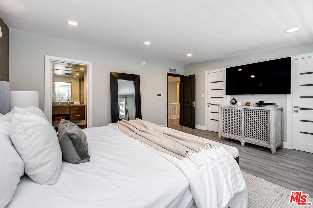 Welcome to this beautifully remodeled 4-bd, 3-ba home with a gorgeous pool nestled in the heart of coveted Studio City. This spacious residence seamlessly blends timeless charm with modern amenities, offering the perfect retreat for comfortable California living. Step through the front door into expansive living spaces featuring wood floors, abundant natural light, and a flowing floor plan - ideal for everyday life and entertaining. The chef's kitchen is the heart of the home, boasting a large center island, stainless steel appliances, stone countertops, and ample cabinetry, perfect for cooking and gathering with family and friends. Each of the four bedrooms offers space and comfort, including a fabulous primary suite with an incredible en-suite bath and a large custom closet. The home's three updated bathrooms are elegantly appointed with contemporary finishes and this wonderful home comes with a water purification system. Outside, enjoy the privacy of a large, beautifully landscaped yard, complete with a sparkling heated salt water pool, built-in BBQ, a fun play set, and multiple seating areas - your own backyard oasis! A circular driveway provides convenient access and parking for several cars, enhancing both curb appeal and functionality. Located just minutes from top-rated schools, trails, studios, and Ventura Boulevard's shops and restaurants, this home delivers style, space, and location in one exceptional package.