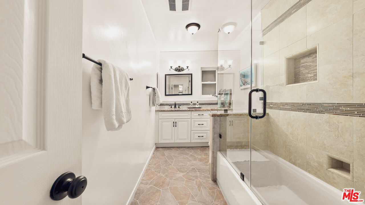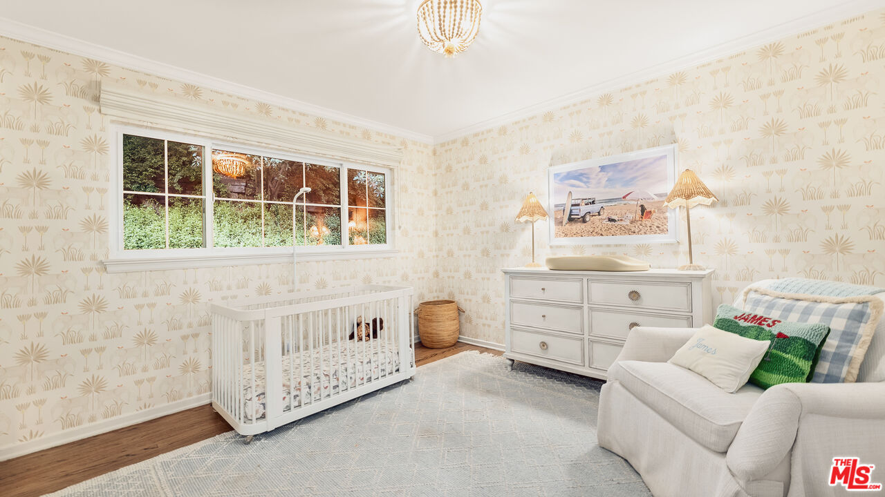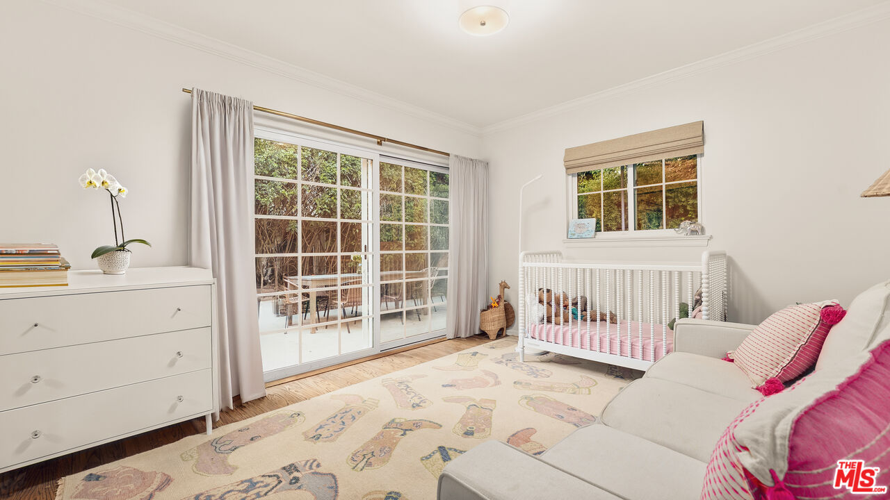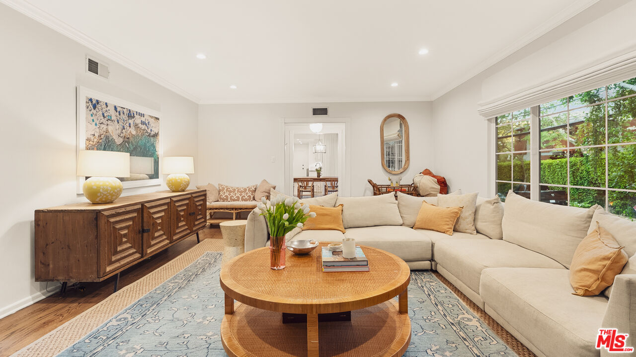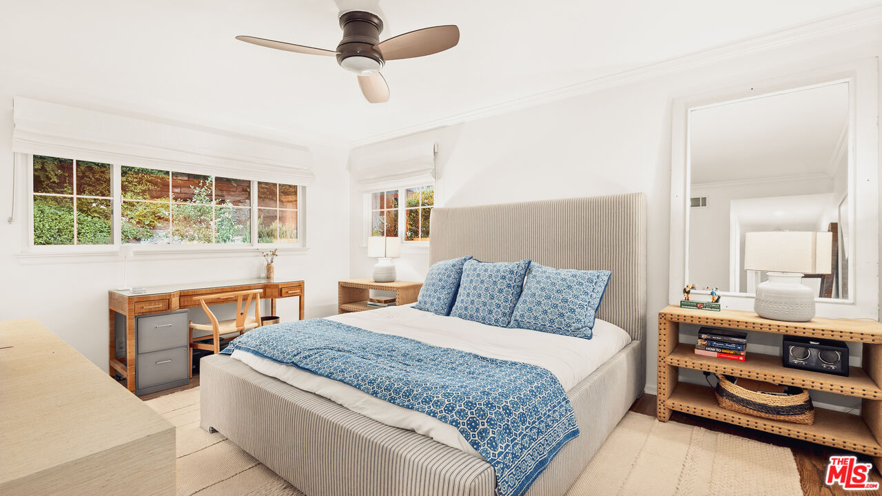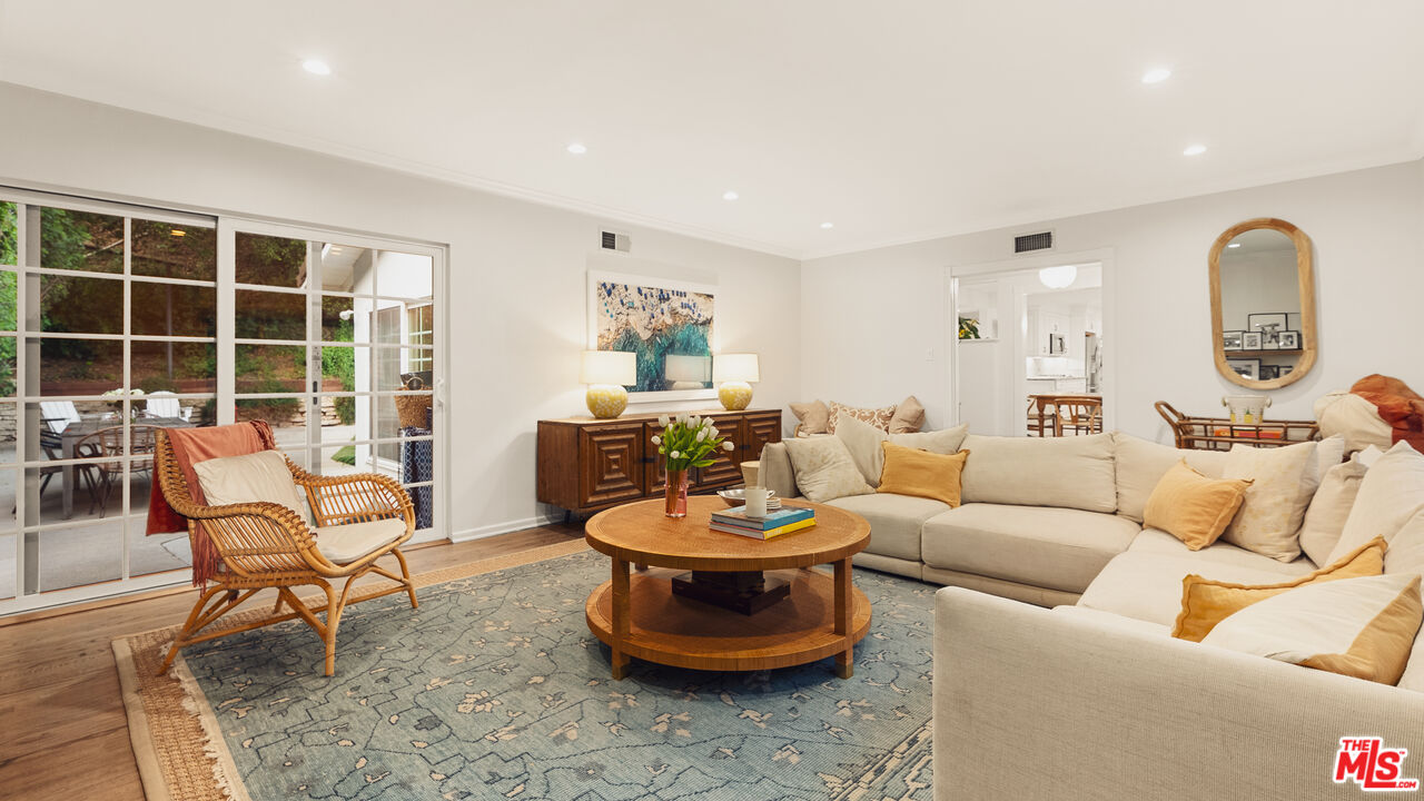 Best value in Mandeville Canyon under $2M! Charming in every sense, this Brentwood retreat offers a rare blend of tranquility and convenience just moments from the Brentwood Country Mart and the best of the Westside. Nestled among mature white birch and pepper trees, with fragrant rose and rosemary gardens, the home unfolds as a peaceful escape surrounded by natural beauty. An expansive living room, anchored by a classic brick fireplace, opens through glass doors to the rear patio and yard, creating a seamless indoor-outdoor flow. The galley-style kitchen is appointed with stainless steel appliances, granite countertops, and a tiled backsplash, and connects effortlessly to a sunlit formal dining room. The primary suite features a cedar-lined walk-in closet and a well-appointed ensuite bath with dual vanities and a glass-enclosed shower with bench seating. Two additional guest bedrooms enjoy abundant natural light and verdant outlooks, complemented by a secondary bath. Additional highlights include walnut hardwood floors, crown moldings, recessed lighting, generous built-in storage, and a two-car garage with direct entry. Set on an expansive 14,500+ square foot lot, the rear grounds provide exceptional privacy, a serene connection to nature, and ample potential for expansion or an ADU. Located within the coveted Kenter Canyon, Paul Revere, and Palisades High school districts, this property presents a rare opportunity in Brentwood.