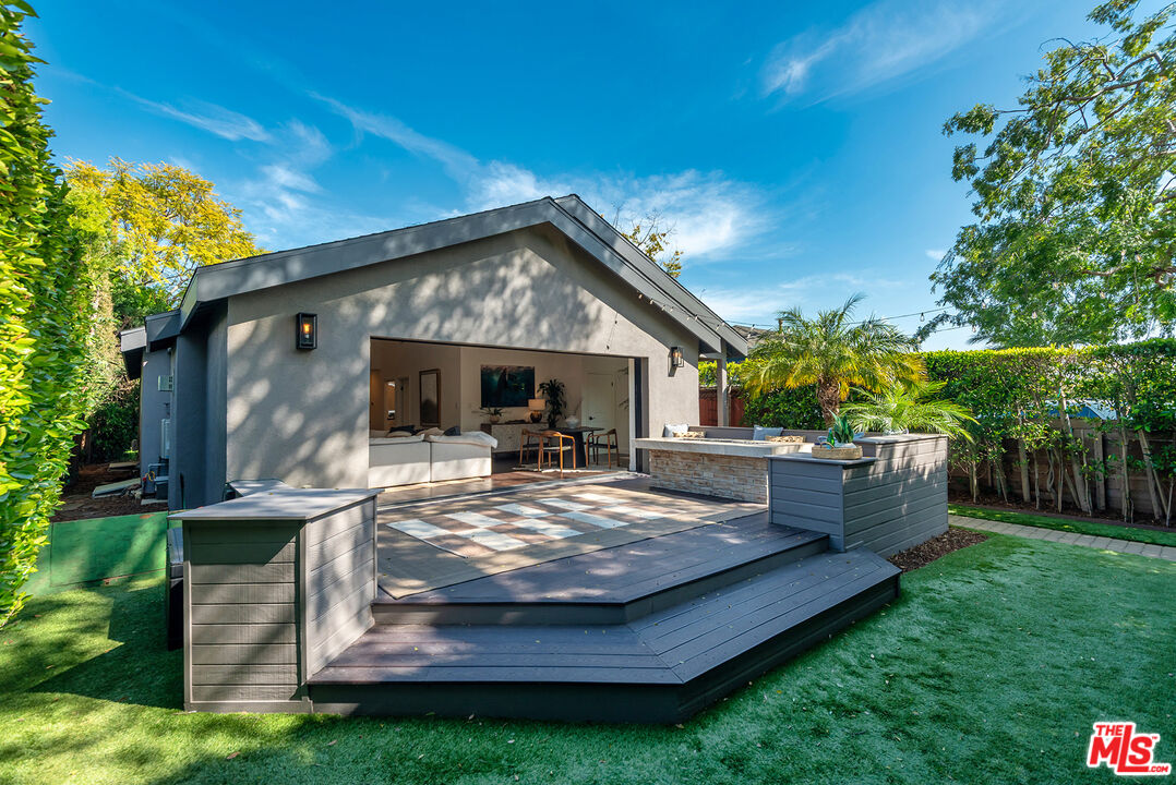 ***All Offers due 3/9 by 5 PM*** Warning: May Cause Jaw Drop! A Living Space that Soars." Quietly tucked along one of the most desirable tree-lined streets in Mar Vista's coveted enclave known as "The Woods," this fully reimagined single-story, move-in-ready residence makes an unforgettable architectural statement from the moment you arrive. Framed by mature privacy hedging and manicured landscaping, the home delivers a rare blend of sophistication, warmth, and modern ease. Spanning approximately 2,295 square feet of total living space, this move-in-ready 1913 square foot home plays host to 3 bedrooms, 3 baths, plus a generous 382 square foot 2-car detached finished garage/flex space with vaulted ceilings, adding exceptional versatility for a future ADU, private studio, gym, or executive office. Inside, the show-stopping vaulted great room immediately commands attention, creating exceptional volume and a breathtaking sense of scale. The open-concept design maintains an atmosphere that is both refined and effortless, where expansive sliding doors blur the boundary between indoors and out, revealing an entertainer's "IPE" deck designed for the quintessential Southern California lifestyle. The outdoor experience is elevated by a custom gas decorative fire feature with integrated seating, creating a natural gathering space for both intimate evenings and larger-scale entertaining. At the heart of the home, a striking decorative stone fireplace introduces texture and architectural presence, while the chef's kitchen, anchored by an impressive, oversized island, serves as the home's social centerpiece. Rich, wide-plank wood flooring flows seamlessly throughout, delivering continuity and timeless modern appeal. The private, mature, drought-tolerant landscaped backyard is ideal for your future pool or relaxed outdoor living. This is Mar Vista living at its most compelling, offering a great lifestyle location with easy access to shopping, hip eateries, the Beach, and all that living on the Westside has to offer.