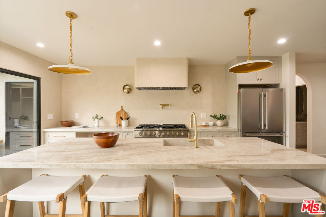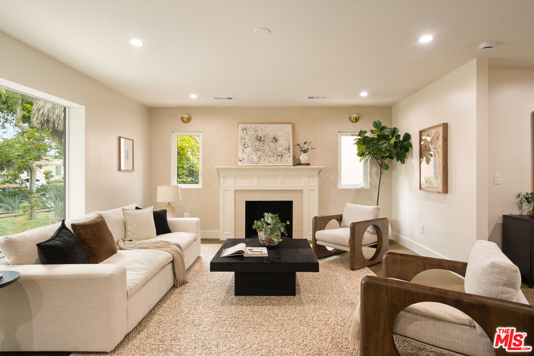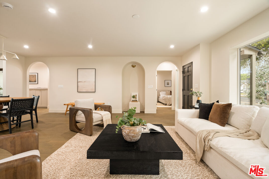 The Leimert Park trendsetter has arrived. Reimagined by Circa23LA, this home blends timeless character with modern luxury. Rich dark-stained hardwood floors, designer lighting, double-pane windows, fresh paint, and built-in surround sound set the tone. A private courtyard welcomes you before stepping into the living room with its original decorative fireplace, limewashed walls, and arched niche that nods to the home's history. The chef's kitchen is the showstopper 10-foot island, Taj Mahal quartzite counters, inset cabinetry, brass hardware, and pro-grade Forno appliances including an 8-burner range with double oven and griddle. A custom 48" hood, pot filler, and designer fixtures make this a dream space to cook and gather. The primary suite offers deck access, a walk-in closet, and a bath with limestone finishes, brass fixtures, dual vanities, and an inlaid soaking tub. A junior suite, guest bed room, and powder room complete the interiors. Outdoor living shines with an expansive deck and landscaped backyard framed by ficus hedges, sod, irrigation, and accent lighting perfect for entertaining or unwinding. Every detail here delivers sophistication, comfort, and effortless indoor-outdoor living making 3701 Grayburn Avenue a true lifestyle statement in Leimert Park.