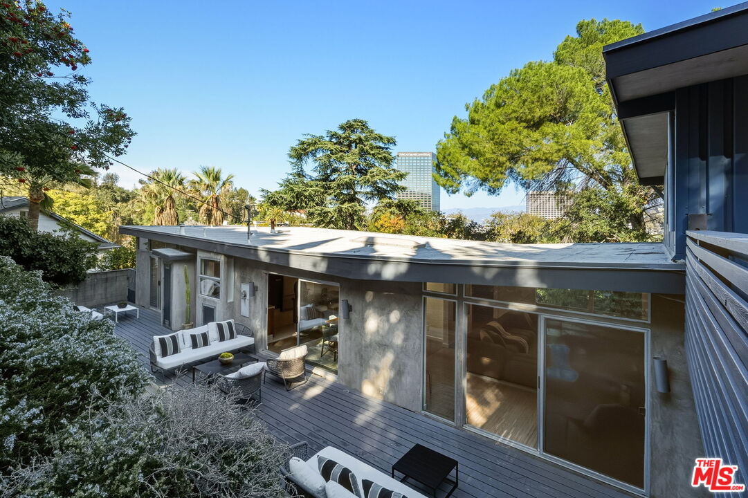 Set on an almost 20,000 square foot lot, nestled in the heart of the iconic Hollywood Hills, this mid-century retreat seamlessly blends timeless charm with modern elegance, offering breathtaking canyon to city views from every room and a rare sense of tranquility just moments from the vibrant pulse of the city. Flooded in natural light, the home features four spacious bedrooms and three well-appointed bathrooms, with warm wood floors leading you through an updated kitchen where sliding doors extend the living space outdoors, creating the perfect setting for entertaining or enjoying intimate moments in the fresh air. Outside, a private oasis awaits with lush landscaping, mature oak trees, and a charming walking trail, unfolding into unique areas designed for relaxation, dining, and gathering, ensuring there's a spot for every mood. The expansive oversized lot provides exceptional privacy and also presents the potential for thoughtful expansion or enhancement over time, while a separate primary suite with a walk-in closet adds to the property's luxury. A long private driveway with ample parking, two-car garage, and convenient laundry facilities complete this rare offering, all just moments from Studio City, Universal Studios, Ventura Place, CityWalk, and the vibrant lifestyle the Hollywood Hills has to offer.