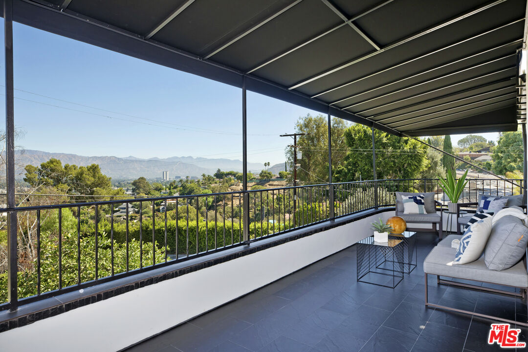 Perched high above the street on a generous elevated lot, this beautifully remodeled Studio City home captures sweeping valley views and sparkling city lights. Perfectly situated just moments from Ventura Boulevard's fine dining and boutiques, with easy access to the Westside, this residence offers an exceptional blend of privacy, style, and convenience. Completely remodeled in 2018, the home showcases modern finishes and thoughtful design throughout. The resort-style pool is a true swimmer's pool, enhanced by an advanced AquaLink system that allows you to control the temperature remotely from your phone. The surrounding outdoor spaces are ideal for entertaining, featuring a built-in barbecue, spacious patios, and total privacy amid lush, mature landscaping. Solar panels off are owned. The chef's kitchen is both functional and elegant, highlighted by a large center island, Thermador stainless-steel appliances, and sleek custom cabinetry. The open living area features a striking European stone fireplace and seamless indoor-outdoor flow to a front deck perfect for morning coffee or evening sunsets. Offering five en-suite bedrooms and five bathrooms, the home includes a lower-level Bedroom suite and bathroom with a private entrance, currently used as an artistic music studio ideal for guests, a home office, or creative workspace. A three-car garage with soaring ceilings provides ample parking and potential RV space, while a dumbwaiter offers direct access to the kitchen level for convenience.The grounds are adorned with pomegranate, citrus, and hibiscus trees, creating a tranquil setting that complements the home's refined ambiance. Move-in ready and meticulously maintained, this hillside residence embodies the best of Studio City living - luxurious, private, and close to everything.