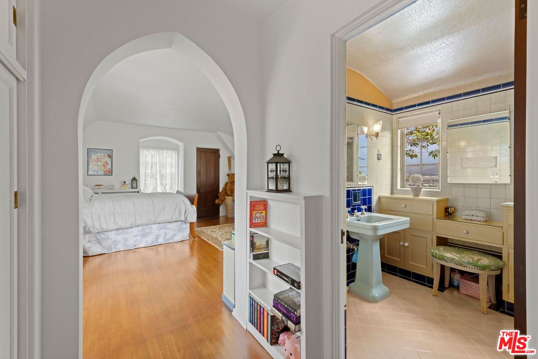 Welcome to a timeless piece of Los Angeles history. Available for the first time in over six decades, this stunning 1931 Tudor Revival home, designed by architect Roman F. Pearson, sits on a private lot with sweeping views of the Los Feliz Hills, Glendale, and the San Gabriel Mountains.Combining classic English charm with authentic craftsmanship, this two-story residence is a masterpiece of enduring design. From the rich redwood beams and traditional lath and plaster walls to the exquisite original details, the home retains its historic elegance. Step inside and discover beautifully preserved oak tongue and groove floors, stained wood doors, and original light fixtures and hardware. The grand staircase, featuring an original wrought iron railing, is bathed in natural light, as is the rest of the home throughout the day.The elegant dining room is perfect for hosting, complete with French doors that open to an expansive veranda. The living room is a true showstopper, adorned with floor-to-ceiling mahogany paneling, leaded stained glass, and a grand wood-burning fireplace. The spacious kitchen features original tiles and rich stained wood cabinetry, a butler's pantry, and a bar with mahogany countertops. A cozy breakfast room opens to the patio, an ideal spot for morning coffee.Upstairs, three spacious bedrooms offer generous closets, built-in cabinetry, and multiple breathtaking views. The primary en-suite and second bath showcase classic original Spanish tiles and fixtures that have been meticulously preserved. A fourth bedroom and bath on the main floor provides private accommodations for guests or maids quarters.The spacious basement offers potential for a wine cellar or a "bodega," and the lush grounds are dotted with mature oak trees. The flat backyard is a rare find and an ideal space for entertaining or for adding a pool. This is more than a home; it's a piece of Los Angeles history in one of its most desirable neighborhoods.