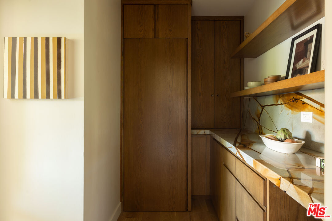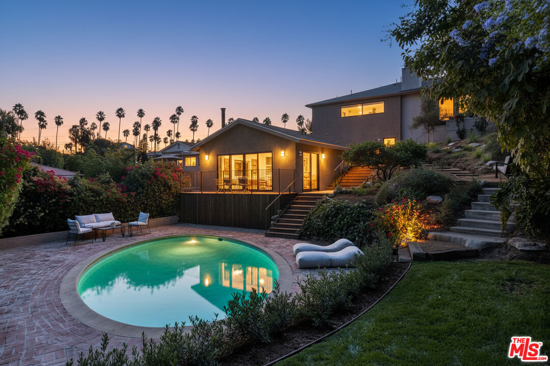 Unveiling an Unrivaled Opportunity for California Living in View Park. Redesigned with care and attention by Vein Design, and brought to life by CCS Construction, this one-of-a-kind compound blends luxury with comfort and ease.Behind its unassuming facade lies a bespoke expanse: a 4-bedroom, 4-bath main residence, an accommodating pool house, and lushly sprawling exterior grounds with beautiful and mature vegetation including a grass yard, an outdoor kitchen, numerous lounge and entertaining areas, and a sparkling pool that yes, really hosts the cutest family of ducks (and they come with the residence!). Stepping inside, natural light dances across wide-plank wood floors before an undulating plastered fireplace draws your attention to seamless sightlines that invite both serenity and style. Tailored millwork leads down the hallway toward two bedrooms with a shared Jack-and-Jill bath, each thoughtfully designed with built-in desks overlooking the street. A statement powder bath accommodates guests before the hallway culminates with a linen closet and a surprisingly spacious pantry and secluded laundry room space.An entertainer's dream, the kitchen is the heart of the home, boasting professional-grade stainless steel appliances, handcrafted cabinetry, and an ample quartzite peninsula ready for unforgettable meals and gatherings. On the lower level, an en suite bedroom with private access creates flexibility for guests, quiet office space, or an income opportunity.Your primary sanctuary boasts sun-dappled spaces and a designated flagstone patio for morning coffee or moonlit evenings. The owner's bath is bright, softly hued, and designed with ample storage, as is the adjacent walk-in closet, thoughtfully laid out for you to unpack into on your very first day.The exterior however sets this property apart - giving luxurious estate energy. The pool house delivers a kitchenette, a Malm wood-burning fireplace, and a full bath. Outdoors, life unfolds effortlessly, slide open the pool house doors to a sun-drenched deck, enjoy weekend BBQs at your outdoor kitchen and dining spaces, savor the fruits of your lemon and fig trees, watch as your family plays on the manicured grass, or dive into your retro-inspired pool. Outdoor terraces and built-in seating spaces are as welcoming as anything inside the home, completing a residence you can fully immerse yourself in. Curated, rich with unexpected details, and thoroughly executed with your lifestyle in mind, this expansive gem is ready to welcome you. Main House is 2381 sq ft, pool house is 343 sq ft per floor plan.