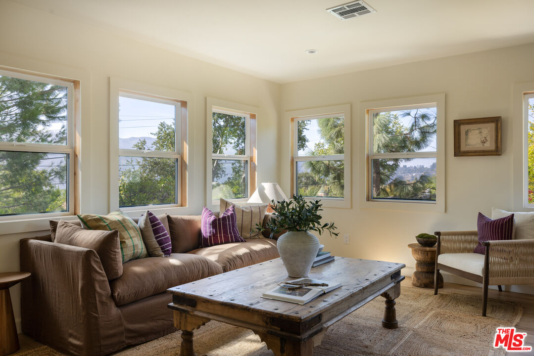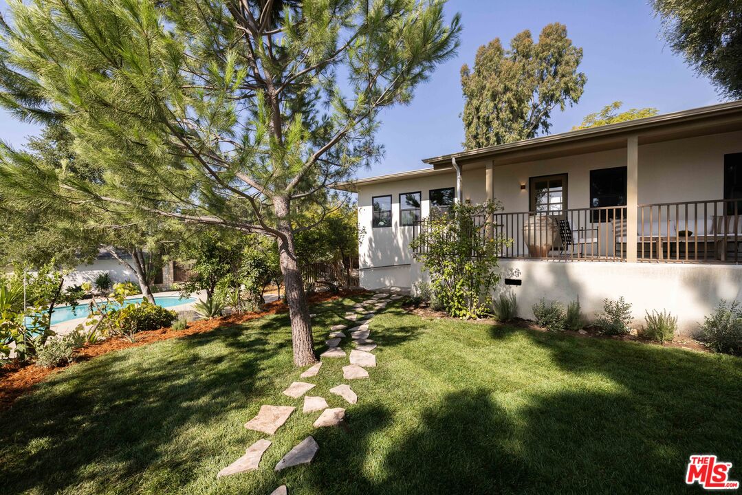 Description: Private Gated Compound on 13,390 sqft lot with a Pool, Bonus Room & Mountain Views. At the end of a peaceful cul-de-sac, this fully re-imagined home sits on a private gated lot with a new large concrete driveway, meandering pathways, mature multi-level gardens and a sparkling pool framed by sweeping mountain vistas. Inside, expansive new windows, white-oak wood floors and warm organic finishes evoke a serene tree-house feel surrounded by greenery. The kitchen features custom built cabinets, a butcher-block island and Calacatta Viola marble countertops. Baths highlight Calacatta quartz, travertine and zellige tile, plus a spa-style wet-room primary bath with flagstone flooring and custom bead-board millwork in the primary bedroom. Extensive structural and mechanical upgrades include a new roof, new windows, new exterior doors (including French doors off the primary suite and kitchen to an upper patio), new water lines throughout, new HVAC, new plumbing and electrical, . new stucco/paint, and native drought-tolerant landscaping. A large bonus room right off the pool l that can be used as a flex space. Show all description