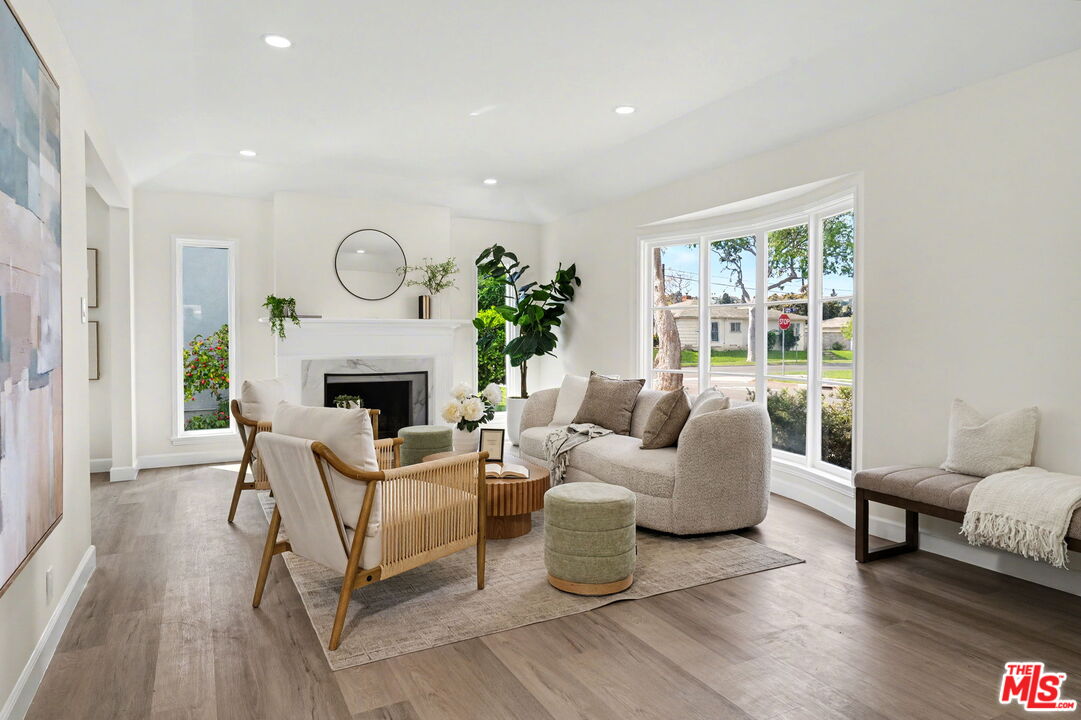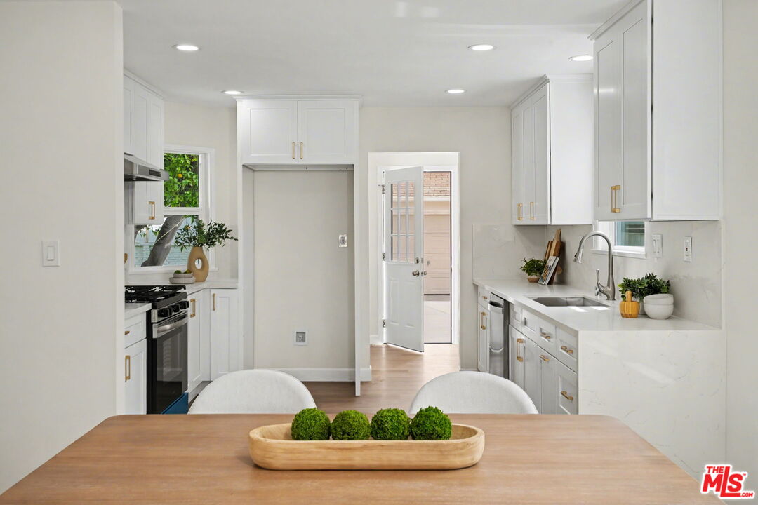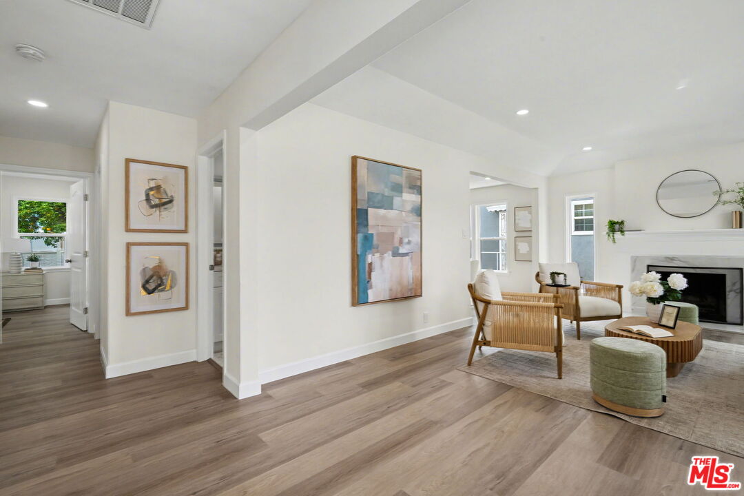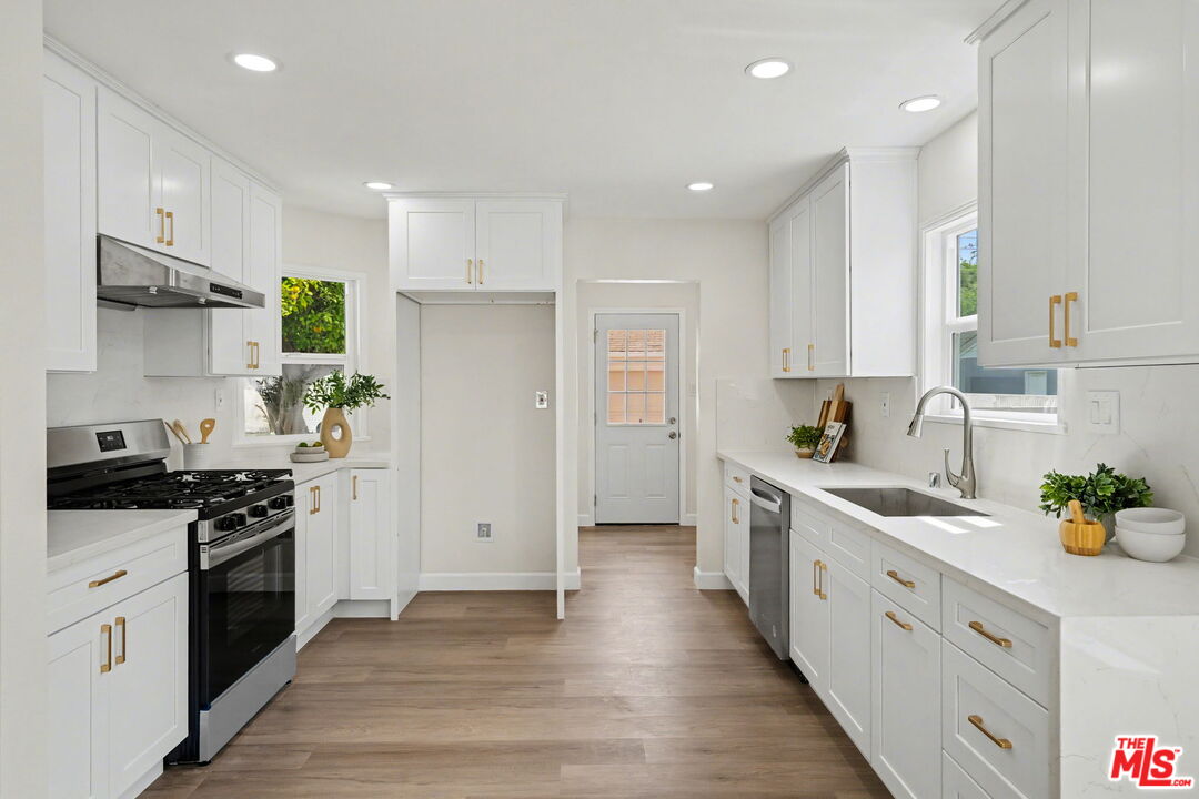 Newly renovated 3 bed/2.5 bath Traditional Gem in Crenshaw Manor. Filled with natural light, tons of character and designer updates throughout. Entry with art niche opens to open floor plan with spacious living room with stone finished fireplace and beautiful bay window. Dining room opens to remodeled kitchen with quartz countertops, brass hardware, newly installed cabinets and stainless steel gas range/oven and dishwasher. Full laundry room and powder room off kitchen with access to large grassy backyard with patio and mature citrus trees and gated driveway and detached garage. The home features 3 bedrooms, including primary suite with walk-in closet and stunning remodeled full bathroom. Additional features include central ac/heat, recessed lighting, new contemporary wood-look flooring throughout, all 3 bathrooms completely updated. Conveniently located closet to USC, Downtown, minutes to Culver City and Sofi Stadium. This home is ready to move right in!
