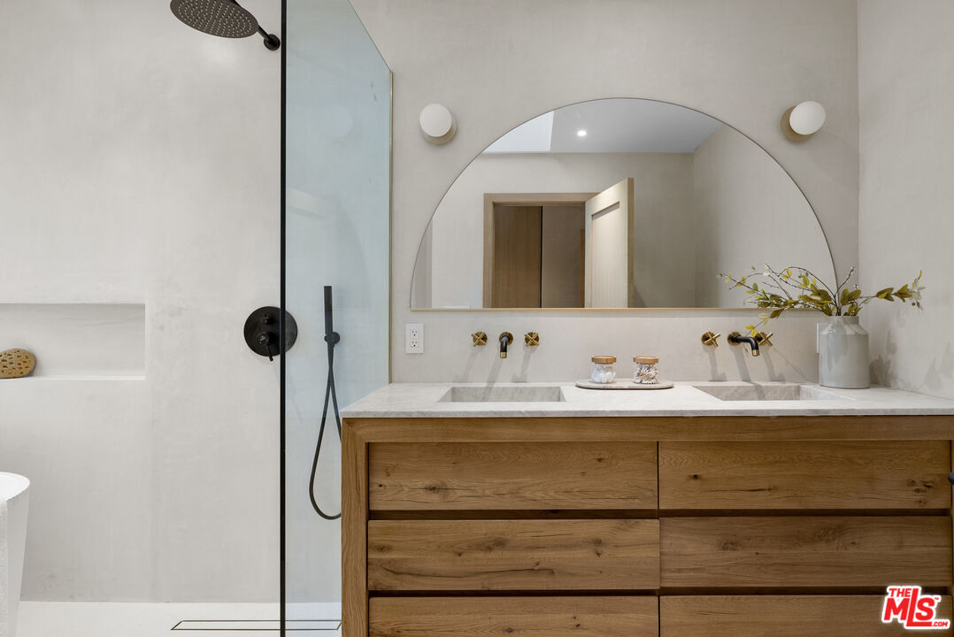 Welcome to this stunning, fully reimagined home where contemporary design meets timeless transitional elegance. This exquisite property offers 3 bedrooms, 2.5 baths, and a seamless blend of warm earthy tones and white oak accents throughout, creating a sophisticated yet inviting atmosphere. The custom-built kitchen is a true masterpiece, crafted entirely of white oak cabinetry and featuring a luxurious Botticcino slab countertop. Travertine light fixtures add a touch of warmth and refinement, while the large island and open-concept layout make this space perfect for gathering and entertaining. Natural light pours in through expansive windows, highlighting the home's impeccable craftsmanship and thoughtful design details.The primary suite is a tranquil retreat with textured clay walls, spacious closets, and French doors that open to the serene backyard. Two generously sized guest bedrooms feature large closets and share a beautifully designed Jack-and-Jill bathroom. The dreamy powder bathroom is a showstopper, with a custom vanity sink, creamy natural stone, and textured lime wash accents, all complemented by a natural wood slab that ties the earthy palette together.Throughout the home, elegant wall paneling and carefully curated light fixtures add to its refined charm. Situated on an 8,000 sq. ft. lot, the backyard boasts a sparkling pool perfect for relaxing or entertaining, while the 2-car garage provides ample storage and convenience. This home is a rare find, offering 3 bedrooms, 2.5 baths, and a harmonious blend of modern luxury and natural beauty-a must-see! Also available for lease .