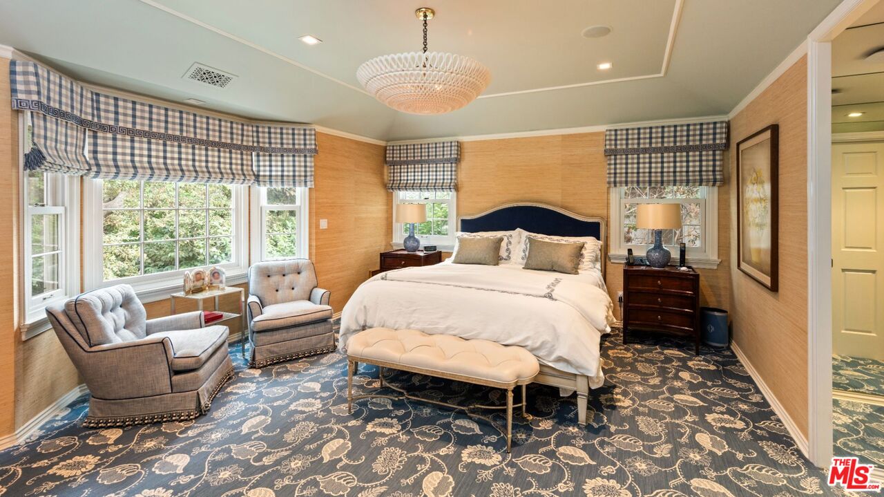 Nestled in the heart of coveted Longridge Estates, the most sought-after community in Studio City, surrounded by all the best restaurants, dining, shopping, and schools. This exceptional home is a true masterpiece of timeless elegance and sophisticated design. Meticulously remodeled and thoughtfully expanded, the floor plan effortlessly blends modern luxury with classic charm, creating an unparalleled space for both grand entertaining and quiet relaxation. A perfect floorplan for family living with 5 bedrooms up, 1 bedroom down and all the rooms in the right places with an oversized front yard and backyard with outdoor kitchen, firepit, and oversized lap pool with spa. With its rare combination of stunning curb appeal, exquisite craftsmanship, and an enchanting setting, this home is a rare gem, perfect for those who seek a residence full of character, grace, and warmth.