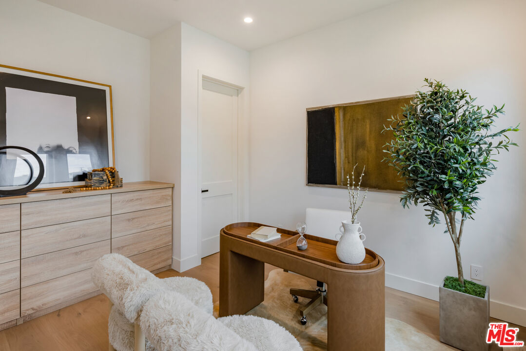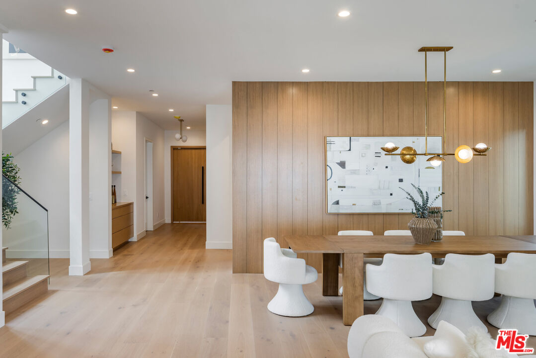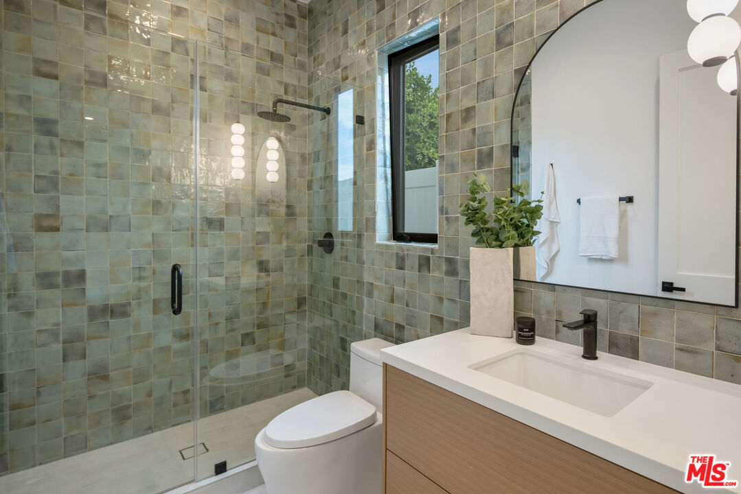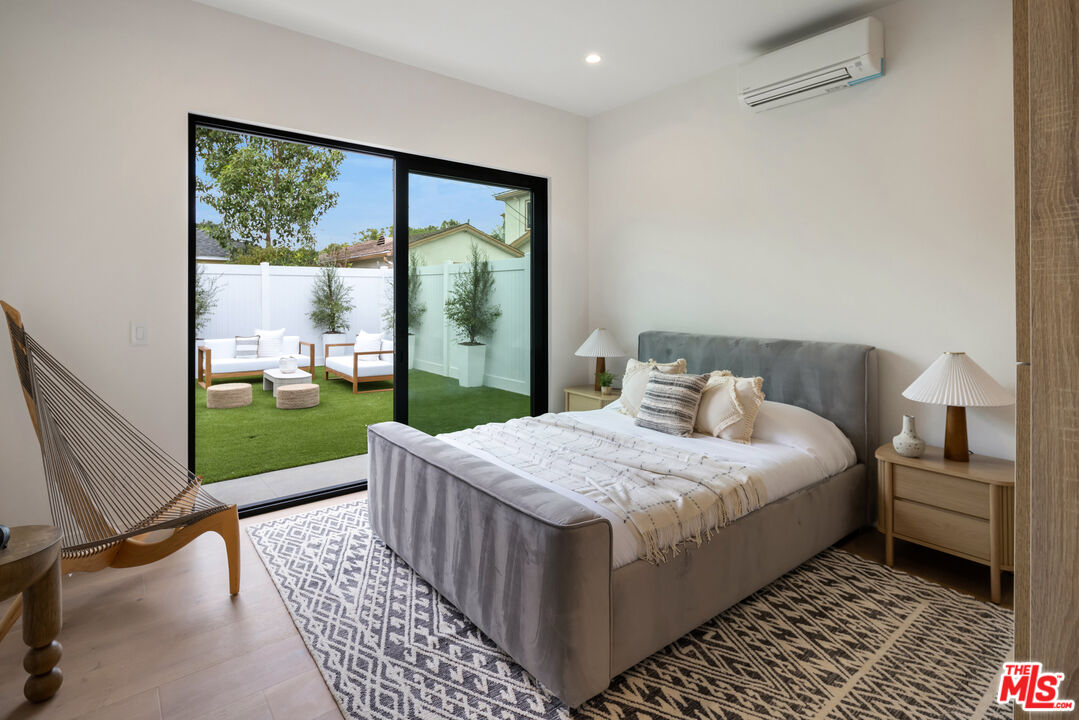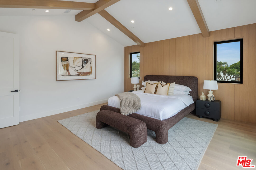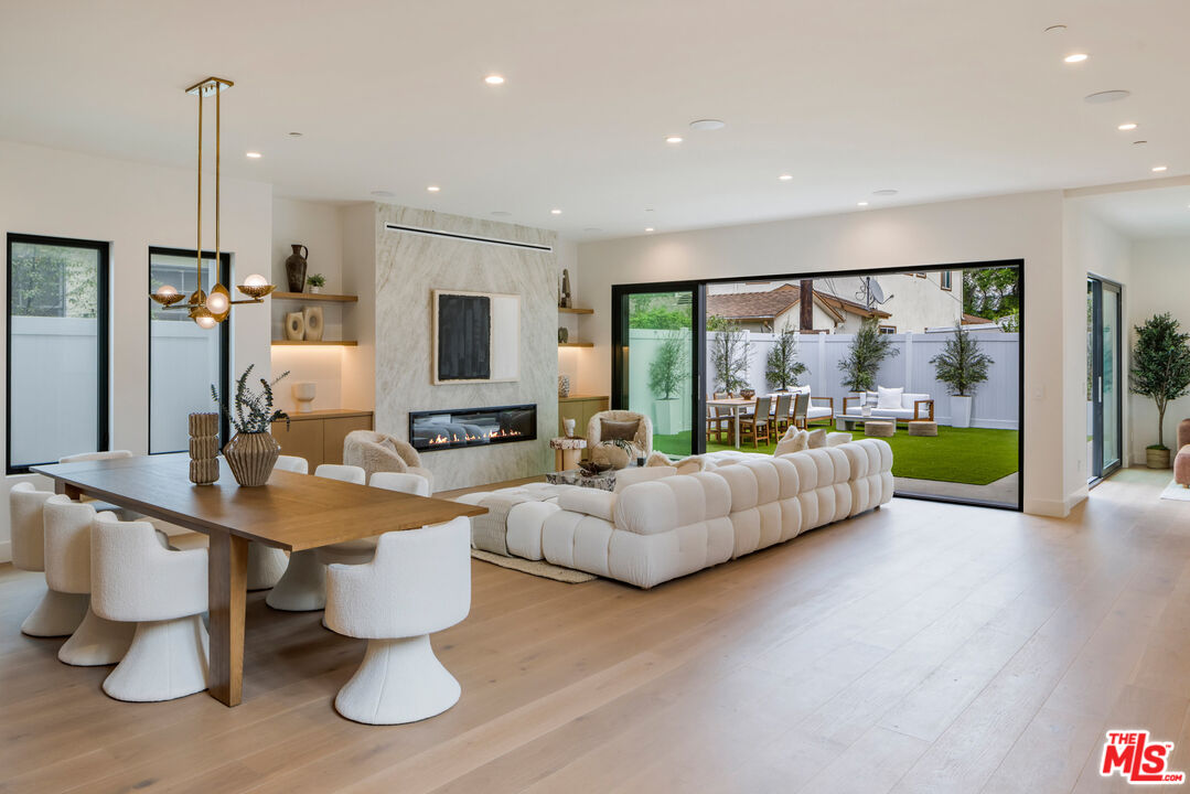 Welcome to one of Mar Vista's most refined new offerings, an architectural home that exemplifies California modern living with elevated design, premium finishes and effortless flow. Behind a crisp white fence and sculptural facade, this warm modern residence offers the perfect balance of privacy. Beyond the grand pivot door, a sun-drenched open floor plan unfolds. It is anchored by wide-plank French oak flooring, designer lighting and an airy atmosphere throughout. The first floor features expansive formal and casual living spaces that seamlessly connect to a chef's kitchen equipped with Thermador appliances, custom cabinetry and an expansive island designed for entertaining. The formal dining area is wrapped in natural wood paneling, adding texture and tone to the organic palette. Retractable walls of glass open to a lush private backyard with lounge seating and al fresco dining that invites true indoor-outdoor living. The second level features a spacious primary suite with vaulted ceilings, a spa-grade bathroom with a soaking tub and a private terrace overlooking the yard. Three additional en-suite bedrooms offer space and comfort for guests or family, each with refined finishes and generous proportions. Moments from Mar Vista's local boutiques, farmers markets and top-rated schools, this home represents a rare blend of architectural sophistication and relaxed SoCal living crafted for the most discerning buyer.