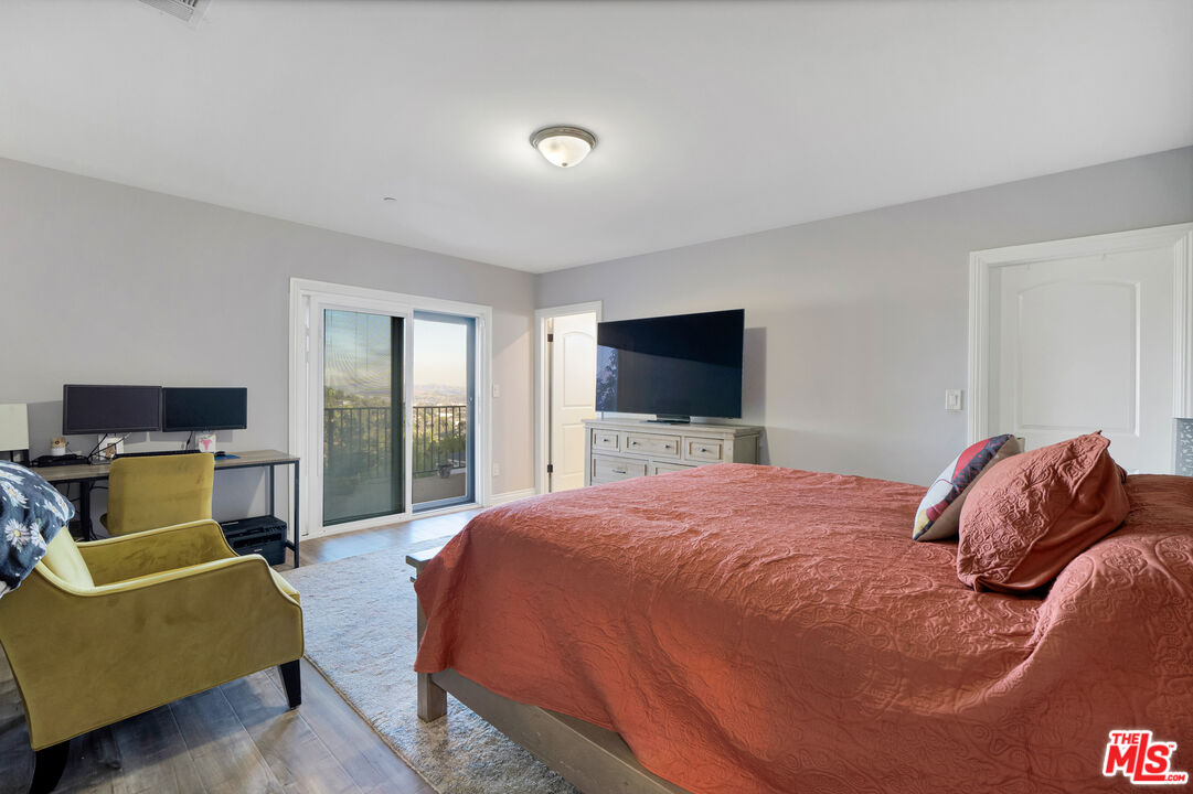 Stunning Hillside Retreat with Breathtaking Panoramic Views! Experience the best of California living in this beautiful 4-bed, 3-bath home perched high above the city where every sunrise and sunset paints a new masterpiece across the skyline. Built in 2015, this residence perfectly blends style, comfort, and functionality in one of East L.A.'s most vibrant communities. Step inside to an open-concept living space filled with natural light, high ceilings, and elegant finishes. The living room flows seamlessly into a designer kitchen featuring granite countertops, rich shaker cabinetry, stainless-steel appliances, and a generous walk-in pantry ideal for entertaining or everyday family life. A ground-level bedroom and full bath offer flexibility for guests or a home office, while upstairs you'll find three additional bedrooms and a convenient laundry nook. The spacious primary suite is your private sanctuary, complete with a walk-in closet and sliding doors leading to a large balcony with sweeping city lights and sunrise views- the perfect place to unwind or host evening gatherings under the stars. Outdoors, enjoy a private backyard oasis with a lush grassy area for kids and pets, plus a covered patio with ceiling fans for relaxing in the shade. Added peace of mind comes from premium steel security screens throughout. Located just minutes from Cal State LA, Downtown Los Angeles, Pasadena, and the Eastside's thriving food and art scene, this home offers unmatched convenience and community energy making it the perfect place to live, work, and play.Come see it for yourself and fall in love with the view, the vibe, and the lifestyle.