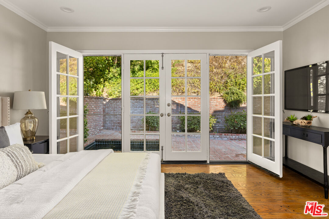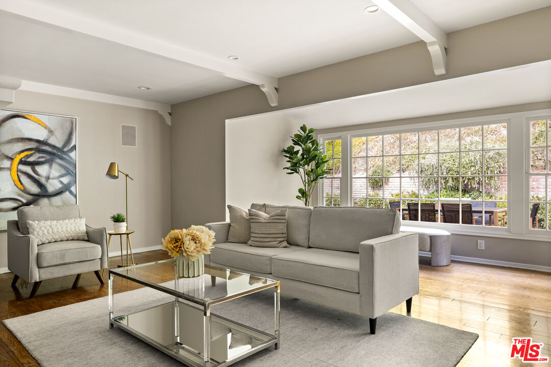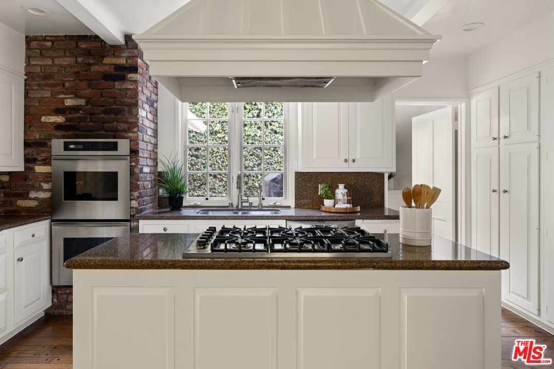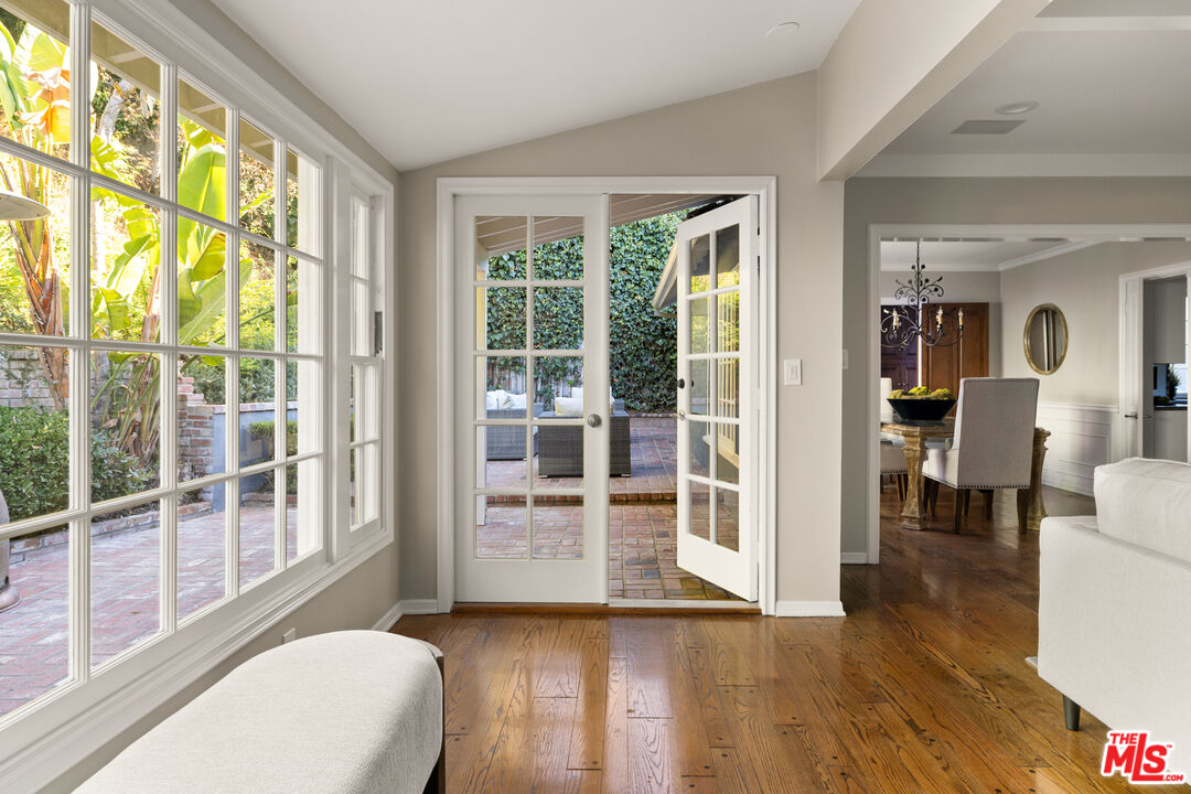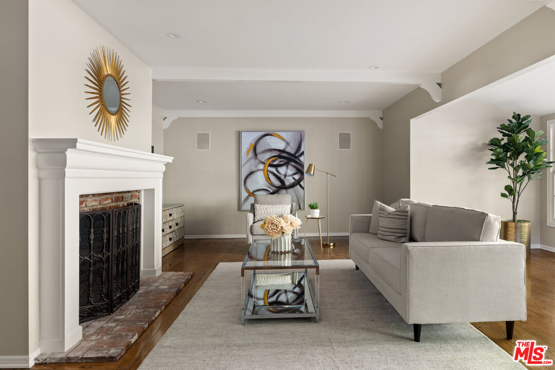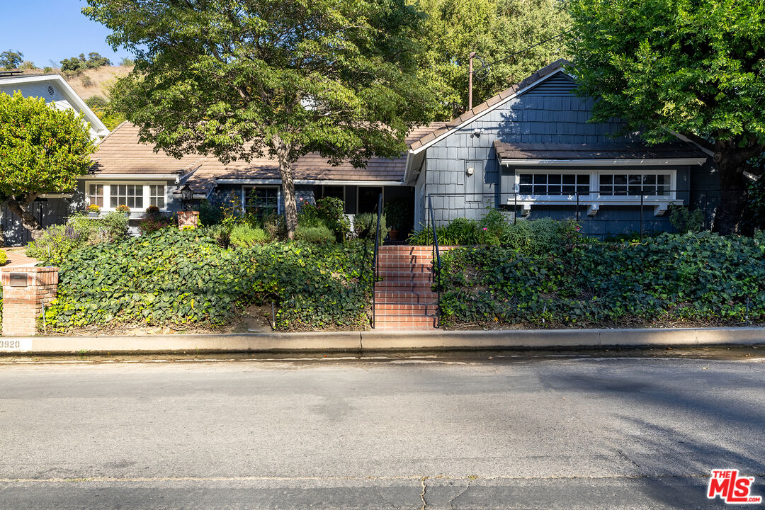 This picture-perfect single-level Mid-Century Ranch sits on a peaceful street south of the Blvd and adjacent to Deervale-Stone Canyon Park. Originally built in 1952, 3920 Stone Canyon maintains much of its original charm while being updated for modern convenience. The chef's kitchen is outfitted with a Sub-Zero fridge, a double oven, and an island topped with a six-burner range. A charming and stately den sits just off the dining room, with rich wood cabinetry and a second fireplace. The living room boasts detailed woodwork and wainscoting, a gas and wood burning fireplace, and a broad bank of windows that look out onto the rear brick patio. This low-maintenance outdoor space is surrounded by lush greenery and ivy and a mature lemon tree, making it an ideal spot to relax and entertain amidst the serene sounds of the canyon. The spacious primary suite offers a marble-accented bath with dual sinks and French doors to the patio that allow you to step right out of the bedroom into the in-ground hot tub, or vice versa. A secondary en-suite bedroom, a ship-lap lined bedroom/office, a separate laundry room, and an attached two-car garage round out this convenient layout. The home offers an incredible amount of built-in storage, with spacious closets and cabinetry throughout. 3920 Stone Canyon is moments away from the area's best dining and shopping along Ventura, and offers easy access for commuters throughout the valley, the westside, and Hollywood via the 405 and 101 freeways.
