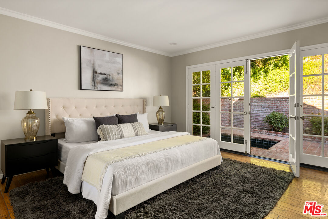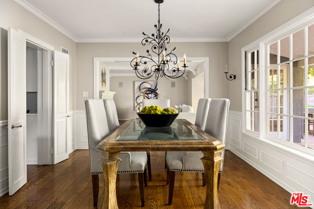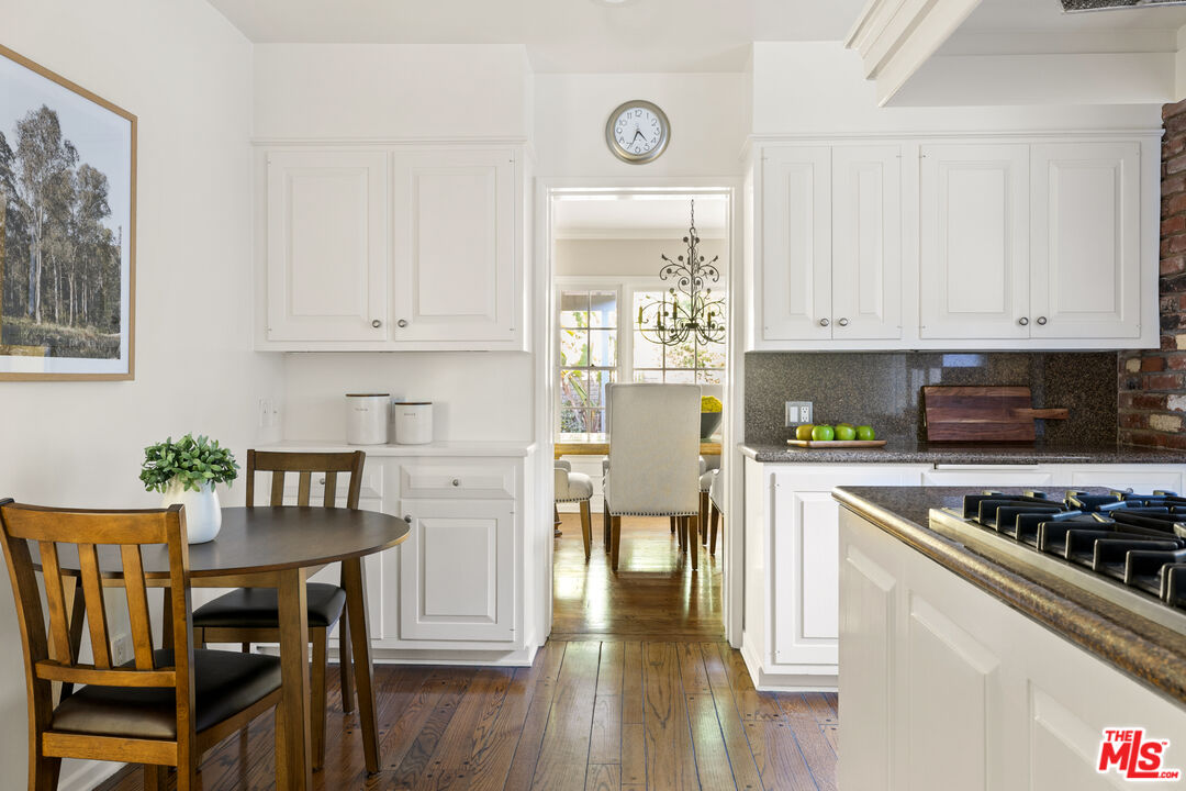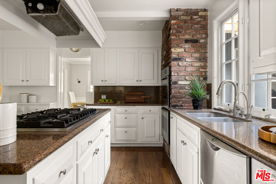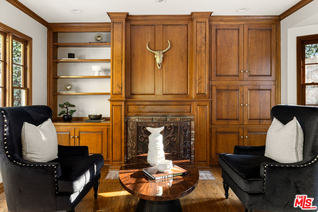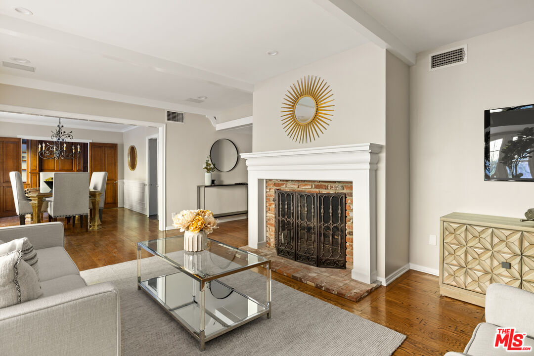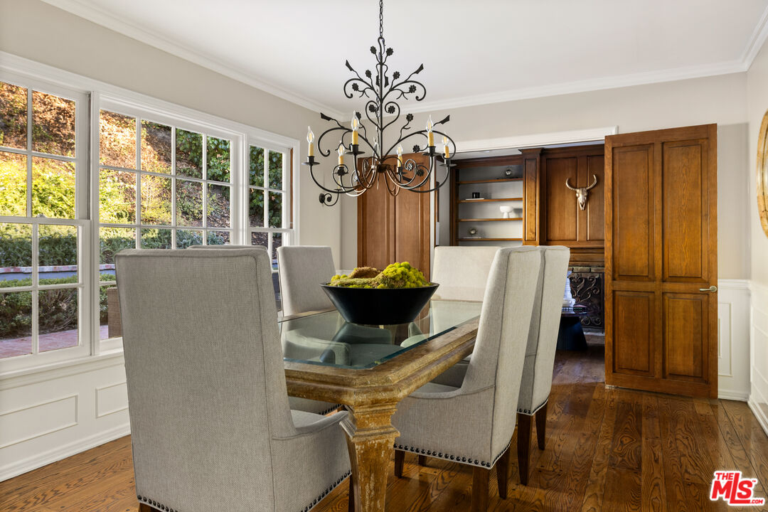 This picture-perfect single-level Mid-Century Ranch sits on a peaceful street south of the Blvd and adjacent to Deervale-Stone Canyon Park. Originally built in 1952, 3920 Stone Canyon maintains much of its original charm while being updated for modern convenience. The chef's kitchen is outfitted with a Sub-Zero fridge, a double oven, and an island topped with a six-burner range. A charming and stately den sits just off the dining room, with rich wood cabinetry and a second fireplace. The living room boasts detailed woodwork and wainscoting, a gas and wood burning fireplace, and a broad bank of windows that look out onto the rear brick patio. This low-maintenance outdoor space is surrounded by lush greenery and ivy and a mature lemon tree, making it an ideal spot to relax and entertain amidst the serene sounds of the canyon. The spacious primary suite offers a marble-accented bath with dual sinks and French doors to the patio that allow you to step right out of the bedroom into the in-ground hot tub, or vice versa. A secondary en-suite bedroom, a ship-lap lined bedroom/office, a separate laundry room, and an attached two-car garage round out this convenient layout. The home offers an incredible amount of built-in storage, with spacious closets and cabinetry throughout. 3920 Stone Canyon is moments away from the area's best dining and shopping along Ventura, and offers easy access for commuters throughout the valley, the westside, and Hollywood via the 405 and 101 freeways.