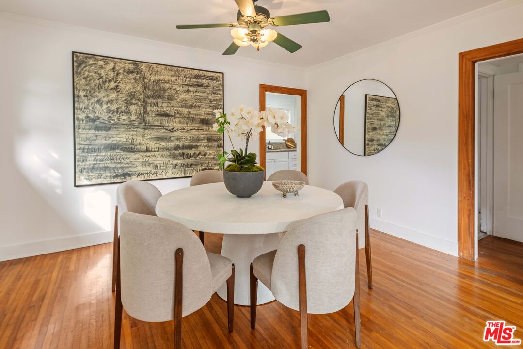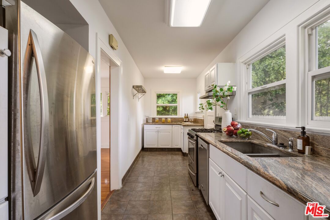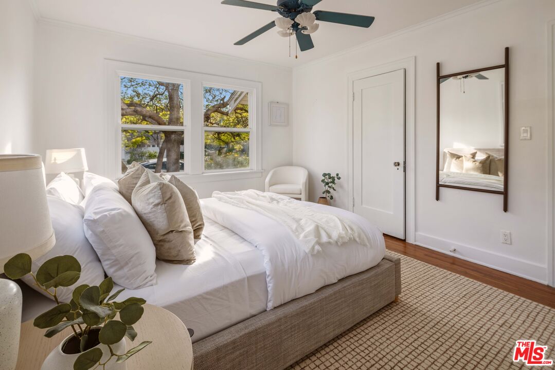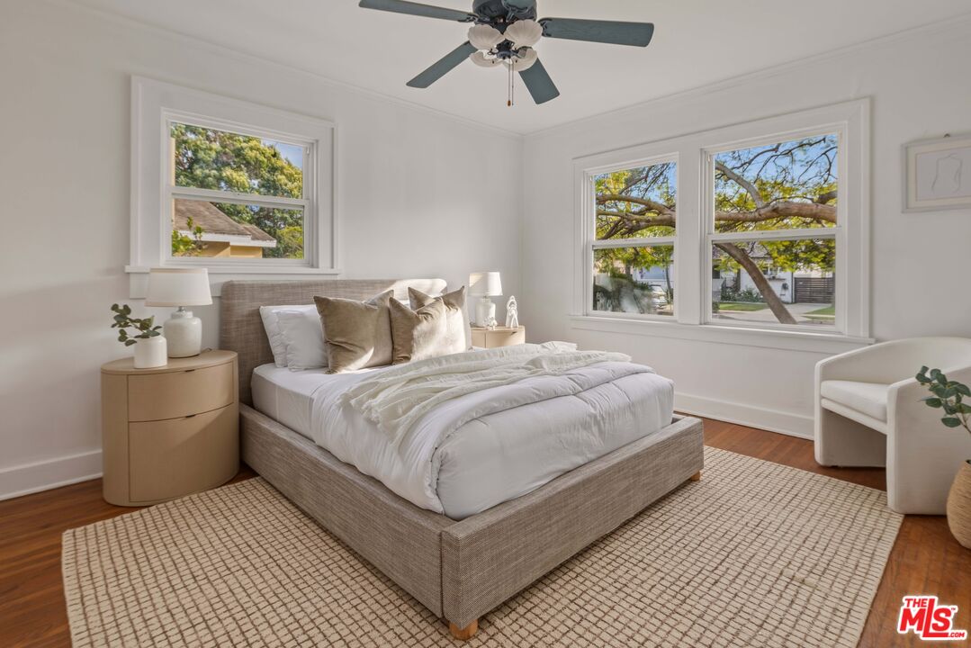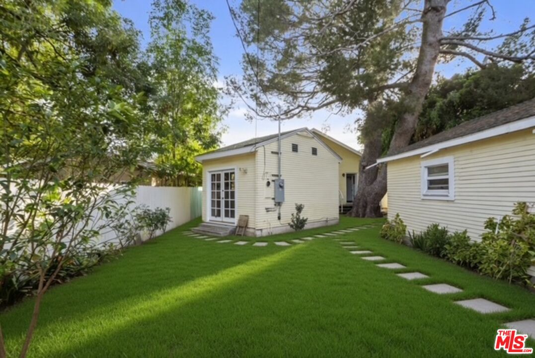 A charming California Craftsman full of character and easy Westside living. The front yard is thoughtfully landscaped with mature trees that create natural shade, along with agave and other California native plants that give the home a grounded, welcoming feel. A cozy front porch offers a nice spot to sit with your morning coffee or wind down in the evening. Inside, the home is bright and comfortable, with three well-sized bedrooms and two updated bathrooms (bonus office room upstairs). The primary bedroom opens to the backyard through French doors, bringing in light and a nice indoor-outdoor connection. The kitchen has been updated with tasteful wood cabinetry, granite countertops, and stainless steel appliances, and flows easily into the living and dining areas making the space feel connected and perfect for entertaining .Out back, the yard feels like a private retreat, with mature landscaping, space to relax or dine outside, and plenty of room to enjoy as-is or personalize over time. A detached two-car garage adds flexibility, whether for storage, a workspace, or potential ADU.